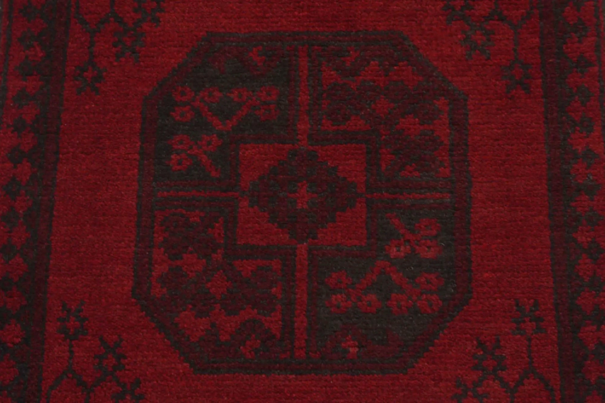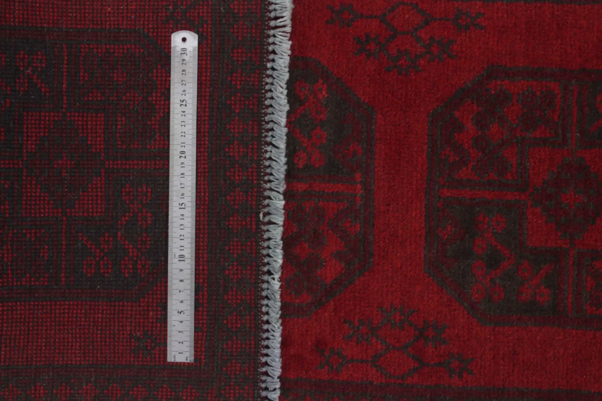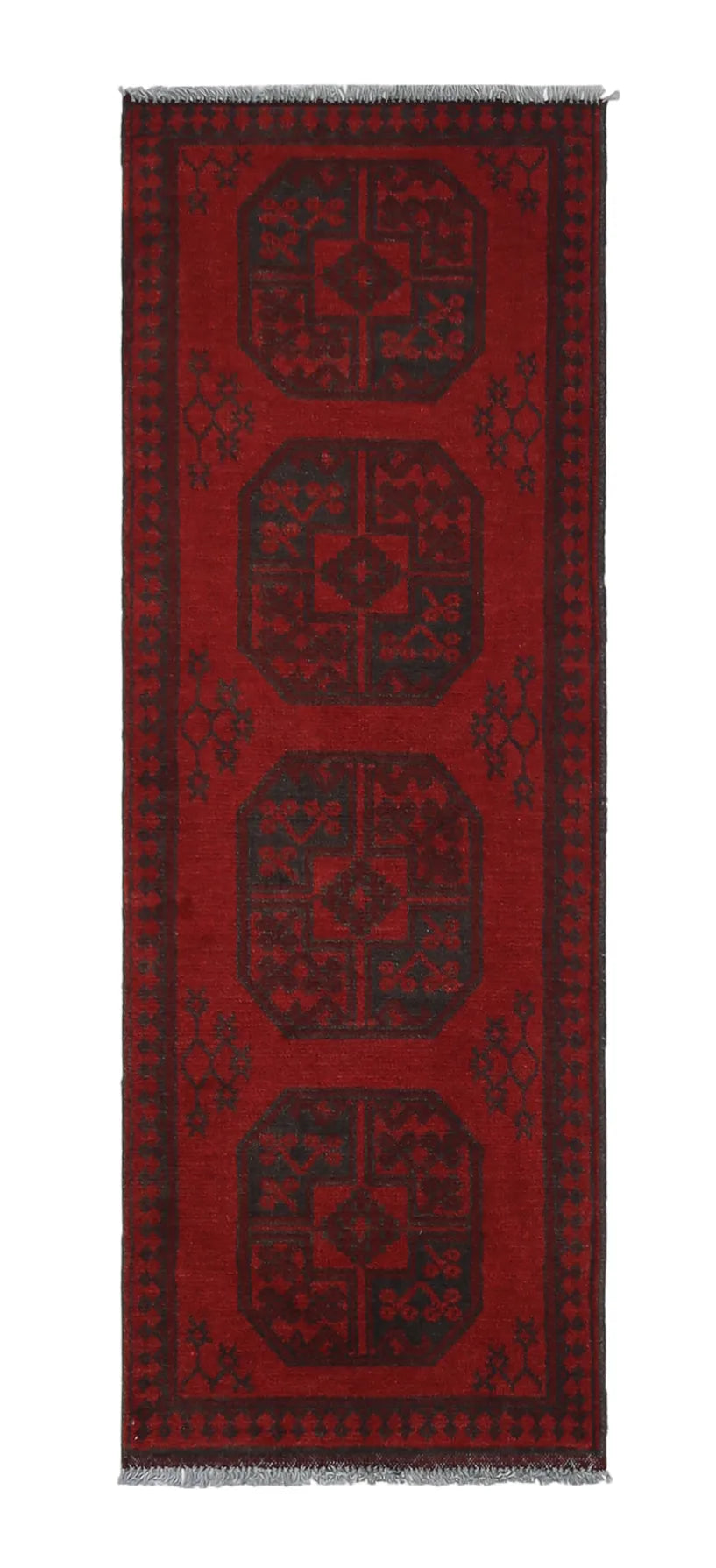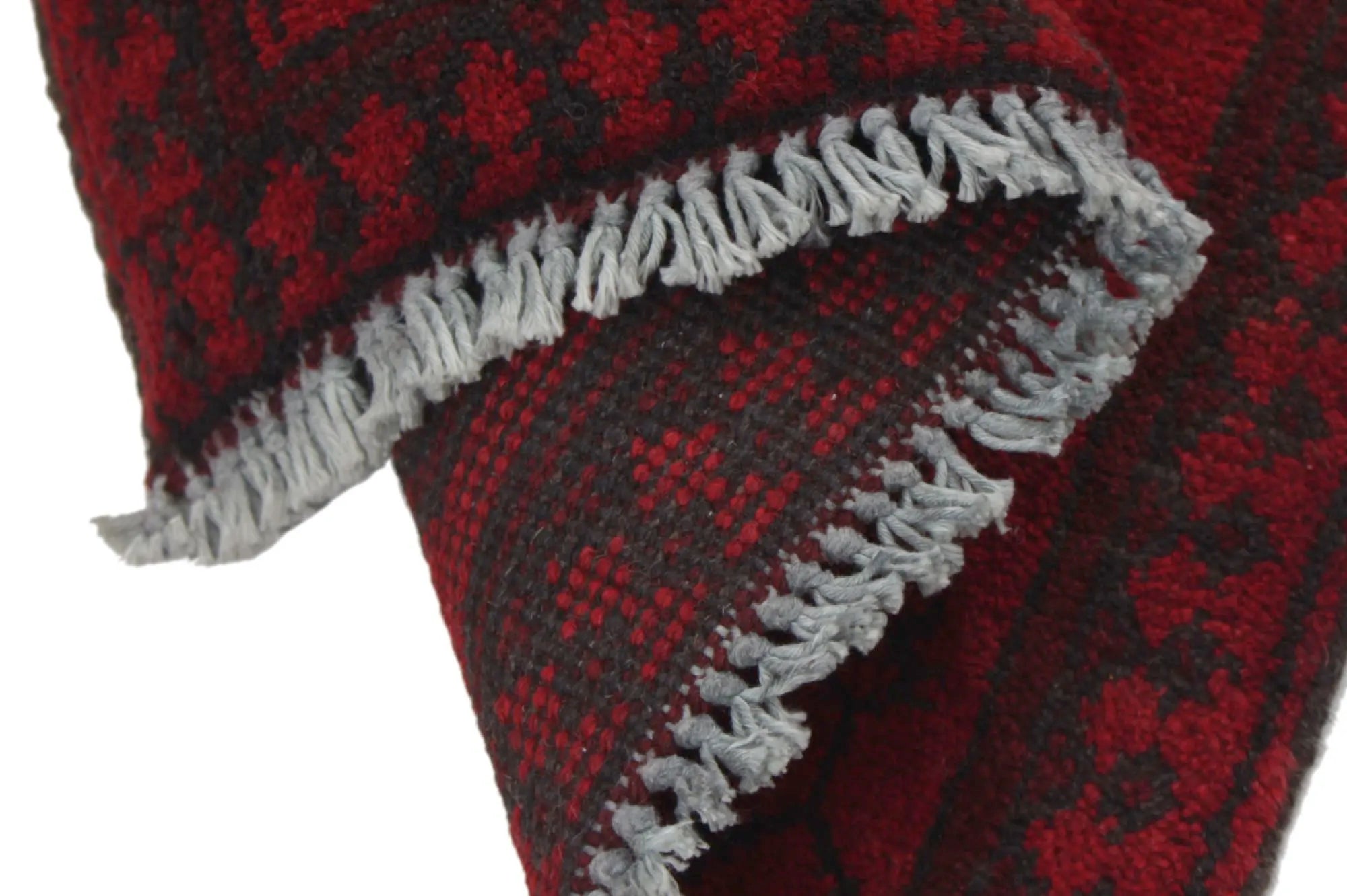 Discover this exquisite hand-knotted Akche rug from Afghanistan, crafted in rich, deep red and black tones that bring warmth and elegance to any interior. Made from 100% pure wool, including the fringes, it contains no synthetic materials, giving it a naturally soft, durable, and authentic feel. The traditional “elephant foot” motif, characteristic of Akche rugs, adds a timeless and culturally rich expression. A perfect choice for anyone seeking a rug that unites craftsmanship, character, and classic oriental beauty.
