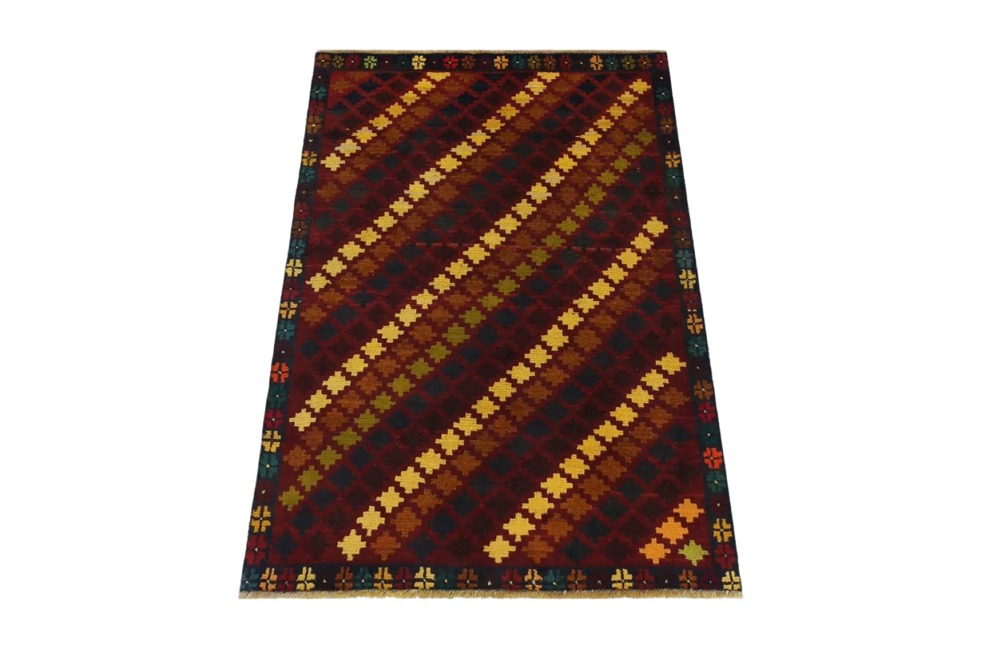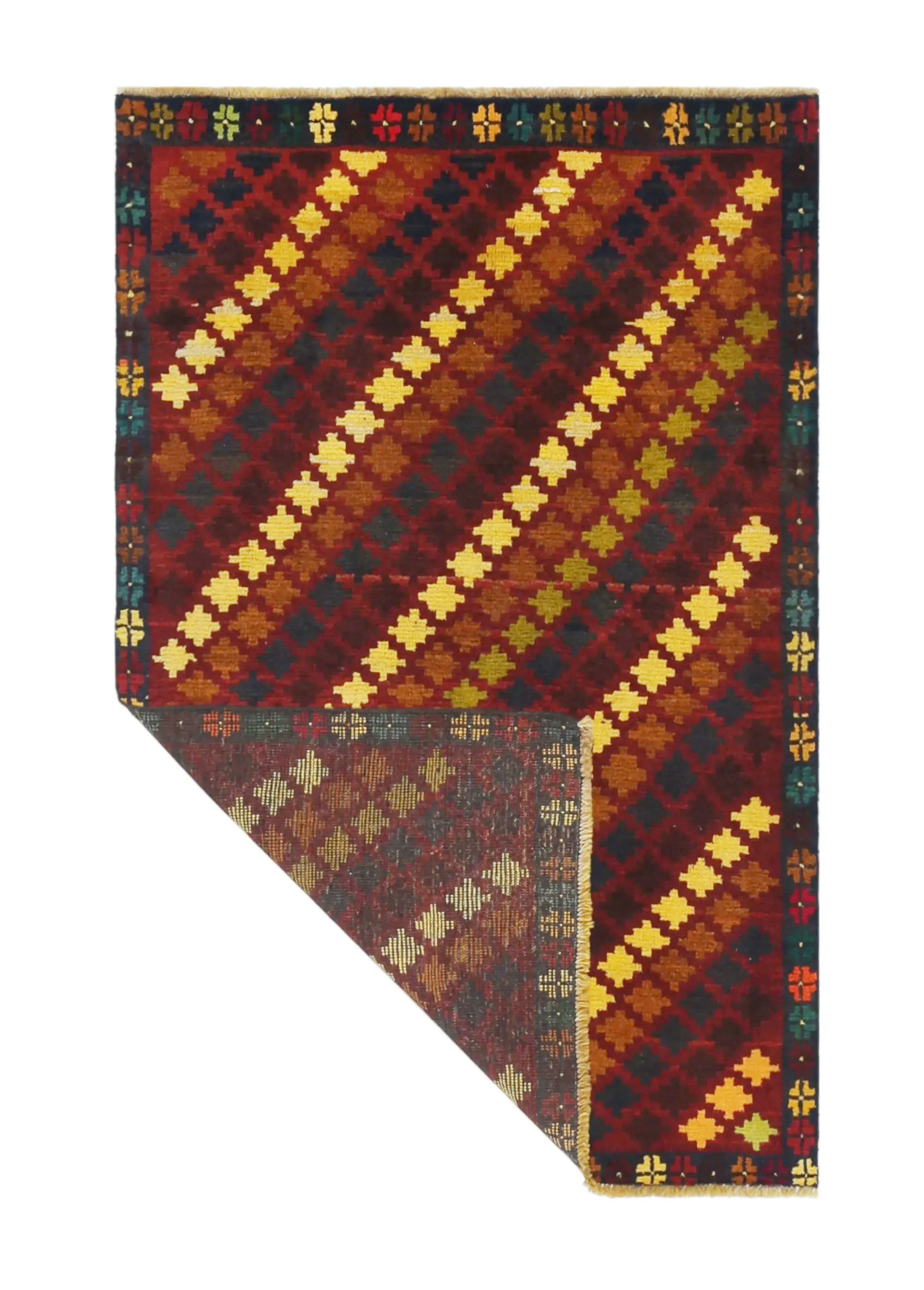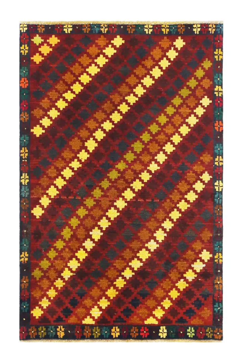 Baluch rugs originate from areas inhabited by the Baluch people, mainly in eastern Iran, western Afghanistan, and southwestern Pakistan. Baluch are known for their nomadic lifestyle, and their rugs reflect this cultural and geographical diversity. Baluch rugs often have intricate geometric patterns and sometimes stylized motifs that represent nature, such as flowers and animals. Common patterns include guls and octagons. Typical colors include deep red, blue, and brown, often combined with white and black accents to create contrast. These rugs are usually hand-woven with wool on a cotton base, giving them both durability and softness. Wool is the most common material used, but sometimes goat hair or silk is also used. Traditionally, these rugs are woven by hand on horizontal or vertical looms, a process that can take several months depending on the size and comple x ity of the rug. Baluch rugs were primarily used as floor coverings in nomadic tents, but today they are also used as decorative wall hangings and sometimes as prayer mats. Many of the patterns and colors have symbolic meanings, such as protective amulets or symbols of prosperity and fertility. Baluch rugs are not only practical items but also works of art that tell a rich story about the people and cultures that created them.