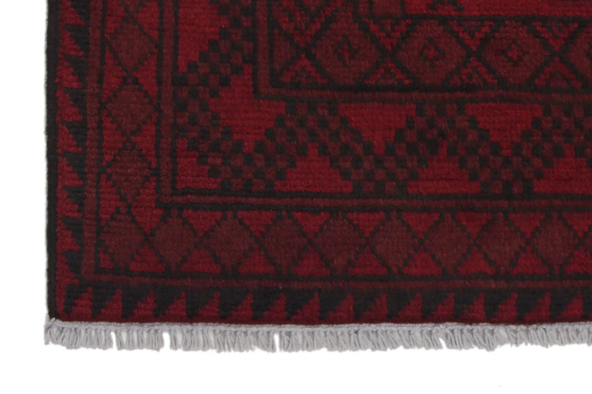 Discover this exquisite hand-knotted Akche rug from Afghanistan, crafted in rich, deep red and black tones that bring warmth and elegance to any interior. Made from 100% pure wool, including the fringes, it contains no synthetic materials, giving it a naturally soft, durable, and authentic feel. The traditional “elephant foot” motif, characteristic of Akche rugs, adds a timeless and culturally rich expression. A perfect choice for anyone seeking a rug that unites craftsmanship, character, and classic oriental beauty.