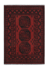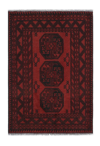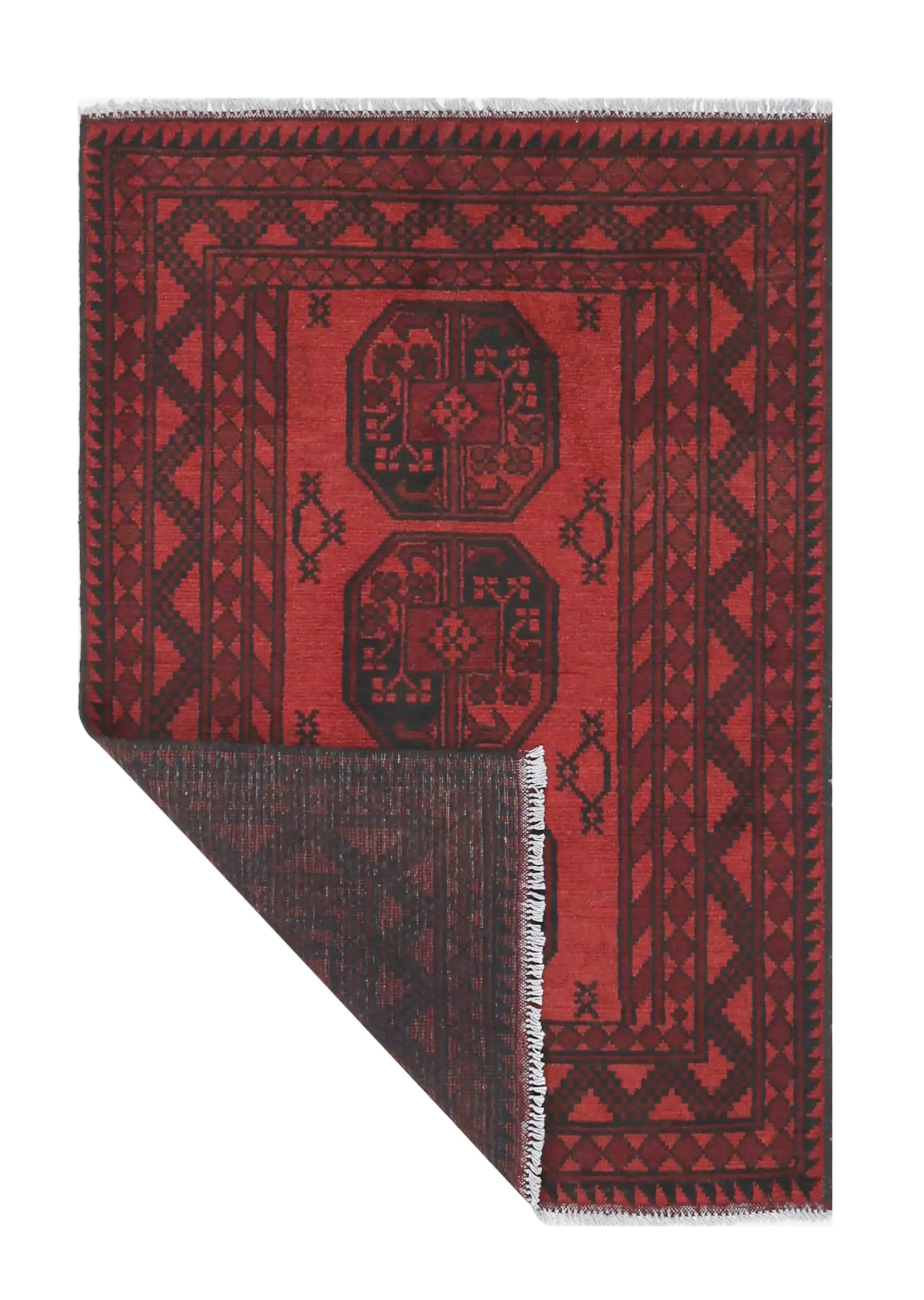 Discover this exquisite hand-knotted Akche rug from Afghanistan, crafted in rich, deep red and black tones that bring warmth and elegance to any interior. Made from 100% pure wool, including the fringes, it contains no synthetic materials, giving it a naturally soft, durable, and authentic feel. The traditional “elephant foot” motif, characteristic of Akche rugs, adds a timeless and culturally rich expression. A perfect choice for anyone seeking a rug that unites craftsmanship, character, and classic oriental beauty.