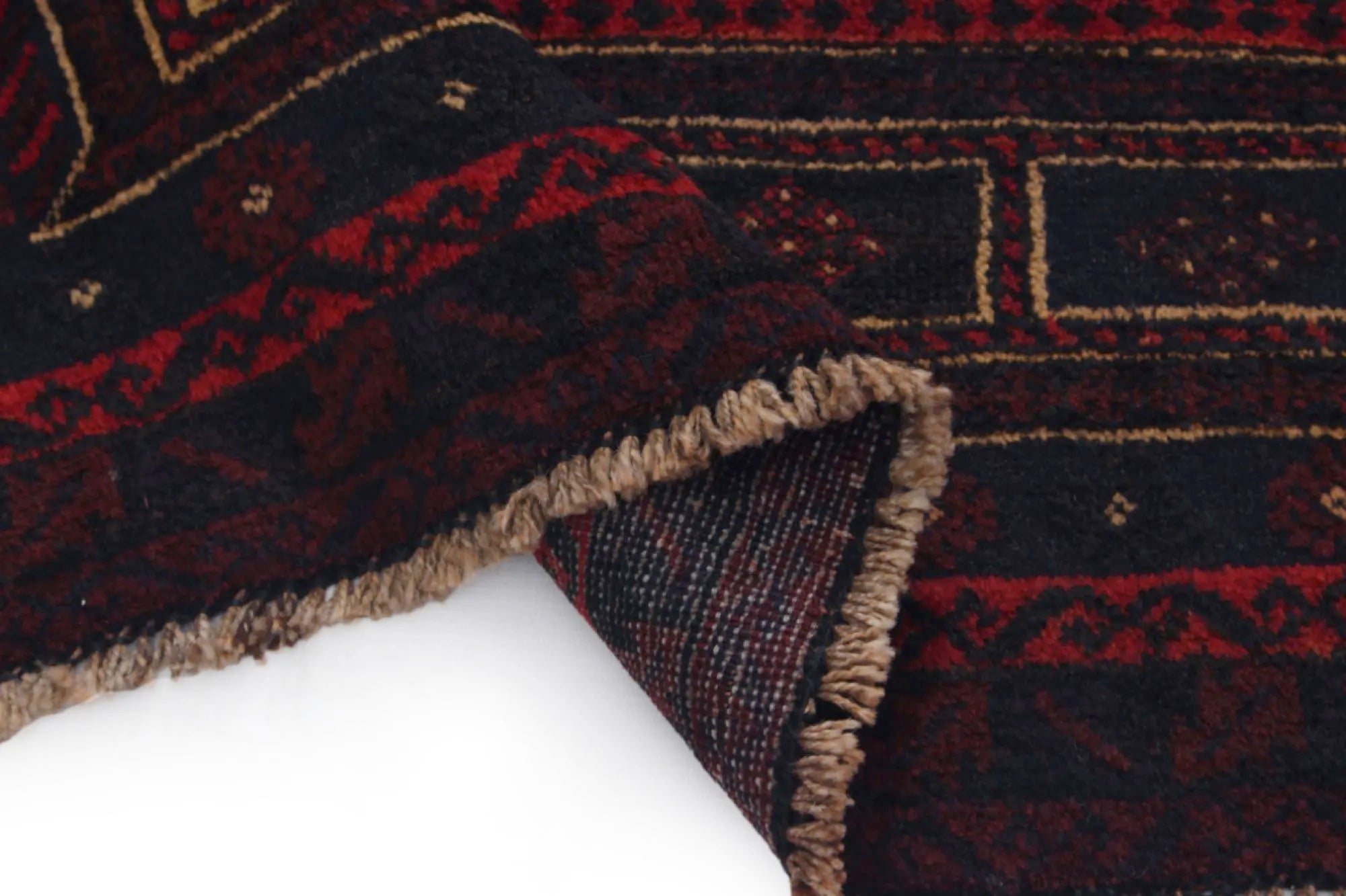 Baluch rugs originate from areas inhabited by the Baluch people, mainly in eastern Iran, western Afghanistan, and southwestern Pakistan. Baluch are known for their nomadic lifestyle, and their rugs reflect this cultural and geographical diversity. Baluch rugs often have intricate geometric patterns and sometimes stylized motifs that represent nature, such as flowers and animals. Common patterns include guls and octagons. Typical colors include deep red, blue, and brown, often combined with white and black accents to create contrast. These rugs are usually hand-woven with wool on a cotton base, giving them both durability and softness. Wool is the most common material used, but sometimes goat hair or silk is also used. Traditionally, these rugs are woven by hand on horizontal or vertical looms, a process that can take several months depending on the size and comple x ity of the rug. Baluch rugs were primarily used as floor coverings in nomadic tents, but today they are also used as decorative wall hangings and sometimes as prayer mats. Many of the patterns and colors have symbolic meanings, such as protective amulets or symbols of prosperity and fertility. Baluch rugs are not only practical items but also works of art that tell a rich story about the people and cultures that created them.