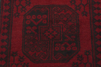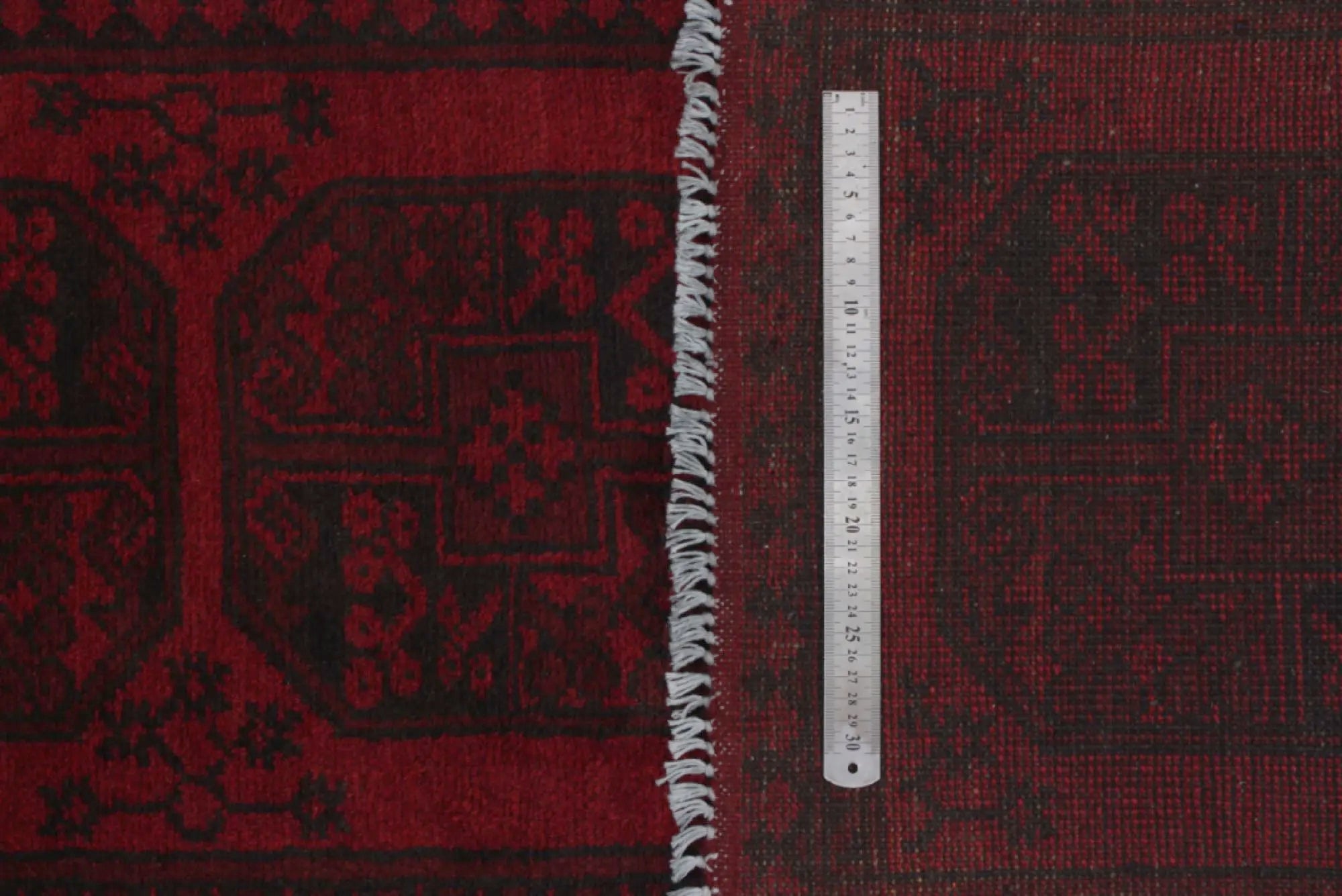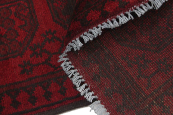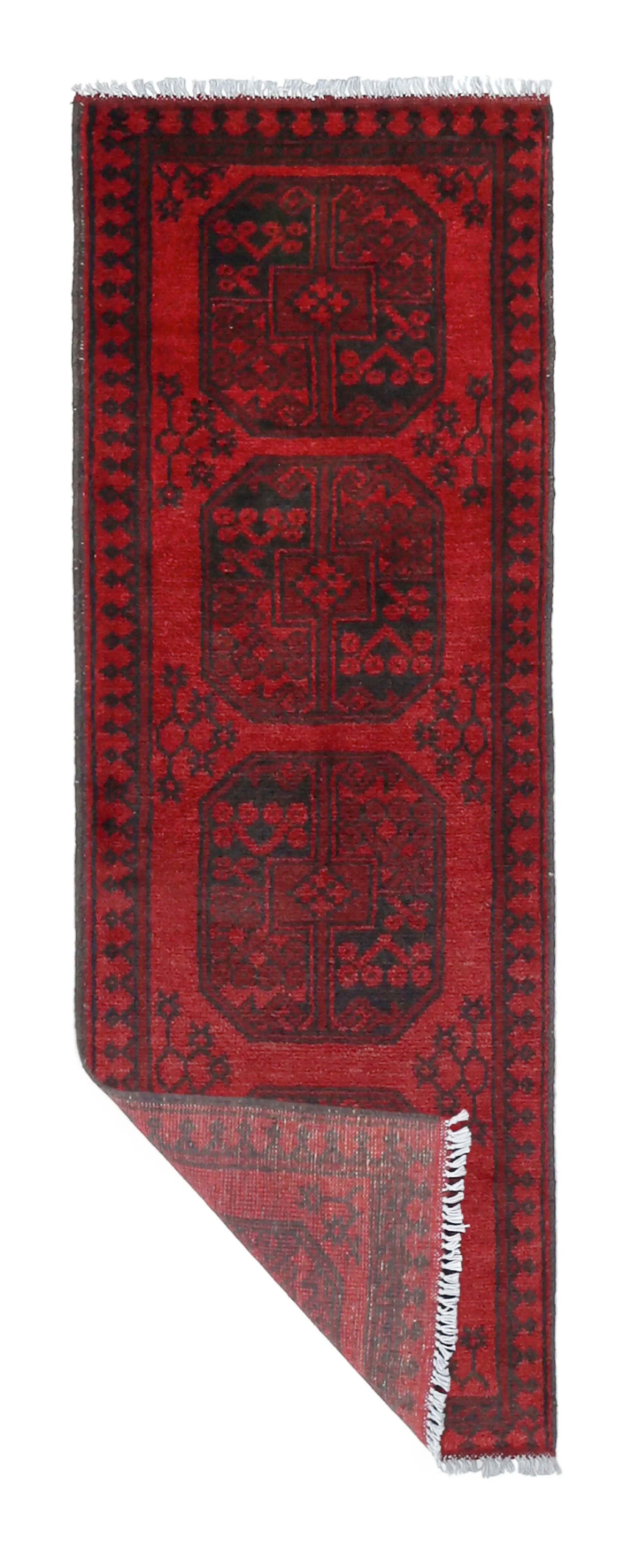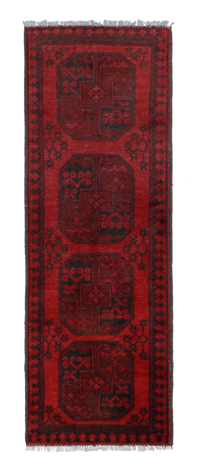 Discover this exquisite hand-knotted Akche rug from Afghanistan, crafted in rich, deep red and black tones that bring warmth and elegance to any interior. Made from 100% pure wool, including the fringes, it contains no synthetic materials, giving it a naturally soft, durable, and authentic feel. The traditional “elephant foot” motif, characteristic of Akche rugs, adds a timeless and culturally rich expression. A perfect choice for anyone seeking a rug that unites craftsmanship, character, and classic oriental beauty.