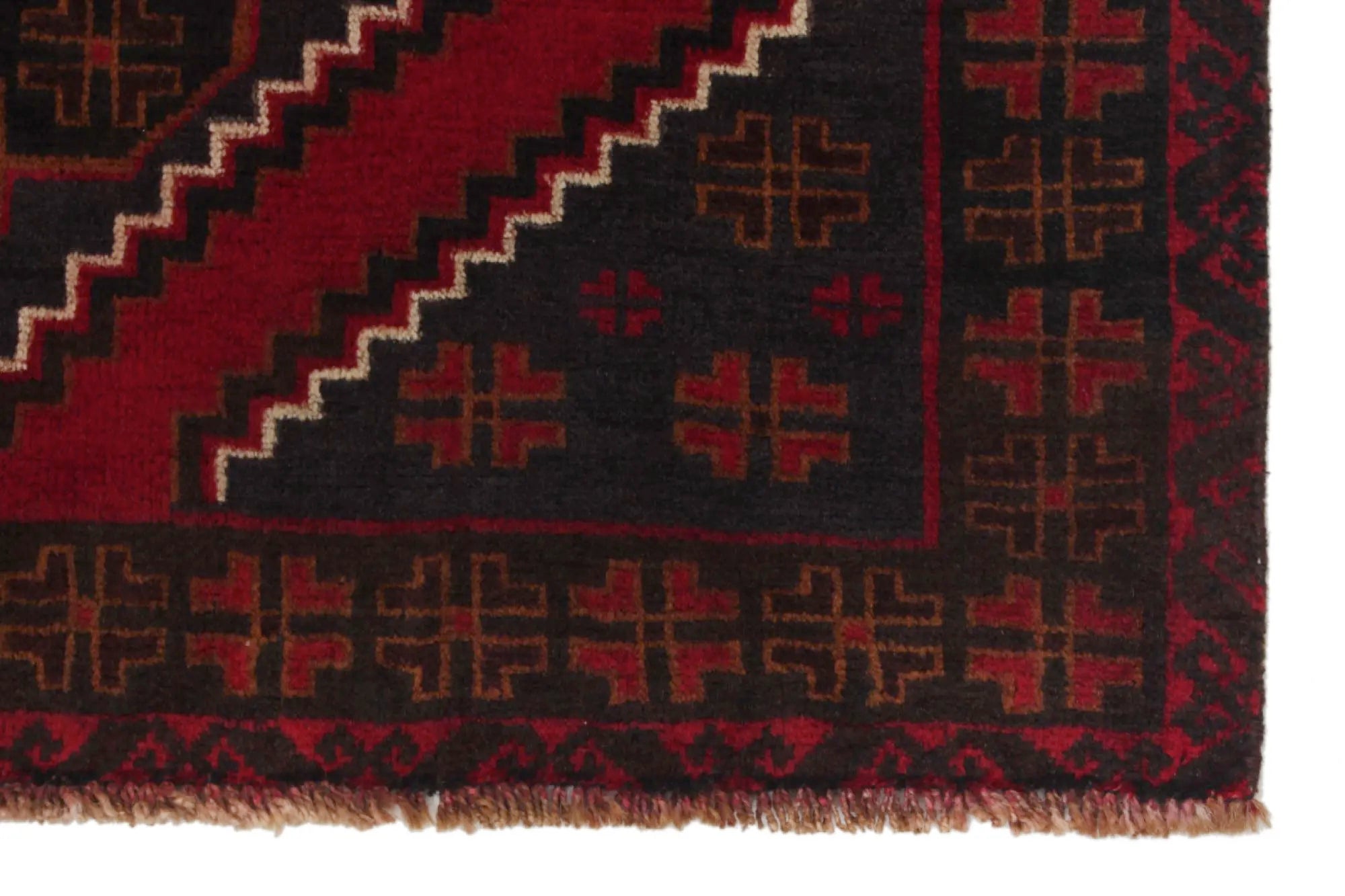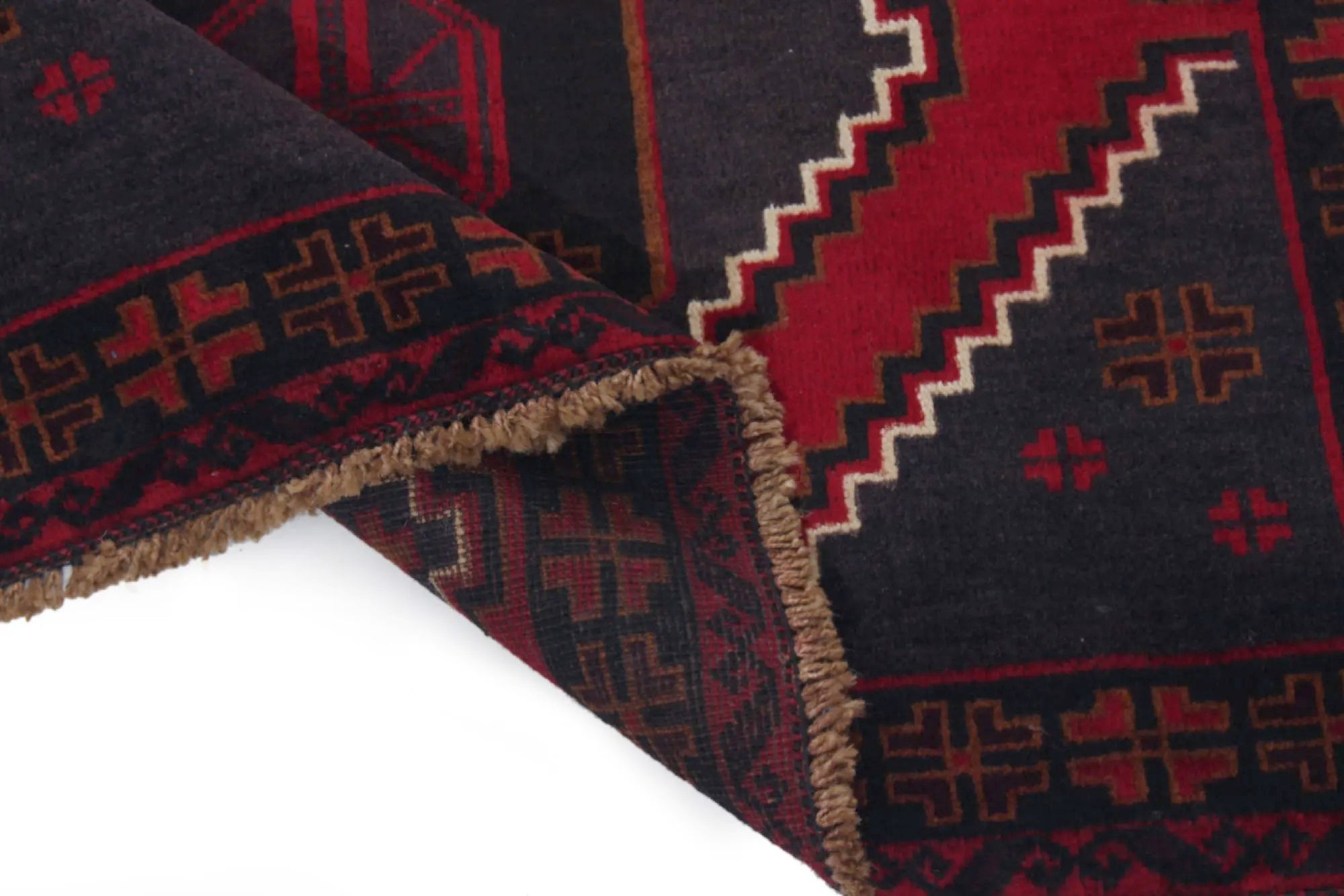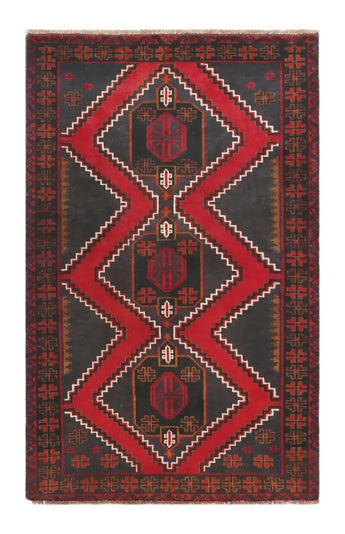 Baluch rugs originate from areas inhabited by the Baluch people, mainly in eastern Iran, western Afghanistan, and southwestern Pakistan. Baluch are known for their nomadic lifestyle, and their rugs reflect this cultural and geographical diversity. Baluch rugs often have intricate geometric patterns and sometimes stylized motifs that represent nature, such as flowers and animals. Common patterns include guls and octagons. Typical colors include deep red, blue, and brown, often combined with white and black accents to create contrast. These rugs are usually hand-woven with wool on a cotton base, giving them both durability and softness. Wool is the most common material used, but sometimes goat hair or silk is also used. Traditionally, these rugs are woven by hand on horizontal or vertical looms, a process that can take several months depending on the size and comple x ity of the rug. Baluch rugs were primarily used as floor coverings in nomadic tents, but today they are also used as decorative wall hangings and sometimes as prayer mats. Many of the patterns and colors have symbolic meanings, such as protective amulets or symbols of prosperity and fertility. Baluch rugs are not only practical items but also works of art that tell a rich story about the people and cultures that created them.