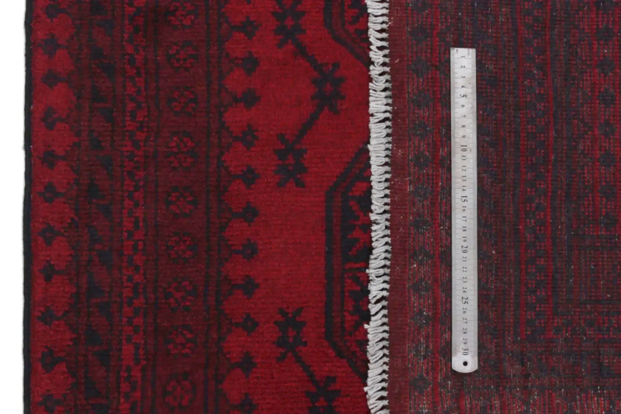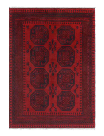 Discover this exquisite hand-knotted Akche rug from Afghanistan, crafted in rich, deep red and black tones that bring warmth and elegance to any interior. Made from 100% pure wool, including the fringes, it contains no synthetic materials, giving it a naturally soft, durable, and authentic feel. The traditional “elephant foot” motif, characteristic of Akche rugs, adds a timeless and culturally rich expression. A perfect choice for anyone seeking a rug that unites craftsmanship, character, and classic oriental beauty.