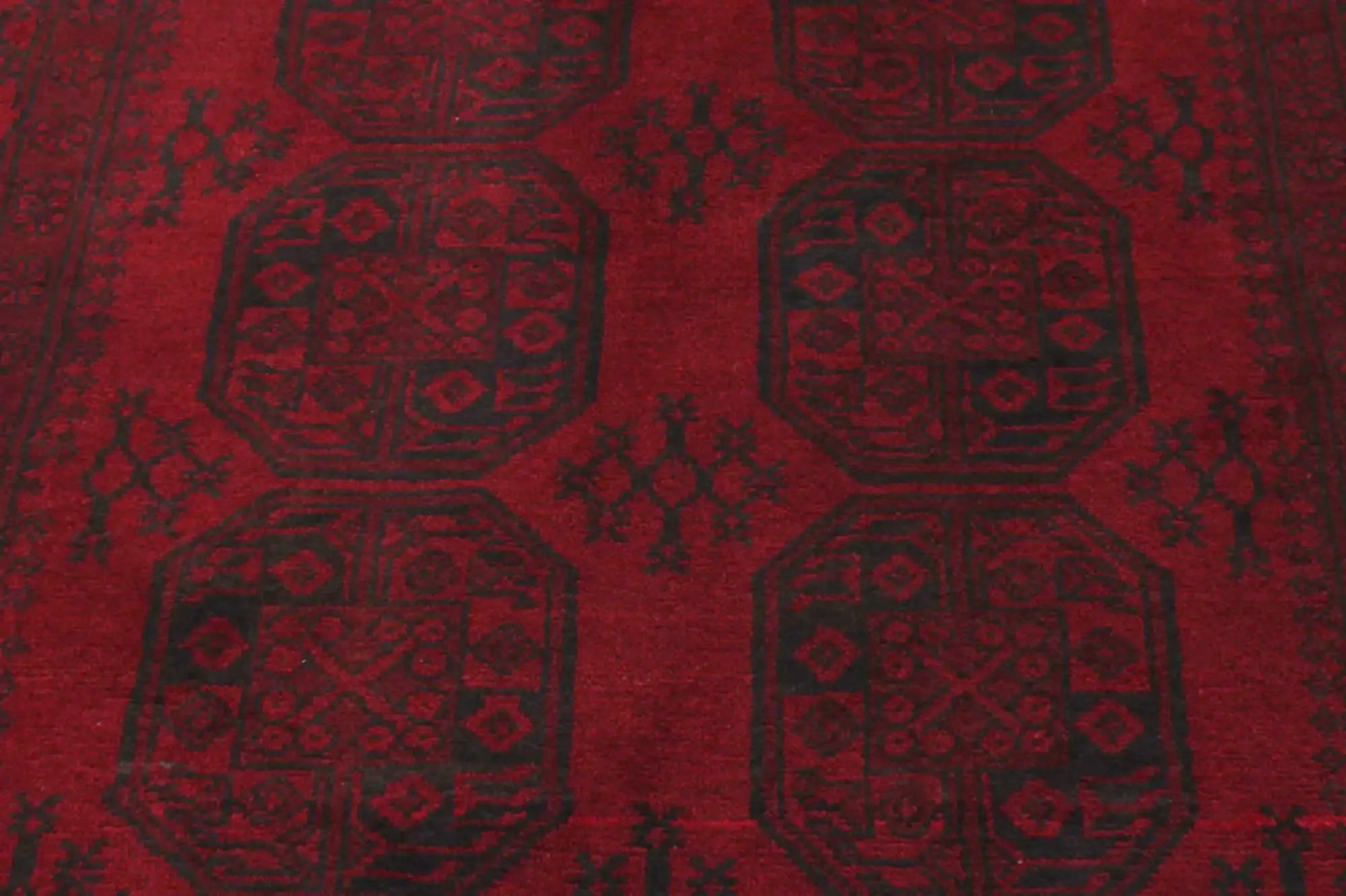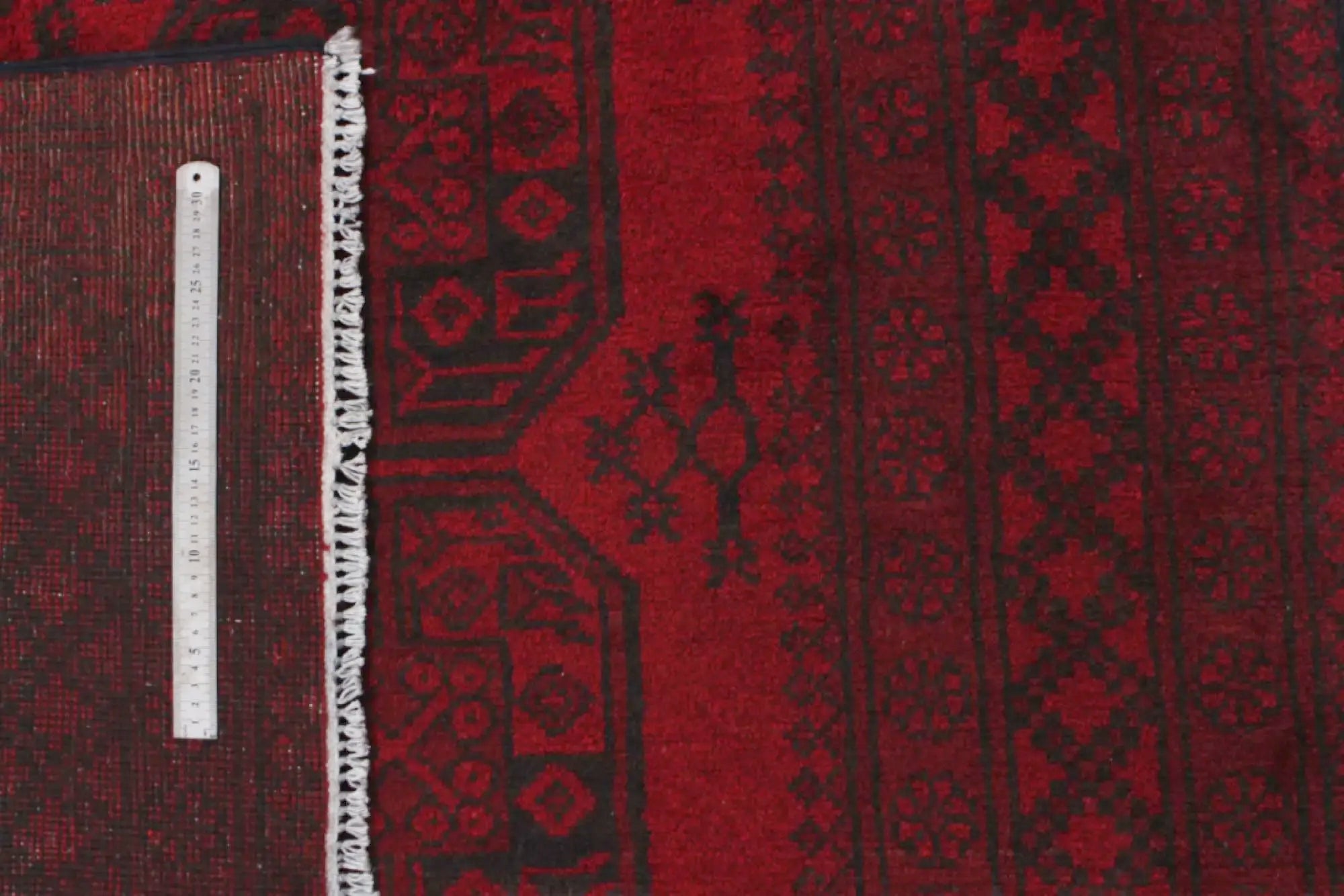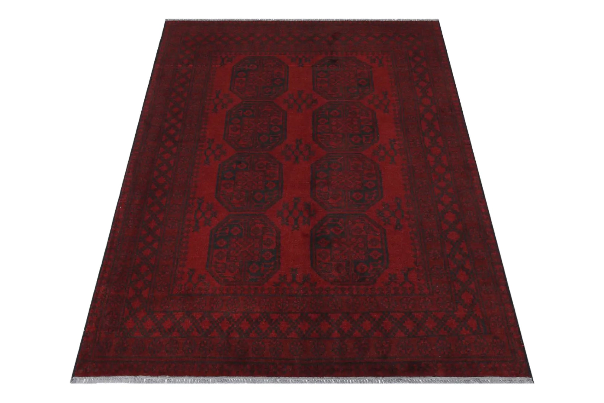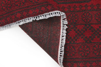 Discover this exquisite hand-knotted Akche rug from Afghanistan, crafted in rich, deep red and black tones that bring warmth and elegance to any interior. Made from 100% pure wool, including the fringes, it contains no synthetic materials, giving it a naturally soft, durable, and authentic feel. The traditional “elephant foot” motif, characteristic of Akche rugs, adds a timeless and culturally rich expression. A perfect choice for anyone seeking a rug that unites craftsmanship, character, and classic oriental beauty.