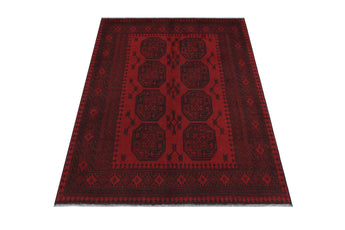 Discover this exquisite hand-knotted Akche rug from Afghanistan, crafted in rich, deep red and black tones that bring warmth and elegance to any interior. Made from 100% pure wool, including the fringes, it contains no synthetic materials, giving it a naturally soft, durable, and authentic feel. The traditional “elephant foot” motif, characteristic of Akche rugs, adds a timeless and culturally rich expression. A perfect choice for anyone seeking a rug that unites craftsmanship, character, and classic oriental beauty.