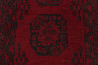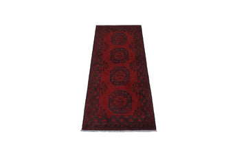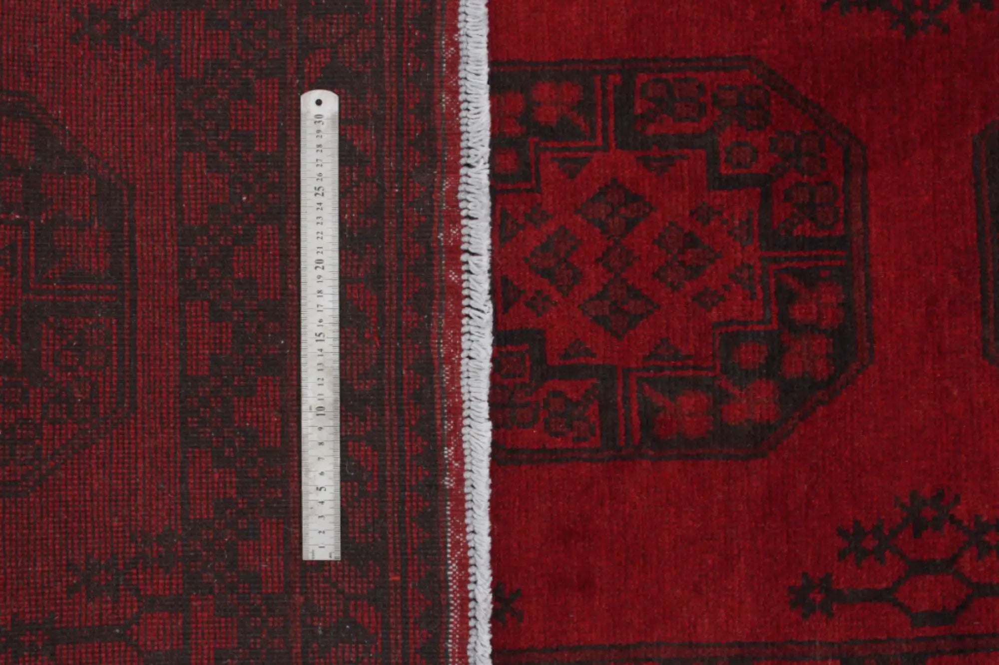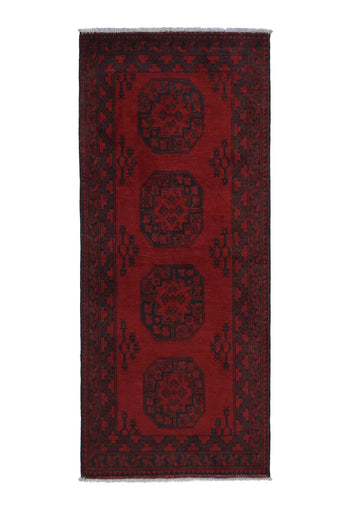 Discover this exquisite hand-knotted Akche rug from Afghanistan, crafted in rich, deep red and black tones that bring warmth and elegance to any interior. Made from 100% pure wool, including the fringes, it contains no synthetic materials, giving it a naturally soft, durable, and authentic feel. The traditional “elephant foot” motif, characteristic of Akche rugs, adds a timeless and culturally rich expression. A perfect choice for anyone seeking a rug that unites craftsmanship, character, and classic oriental beauty.