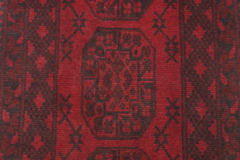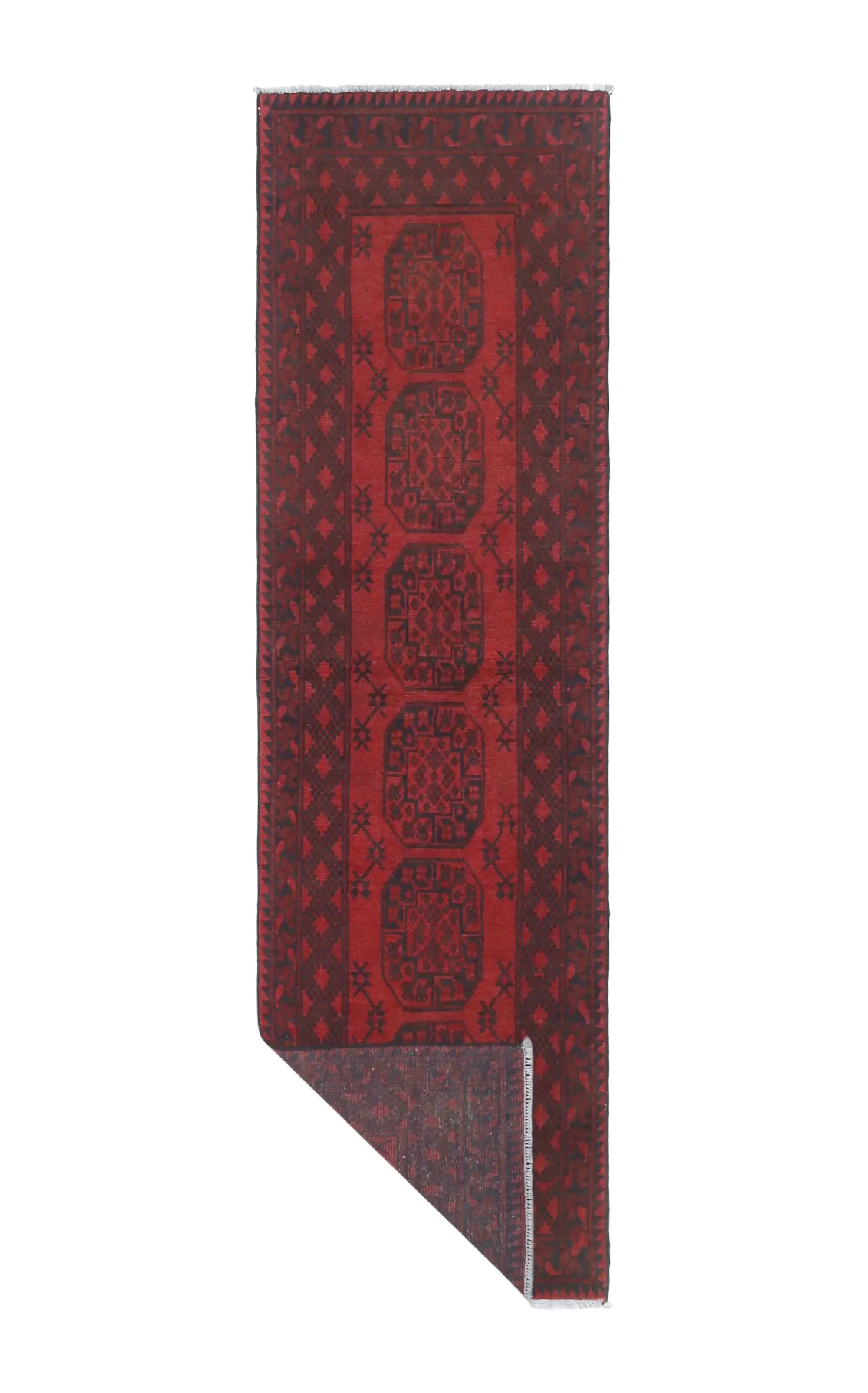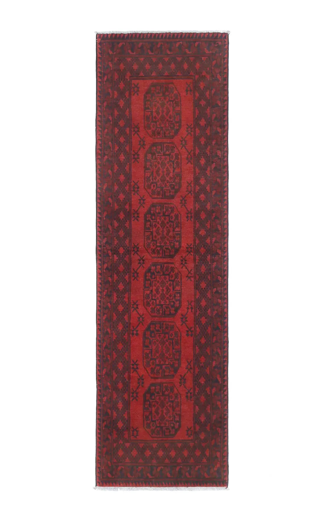 Discover this exquisite hand-knotted Akche rug from Afghanistan, crafted in rich, deep red and black tones that bring warmth and elegance to any interior. Made from 100% pure wool, including the fringes, it contains no synthetic materials, giving it a naturally soft, durable, and authentic feel. The traditional “elephant foot” motif, characteristic of Akche rugs, adds a timeless and culturally rich expression. A perfect choice for anyone seeking a rug that unites craftsmanship, character, and classic oriental beauty.
