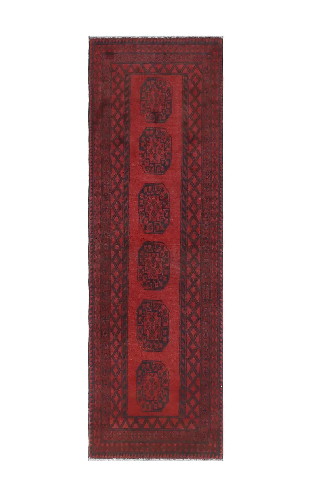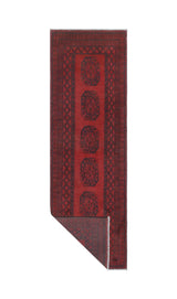 Discover this exquisite hand-knotted Akche rug from Afghanistan, crafted in rich, deep red and black tones that bring warmth and elegance to any interior. Made from 100% pure wool, including the fringes, it contains no synthetic materials, giving it a naturally soft, durable, and authentic feel. The traditional “elephant foot” motif, characteristic of Akche rugs, adds a timeless and culturally rich expression. A perfect choice for anyone seeking a rug that unites craftsmanship, character, and classic oriental beauty.