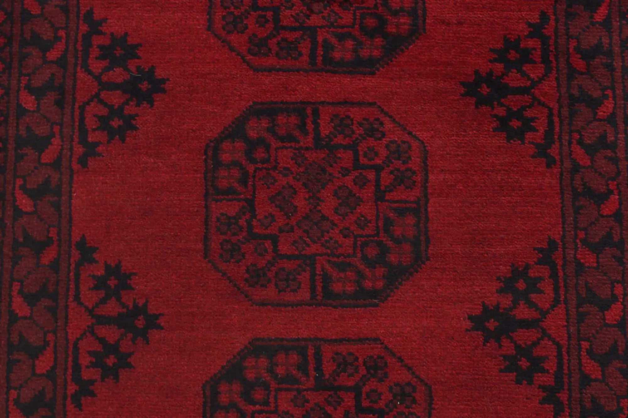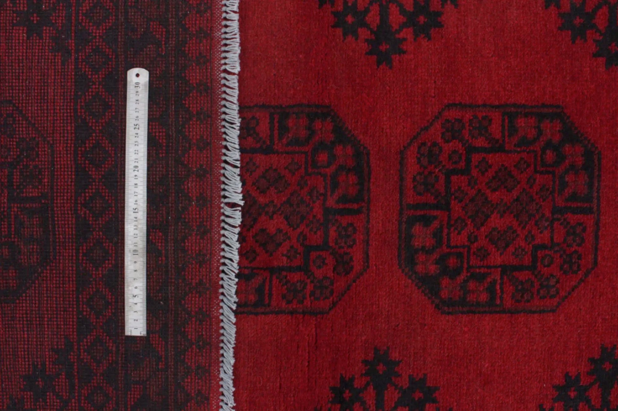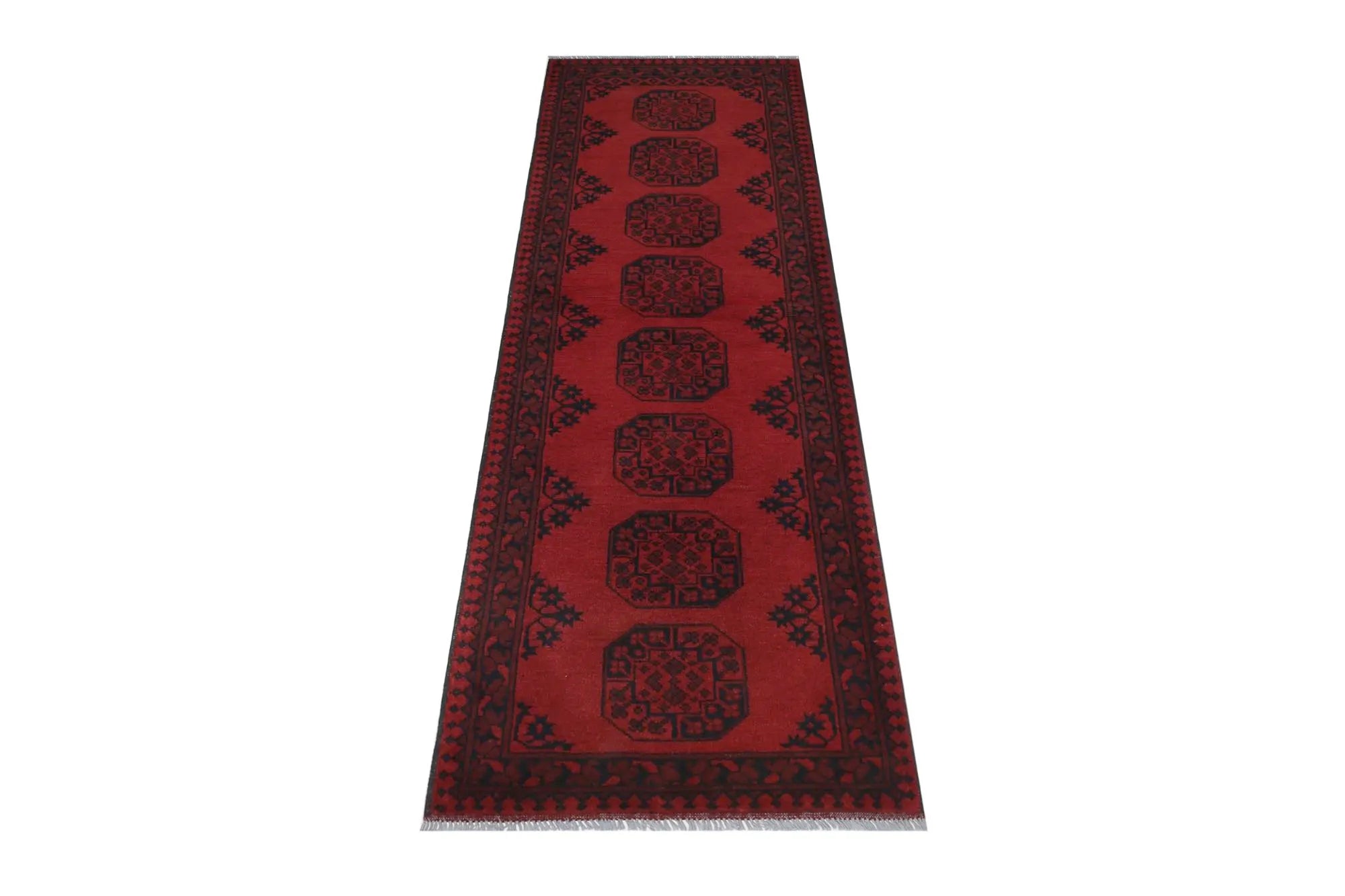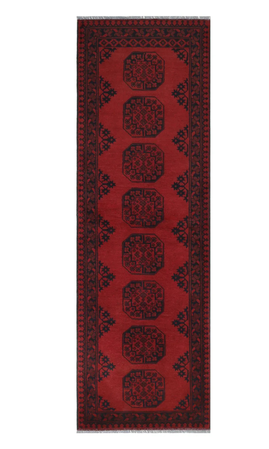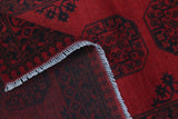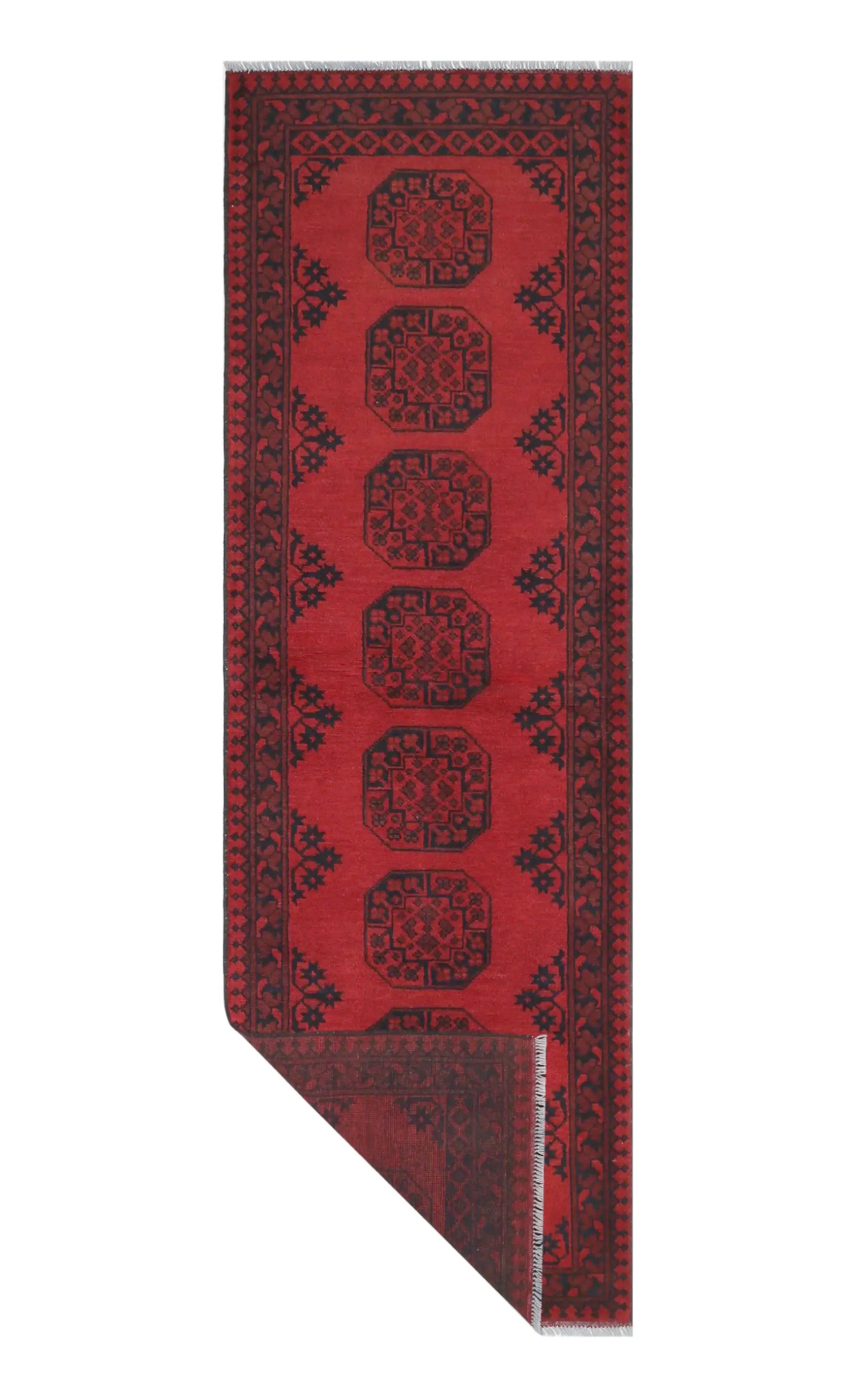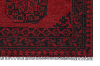 Discover this exquisite hand-knotted Akche rug from Afghanistan, crafted in rich, deep red and black tones that bring warmth and elegance to any interior. Made from 100% pure wool, including the fringes, it contains no synthetic materials, giving it a naturally soft, durable, and authentic feel. The traditional “elephant foot” motif, characteristic of Akche rugs, adds a timeless and culturally rich expression. A perfect choice for anyone seeking a rug that unites craftsmanship, character, and classic oriental beauty.