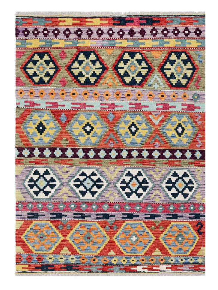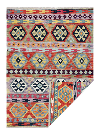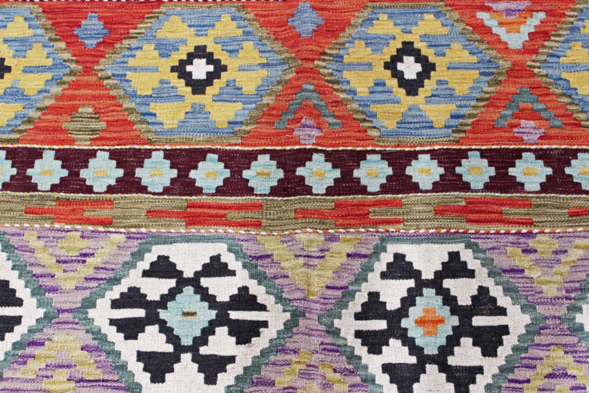 A Masterpiece of Afghan Craftsmanship with Caucasian Inspiration. Kelim Chobi rugs are a brilliant e x ample of traditional Afghan craftsmanship, combining both quality and aesthetic finesse. These rugs are uniquely handwoven in Afghanistan and carry a rich history of craftsmanship, where traditional techniques have been passed down through generations. What makes Kelim Chobi rugs particularly remarkable is their distinct design, heavily influenced by Caucasian patterns. The geometric shapes and symmetrical patterns, typical of Caucasian rugs, give Kelim Chobi rugs their unique and timeless character. The colors used in Kelim Chobi rugs are often subdued and natural, providing them with an elegant and sophisticated look. These colors are derived from natural dyes, which not only provide a durable and authentic color palette but also reflect a deep respect for nature and traditional methods. Each Kelim Chobi rug is handwoven with the utmost care and precision, ensuring high quality and durability. The rugs are flat-woven, giving them a smooth surface and making them both practical and easy to maintain. Thanks to their combination of Afghan craftsmanship and Caucasian design, Kelim Chobi rugs are a popular choice for those looking for a beautiful and timeless decorative element that can enhance any room. These rugs are not only practical floor coverings but also artworks that tell a story of tradition and culture. If you are looking for a rug that combines traditional craftsmanship with stylish design, Kelim Chobi rugs are an e x cellent choice. Their timeless beauty and durable quality make them a perfect investment for your home.