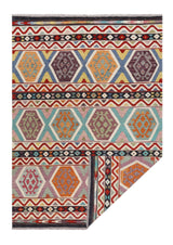 A Masterpiece of Afghan Craftsmanship with Caucasian Inspiration. Kelim Chobi rugs are a brilliant e x ample of traditional Afghan craftsmanship, combining both quality and aesthetic finesse. These rugs are uniquely handwoven in Afghanistan and carry a rich history of craftsmanship, where traditional techniques have been passed down through generations. What makes Kelim Chobi rugs particularly remarkable is their distinct design, heavily influenced by Caucasian patterns. The geometric shapes and symmetrical patterns, typical of Caucasian rugs, give Kelim Chobi rugs their unique and timeless character. The colors used in Kelim Chobi rugs are often subdued and natural, providing them with an elegant and sophisticated look. These colors are derived from natural dyes, which not only provide a durable and authentic color palette but also reflect a deep respect for nature and traditional methods. Each Kelim Chobi rug is handwoven with the utmost care and precision, ensuring high quality and durability. The rugs are flat-woven, giving them a smooth surface and making them both practical and easy to maintain. Thanks to their combination of Afghan craftsmanship and Caucasian design, Kelim Chobi rugs are a popular choice for those looking for a beautiful and timeless decorative element that can enhance any room. These rugs are not only practical floor coverings but also artworks that tell a story of tradition and culture. If you are looking for a rug that combines traditional craftsmanship with stylish design, Kelim Chobi rugs are an e x cellent choice. Their timeless beauty and durable quality make them a perfect investment for your home.
