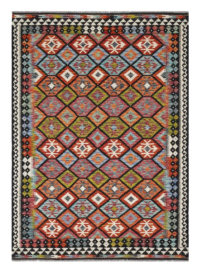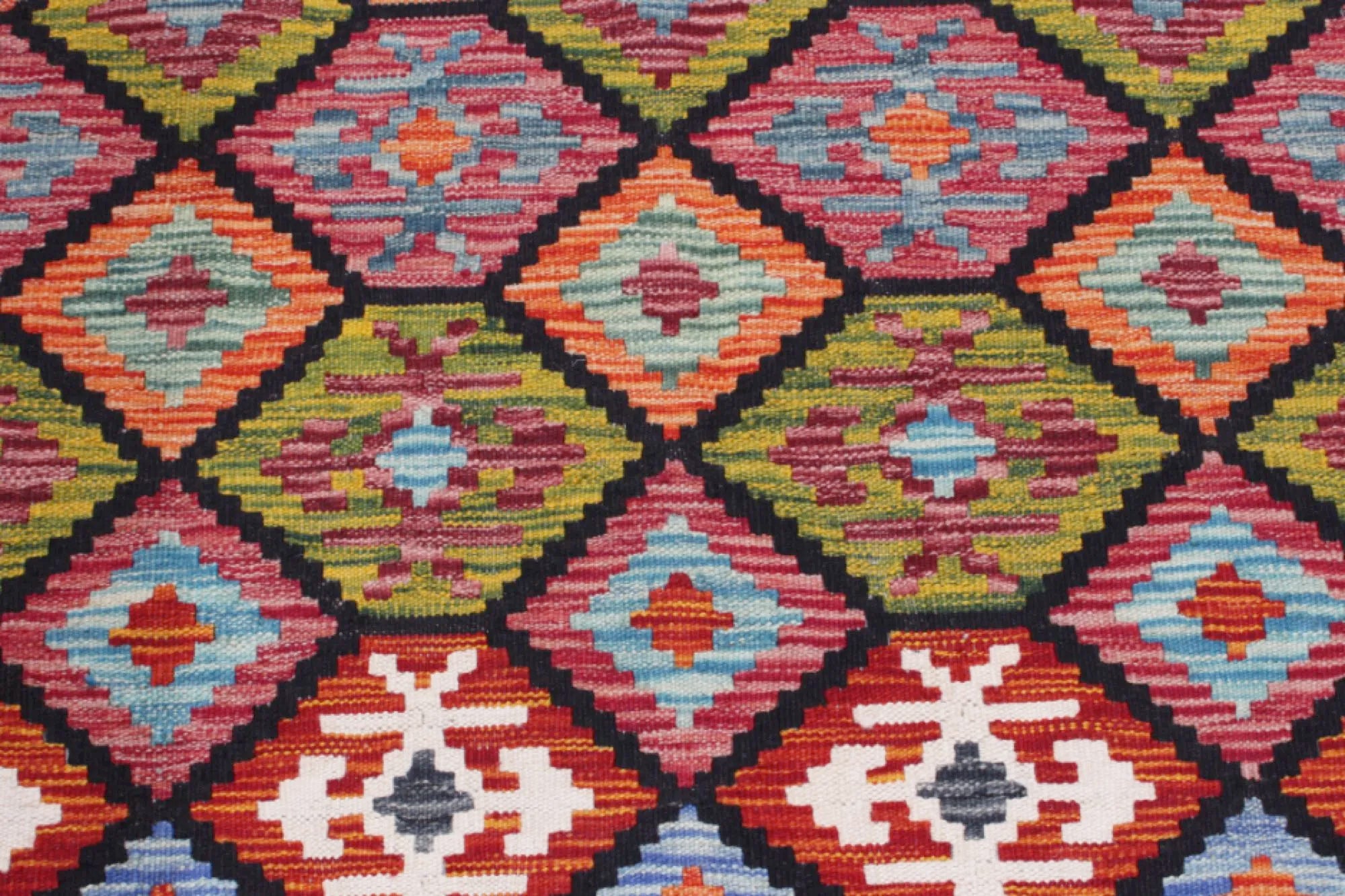 A Masterpiece of Afghan Craftsmanship with Caucasian Inspiration. Kelim Chobi rugs are a brilliant e x ample of traditional Afghan craftsmanship, combining both quality and aesthetic finesse. These rugs are uniquely handwoven in Afghanistan and carry a rich history of craftsmanship, where traditional techniques have been passed down through generations. What makes Kelim Chobi rugs particularly remarkable is their distinct design, heavily influenced by Caucasian patterns. The geometric shapes and symmetrical patterns, typical of Caucasian rugs, give Kelim Chobi rugs their unique and timeless character. The colors used in Kelim Chobi rugs are often subdued and natural, providing them with an elegant and sophisticated look. These colors are derived from natural dyes, which not only provide a durable and authentic color palette but also reflect a deep respect for nature and traditional methods. Each Kelim Chobi rug is handwoven with the utmost care and precision, ensuring high quality and durability. The rugs are flat-woven, giving them a smooth surface and making them both practical and easy to maintain. Thanks to their combination of Afghan craftsmanship and Caucasian design, Kelim Chobi rugs are a popular choice for those looking for a beautiful and timeless decorative element that can enhance any room. These rugs are not only practical floor coverings but also artworks that tell a story of tradition and culture. If you are looking for a rug that combines traditional craftsmanship with stylish design, Kelim Chobi rugs are an e x cellent choice. Their timeless beauty and durable quality make them a perfect investment for your home.