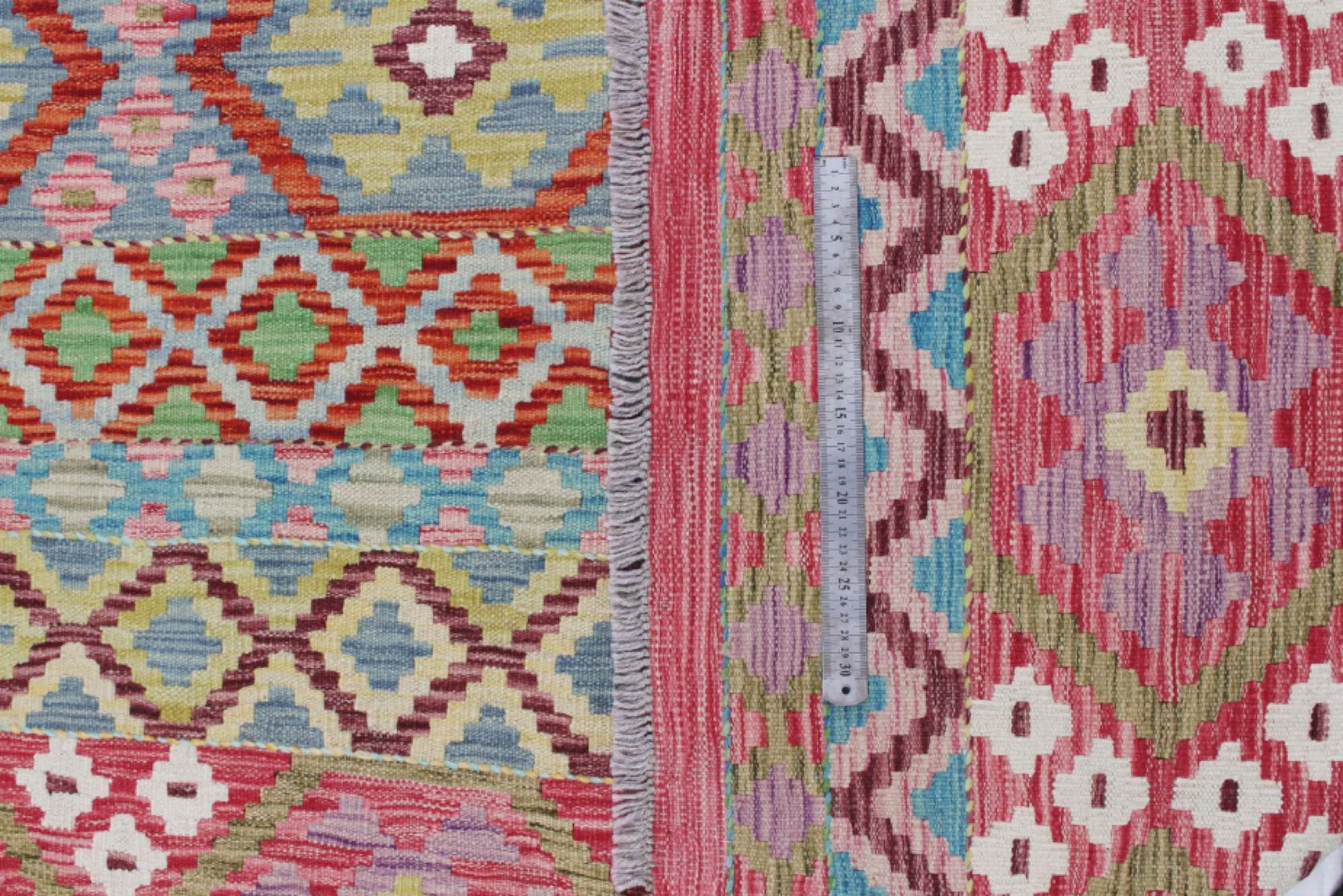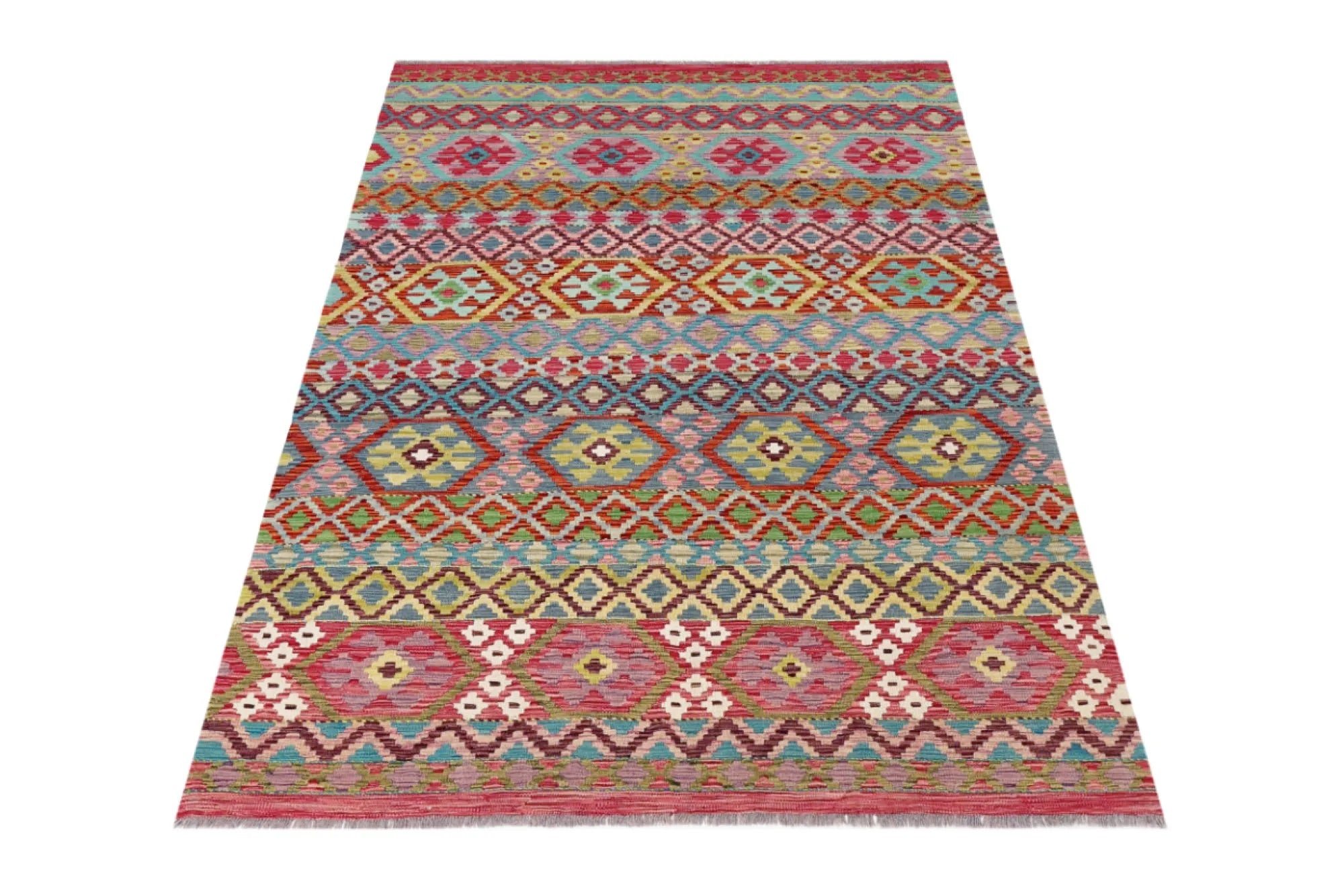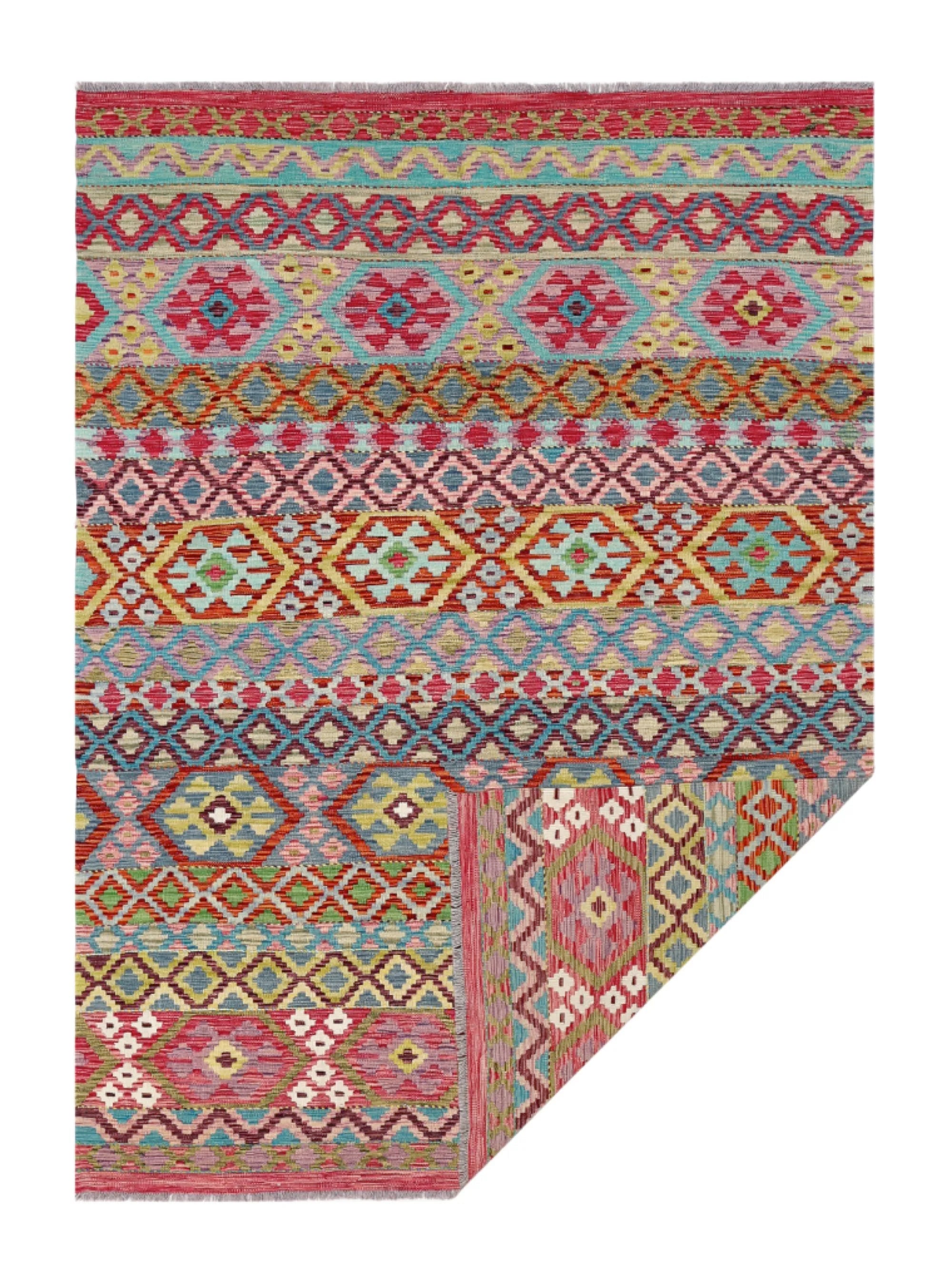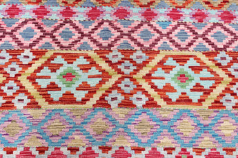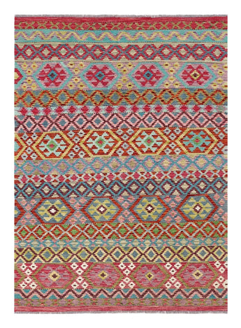 A Masterpiece of Afghan Craftsmanship with Caucasian Inspiration. Kelim Chobi rugs are a brilliant e x ample of traditional Afghan craftsmanship, combining both quality and aesthetic finesse. These rugs are uniquely handwoven in Afghanistan and carry a rich history of craftsmanship, where traditional techniques have been passed down through generations. What makes Kelim Chobi rugs particularly remarkable is their distinct design, heavily influenced by Caucasian patterns. The geometric shapes and symmetrical patterns, typical of Caucasian rugs, give Kelim Chobi rugs their unique and timeless character. The colors used in Kelim Chobi rugs are often subdued and natural, providing them with an elegant and sophisticated look. These colors are derived from natural dyes, which not only provide a durable and authentic color palette but also reflect a deep respect for nature and traditional methods. Each Kelim Chobi rug is handwoven with the utmost care and precision, ensuring high quality and durability. The rugs are flat-woven, giving them a smooth surface and making them both practical and easy to maintain. Thanks to their combination of Afghan craftsmanship and Caucasian design, Kelim Chobi rugs are a popular choice for those looking for a beautiful and timeless decorative element that can enhance any room. These rugs are not only practical floor coverings but also artworks that tell a story of tradition and culture. If you are looking for a rug that combines traditional craftsmanship with stylish design, Kelim Chobi rugs are an e x cellent choice. Their timeless beauty and durable quality make them a perfect investment for your home.
