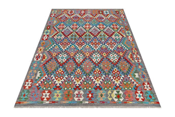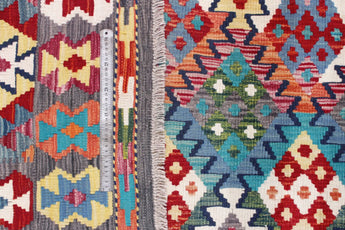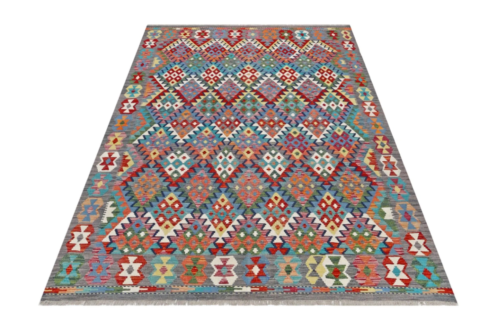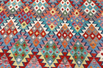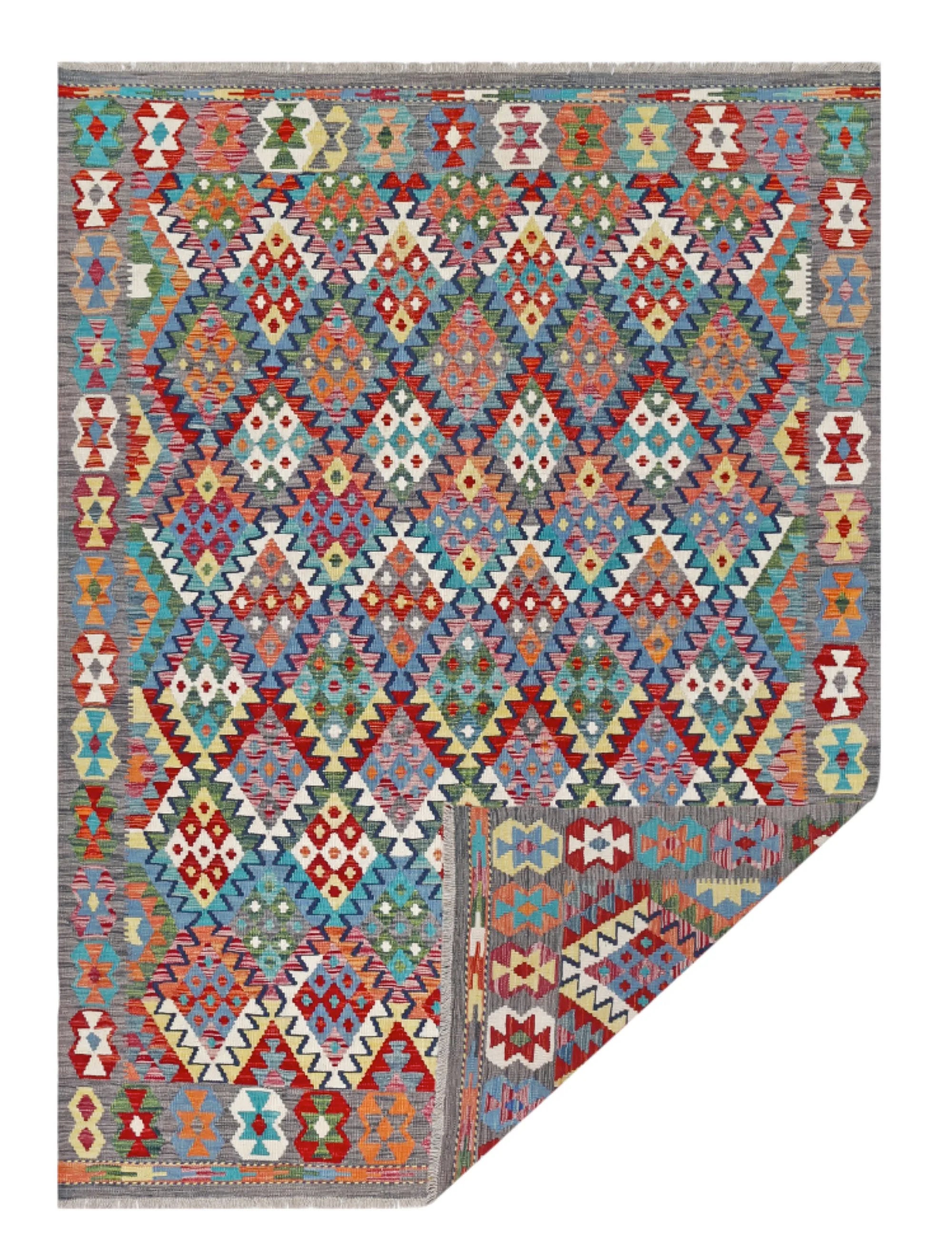 A Masterpiece of Afghan Craftsmanship with Caucasian Inspiration. Kelim Chobi rugs are a brilliant e x ample of traditional Afghan craftsmanship, combining both quality and aesthetic finesse. These rugs are uniquely handwoven in Afghanistan and carry a rich history of craftsmanship, where traditional techniques have been passed down through generations. What makes Kelim Chobi rugs particularly remarkable is their distinct design, heavily influenced by Caucasian patterns. The geometric shapes and symmetrical patterns, typical of Caucasian rugs, give Kelim Chobi rugs their unique and timeless character. The colors used in Kelim Chobi rugs are often subdued and natural, providing them with an elegant and sophisticated look. These colors are derived from natural dyes, which not only provide a durable and authentic color palette but also reflect a deep respect for nature and traditional methods. Each Kelim Chobi rug is handwoven with the utmost care and precision, ensuring high quality and durability. The rugs are flat-woven, giving them a smooth surface and making them both practical and easy to maintain. Thanks to their combination of Afghan craftsmanship and Caucasian design, Kelim Chobi rugs are a popular choice for those looking for a beautiful and timeless decorative element that can enhance any room. These rugs are not only practical floor coverings but also artworks that tell a story of tradition and culture. If you are looking for a rug that combines traditional craftsmanship with stylish design, Kelim Chobi rugs are an e x cellent choice. Their timeless beauty and durable quality make them a perfect investment for your home.