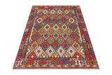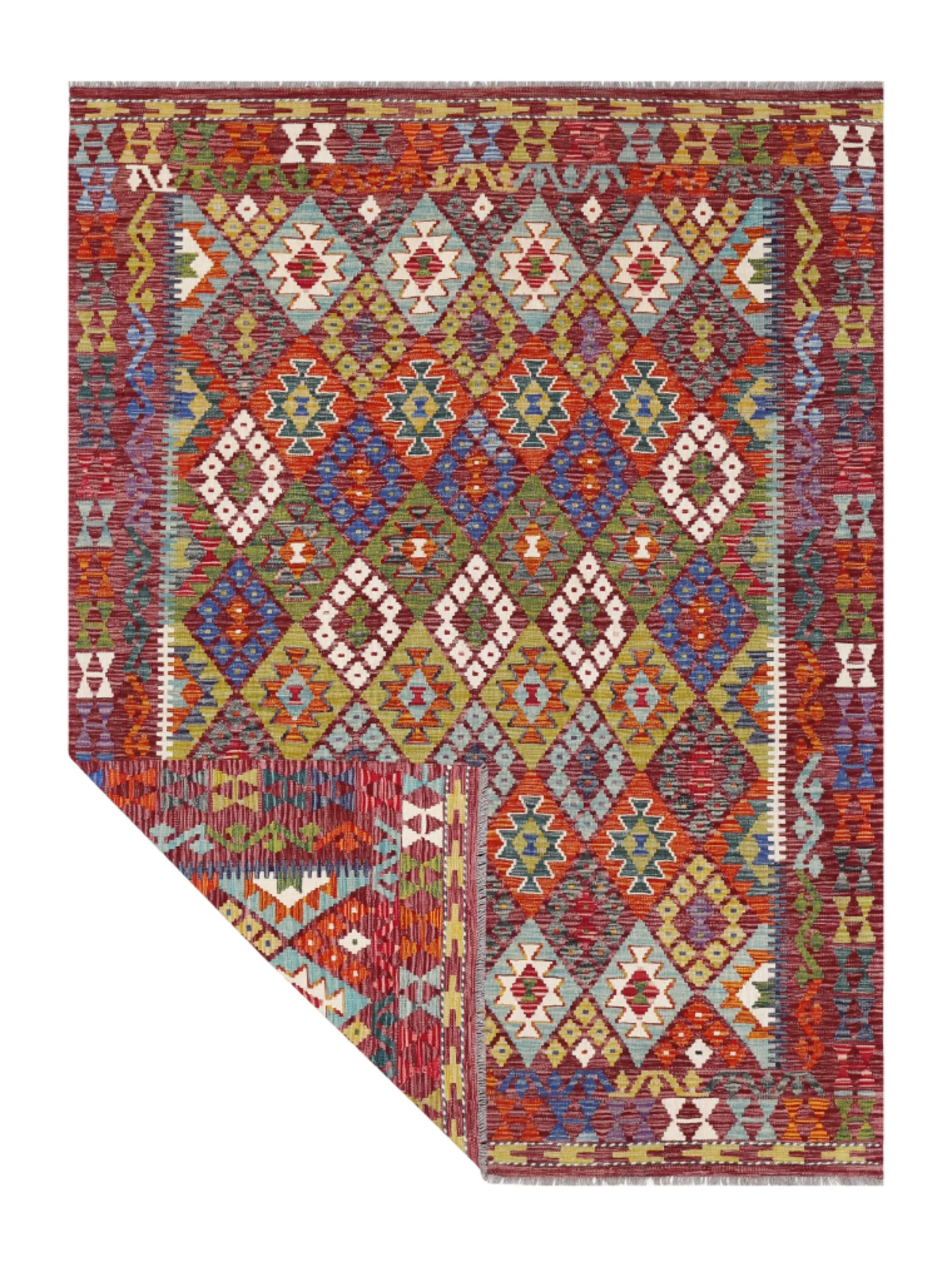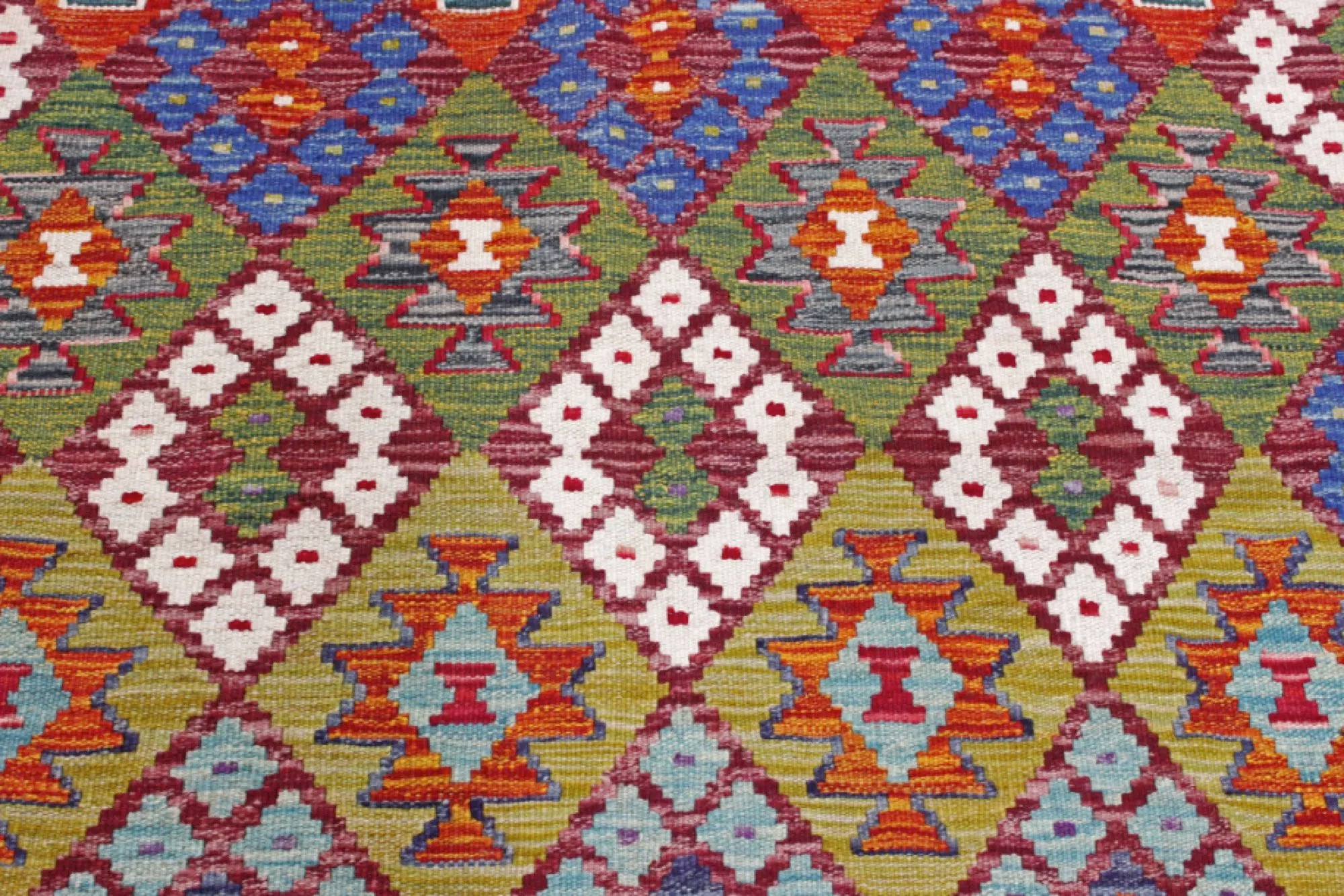 A Masterpiece of Afghan Craftsmanship with Caucasian Inspiration. Kelim Chobi rugs are a brilliant e x ample of traditional Afghan craftsmanship, combining both quality and aesthetic finesse. These rugs are uniquely handwoven in Afghanistan and carry a rich history of craftsmanship, where traditional techniques have been passed down through generations. What makes Kelim Chobi rugs particularly remarkable is their distinct design, heavily influenced by Caucasian patterns. The geometric shapes and symmetrical patterns, typical of Caucasian rugs, give Kelim Chobi rugs their unique and timeless character. The colors used in Kelim Chobi rugs are often subdued and natural, providing them with an elegant and sophisticated look. These colors are derived from natural dyes, which not only provide a durable and authentic color palette but also reflect a deep respect for nature and traditional methods. Each Kelim Chobi rug is handwoven with the utmost care and precision, ensuring high quality and durability. The rugs are flat-woven, giving them a smooth surface and making them both practical and easy to maintain. Thanks to their combination of Afghan craftsmanship and Caucasian design, Kelim Chobi rugs are a popular choice for those looking for a beautiful and timeless decorative element that can enhance any room. These rugs are not only practical floor coverings but also artworks that tell a story of tradition and culture. If you are looking for a rug that combines traditional craftsmanship with stylish design, Kelim Chobi rugs are an e x cellent choice. Their timeless beauty and durable quality make them a perfect investment for your home.
