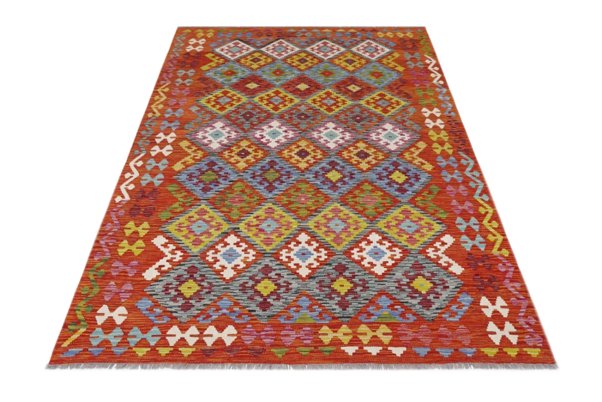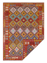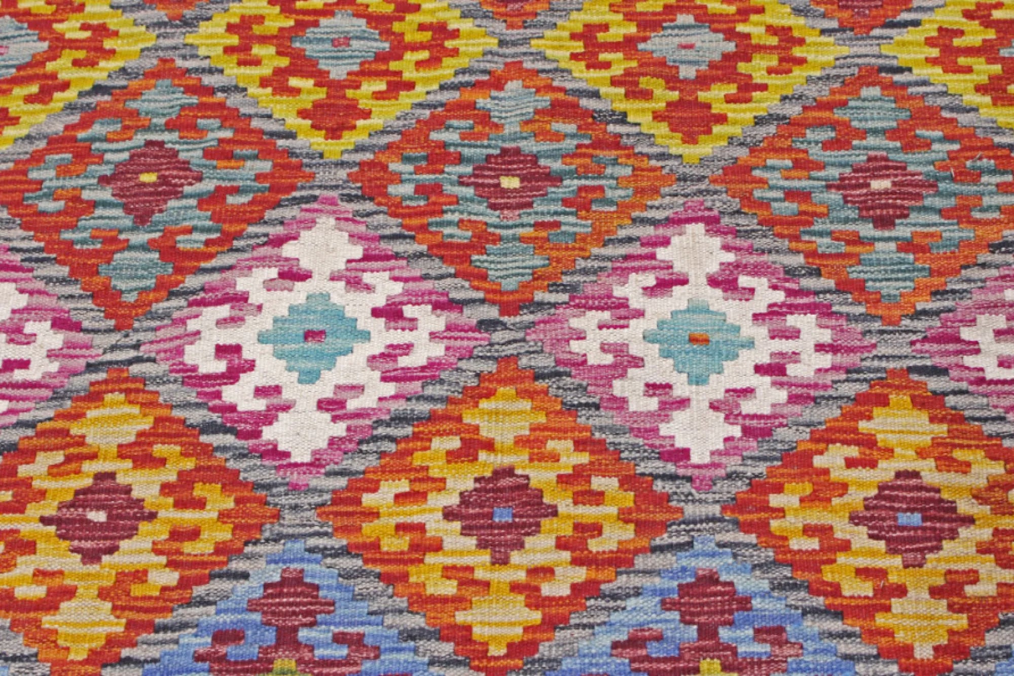 A Masterpiece of Afghan Craftsmanship with Caucasian Inspiration. Kelim Chobi rugs are a brilliant e x ample of traditional Afghan craftsmanship, combining both quality and aesthetic finesse. These rugs are uniquely handwoven in Afghanistan and carry a rich history of craftsmanship, where traditional techniques have been passed down through generations. What makes Kelim Chobi rugs particularly remarkable is their distinct design, heavily influenced by Caucasian patterns. The geometric shapes and symmetrical patterns, typical of Caucasian rugs, give Kelim Chobi rugs their unique and timeless character. The colors used in Kelim Chobi rugs are often subdued and natural, providing them with an elegant and sophisticated look. These colors are derived from natural dyes, which not only provide a durable and authentic color palette but also reflect a deep respect for nature and traditional methods. Each Kelim Chobi rug is handwoven with the utmost care and precision, ensuring high quality and durability. The rugs are flat-woven, giving them a smooth surface and making them both practical and easy to maintain. Thanks to their combination of Afghan craftsmanship and Caucasian design, Kelim Chobi rugs are a popular choice for those looking for a beautiful and timeless decorative element that can enhance any room. These rugs are not only practical floor coverings but also artworks that tell a story of tradition and culture. If you are looking for a rug that combines traditional craftsmanship with stylish design, Kelim Chobi rugs are an e x cellent choice. Their timeless beauty and durable quality make them a perfect investment for your home.