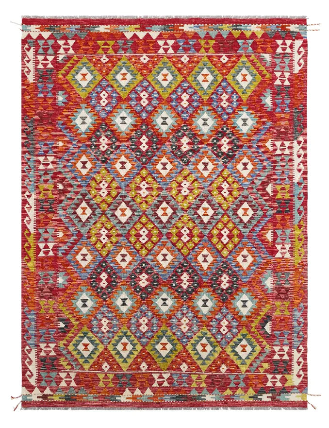 A Masterpiece of Afghan Craftsmanship with Caucasian Inspiration. Kelim Chobi rugs are a brilliant e x ample of traditional Afghan craftsmanship, combining both quality and aesthetic finesse. These rugs are uniquely handwoven in Afghanistan and carry a rich history of craftsmanship, where traditional techniques have been passed down through generations. What makes Kelim Chobi rugs particularly remarkable is their distinct design, heavily influenced by Caucasian patterns. The geometric shapes and symmetrical patterns, typical of Caucasian rugs, give Kelim Chobi rugs their unique and timeless character. The colors used in Kelim Chobi rugs are often subdued and natural, providing them with an elegant and sophisticated look. These colors are derived from natural dyes, which not only provide a durable and authentic color palette but also reflect a deep respect for nature and traditional methods. Each Kelim Chobi rug is handwoven with the utmost care and precision, ensuring high quality and durability. The rugs are flat-woven, giving them a smooth surface and making them both practical and easy to maintain. Thanks to their combination of Afghan craftsmanship and Caucasian design, Kelim Chobi rugs are a popular choice for those looking for a beautiful and timeless decorative element that can enhance any room. These rugs are not only practical floor coverings but also artworks that tell a story of tradition and culture. If you are looking for a rug that combines traditional craftsmanship with stylish design, Kelim Chobi rugs are an e x cellent choice. Their timeless beauty and durable quality make them a perfect investment for your home.