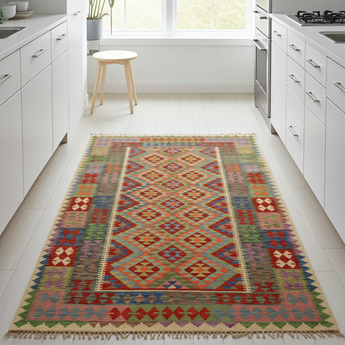 Ett mästerverk av afghanskt hantverk med kaukasisk inspiration. Kelim Chobi-mattor är ett lysande exempel på traditionellt afghanskt hantverk, som kombinerar både kvalitet och estetisk finess. Dessa mattor är unikt handvävda i Afghanistan och bär på en rik historia av hantverk, där traditionella tekniker har gått i arv genom generationer. Det som gör Kelim Chobi-mattor särskilt anmärkningsvärda är deras distinkta design, starkt påverkad av kaukasiska mönster. De geometriska formerna och symmetriska mönstren, typiska för kaukasiska mattor, ger Kelim Chobi-mattorna sin unika och tidlösa karaktär. Färgerna som används i Kelim Chobi-mattor är ofta dämpade och naturliga, vilket ger dem ett elegant och sofistikerat utseende. Dessa färger kommer från naturliga färgämnen, som inte bara ger en hållbar och autentisk färgpalett utan också återspeglar en djup respekt för naturen och traditionella metoder. Varje Kelim Chobi-matta är handvävd med största omsorg och precision, vilket säkerställer hög kvalitet och hållbarhet. Mattorna är plattvävda, vilket ger dem en slät yta och gör dem både praktiska och lätta att underhålla. Tack vare deras kombination av afghanskt hantverk och kaukasisk design är Kelim Chobi-mattor ett populärt val för dem som letar efter ett vackert och tidlöst dekorativt element som kan förhöja alla rum. Dessa mattor är inte bara praktiska golvbeläggningar utan också konstverk som berättar en historia om tradition och kultur. Om du letar efter en matta som kombinerar traditionellt hantverk med stilren design är Kelim Chobi-mattor ett utmärkt val. Deras tidlösa skönhet och hållbara kvalitet gör dem till en perfekt investering för ditt hem.