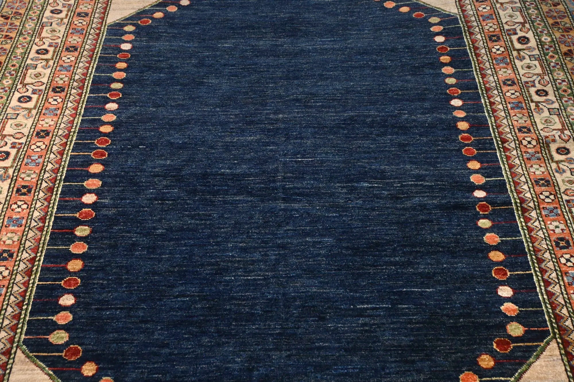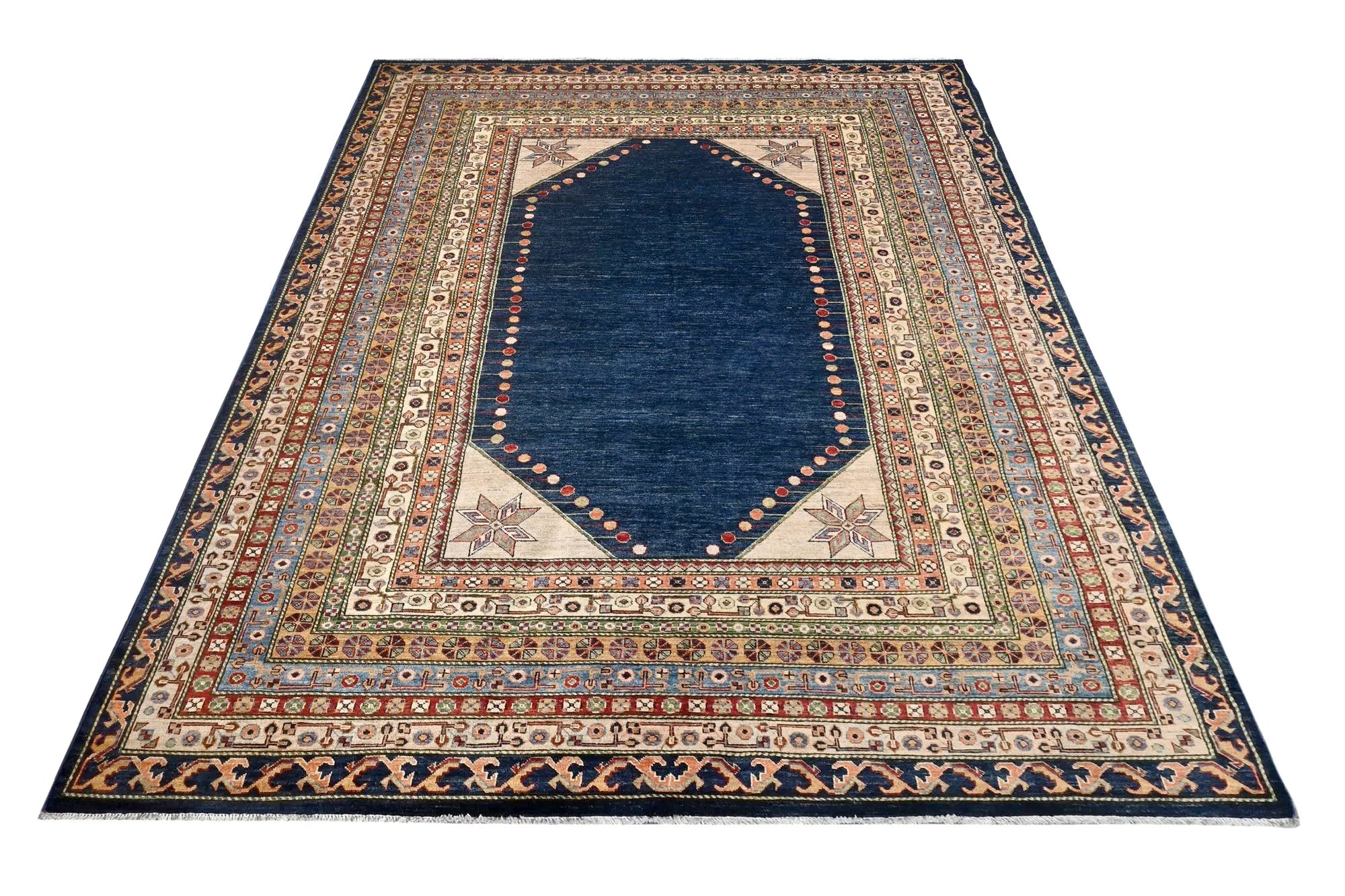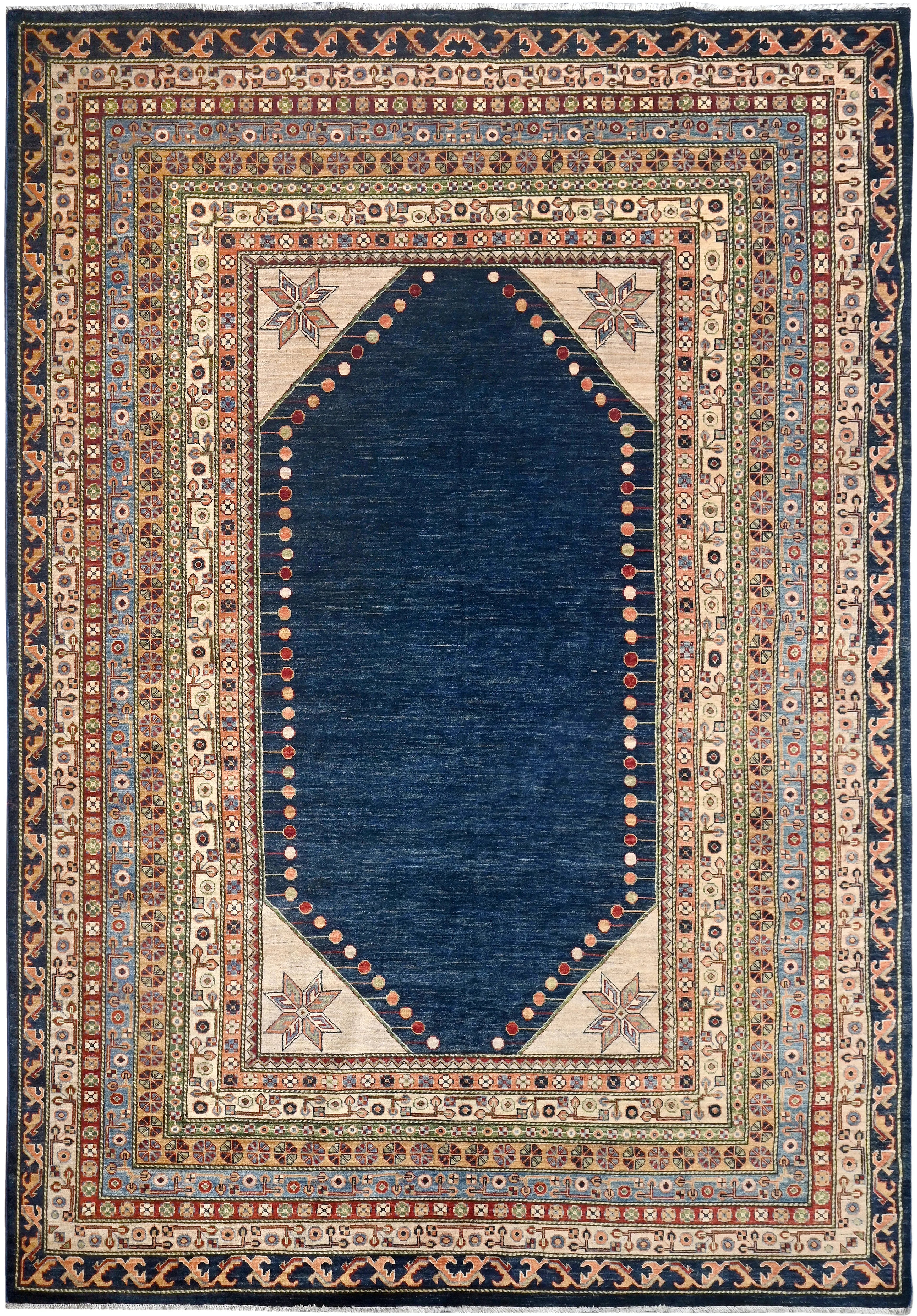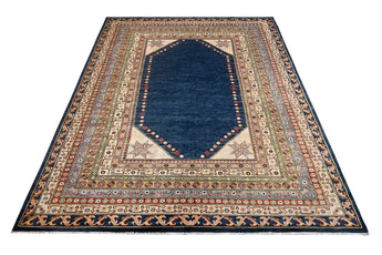 This exclusive rug is inspired by traditional Persian Heriz patterns, reinterpreted in a more modern, softer style with brighter and more uplifting colors. Each piece is hand-knotted in Afghanistan using hand-spun wool and 100% natural vegetable dyes, giving the rug outstanding durability and a beautiful organic sheen. While classic Heriz rugs are known for bold geometric shapes and strong medallion designs, this modern interpretation features a calmer, more contemporary layout that blends effortlessly into both classic and modern interiors. If you're looking for a hand-knotted Heriz rug, a luxury oriental rug, or a rug dyed with authentic vegetable colors, this Afghan-knotted Heriz design is an exceptional choice- a refined artwork that elevates any space.