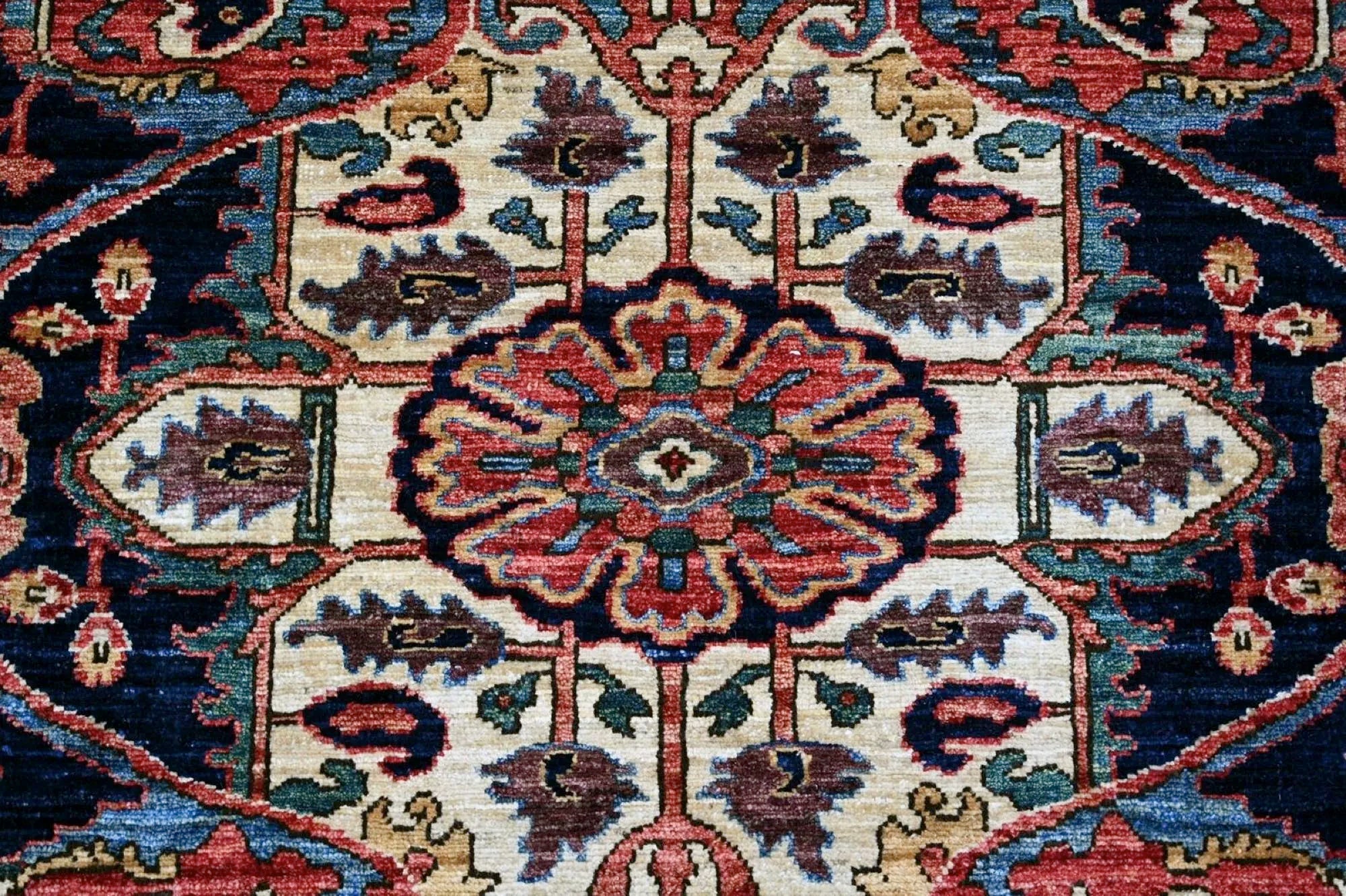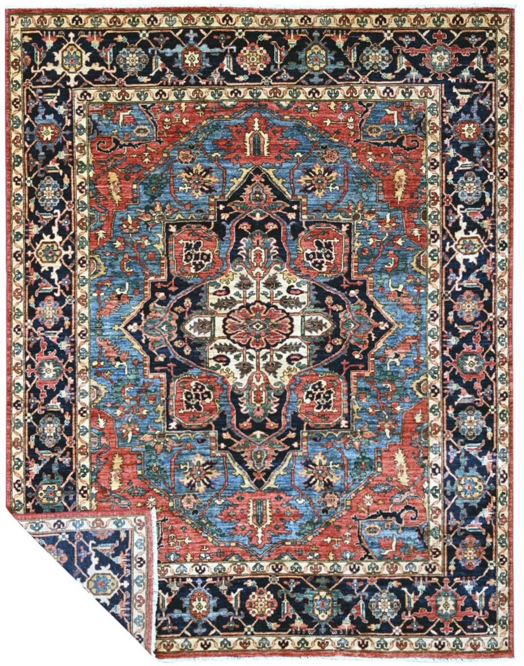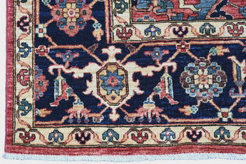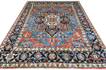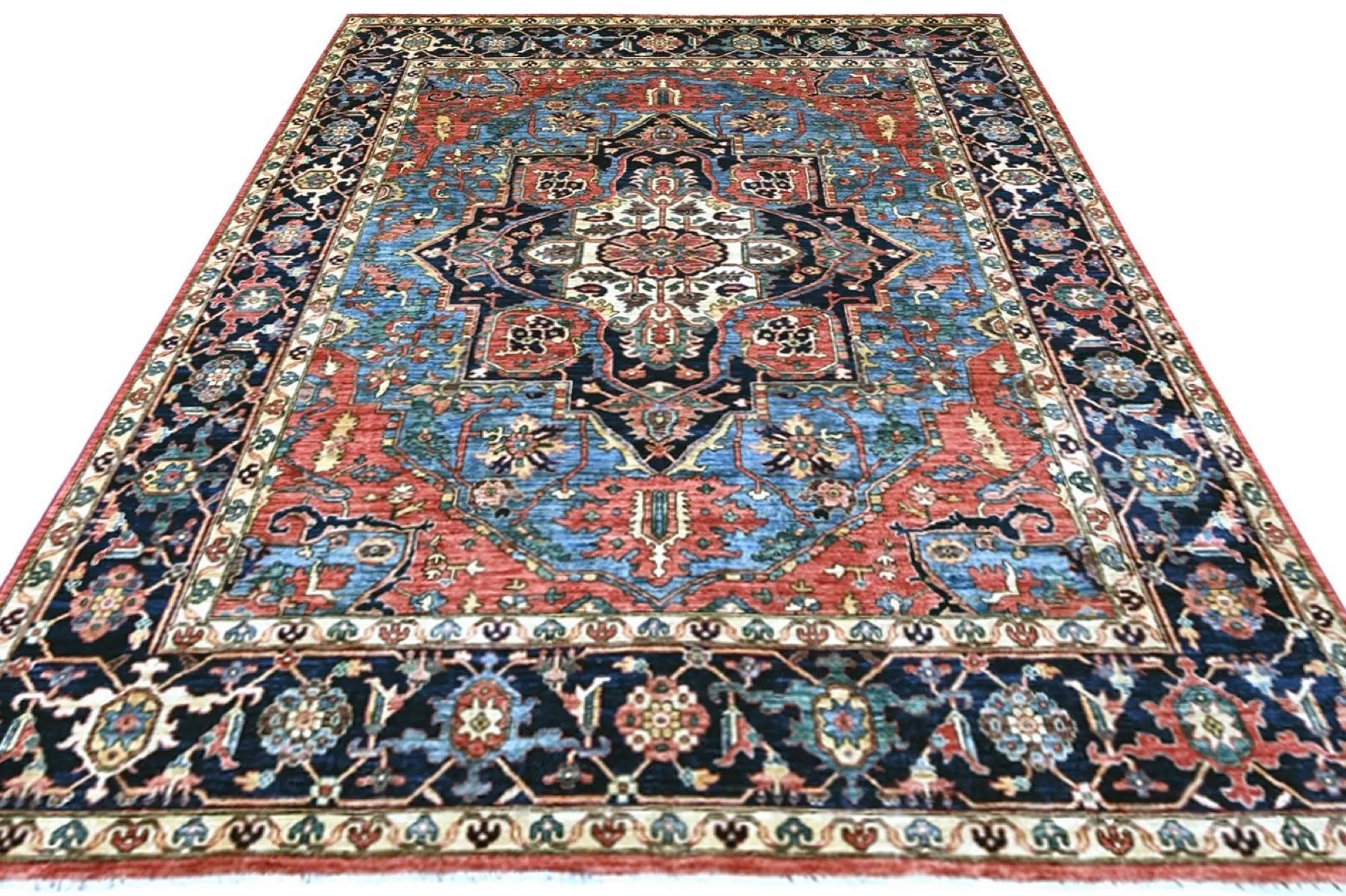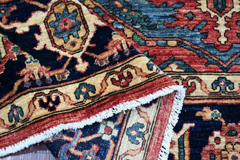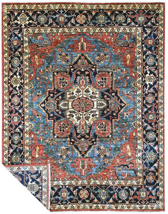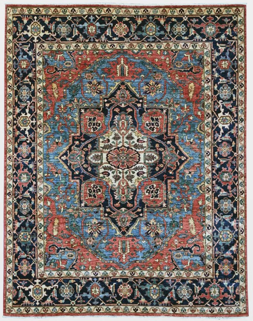 This exclusive rug is inspired by traditional Persian Heriz patterns, reinterpreted in a more modern, softer style with brighter and more uplifting colors. Each piece is hand-knotted in Afghanistan using hand-spun wool and 100% natural vegetable dyes, giving the rug outstanding durability and a beautiful organic sheen. While classic Heriz rugs are known for bold geometric shapes and strong medallion designs, this modern interpretation features a calmer, more contemporary layout that blends effortlessly into both classic and modern interiors. If you're looking for a hand-knotted Heriz rug, a luxury oriental rug, or a rug dyed with authentic vegetable colors, this Afghan-knotted Heriz design is an exceptional choice- a refined artwork that elevates any space.