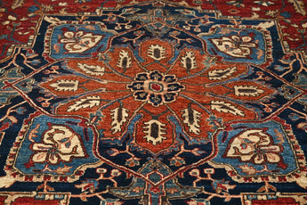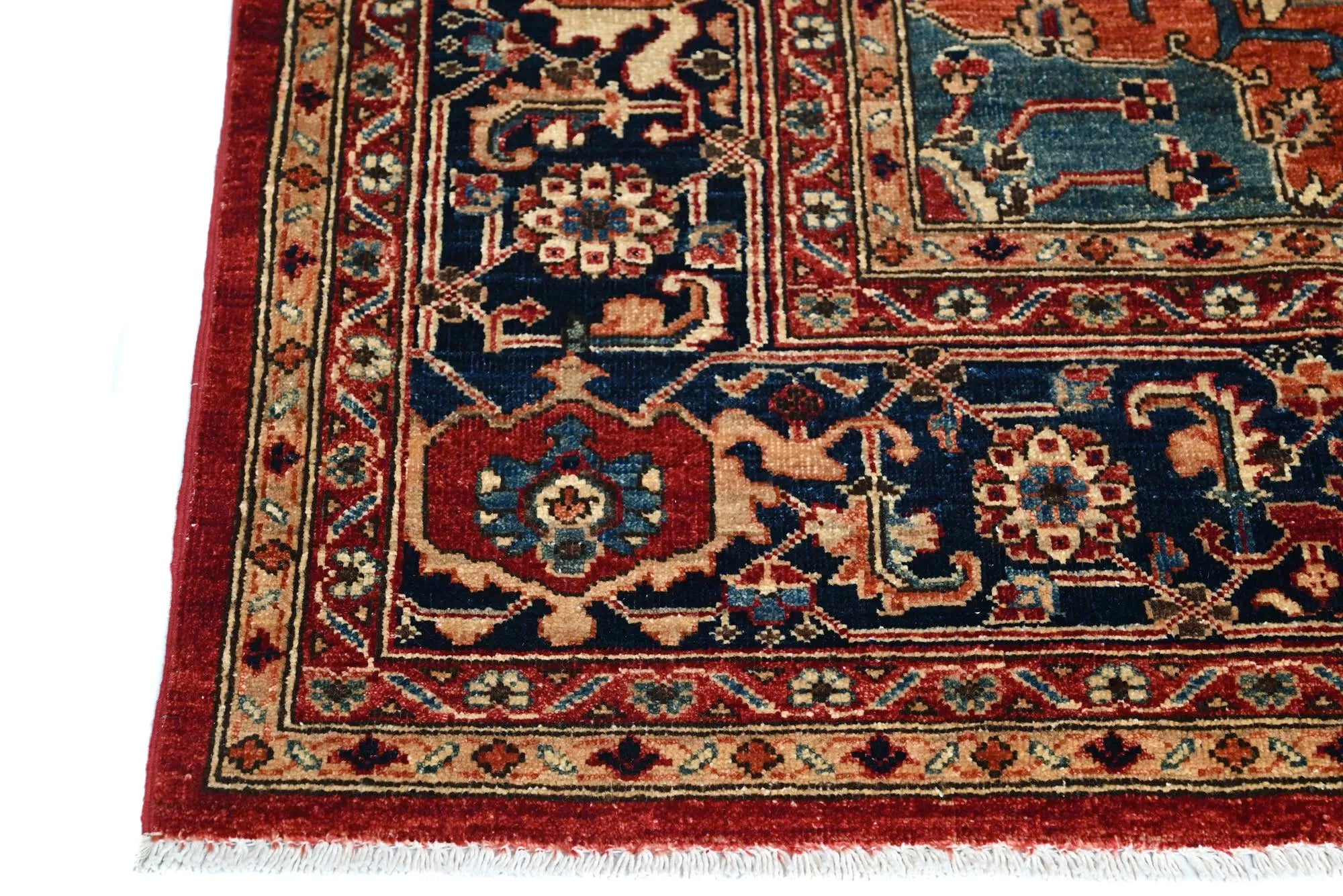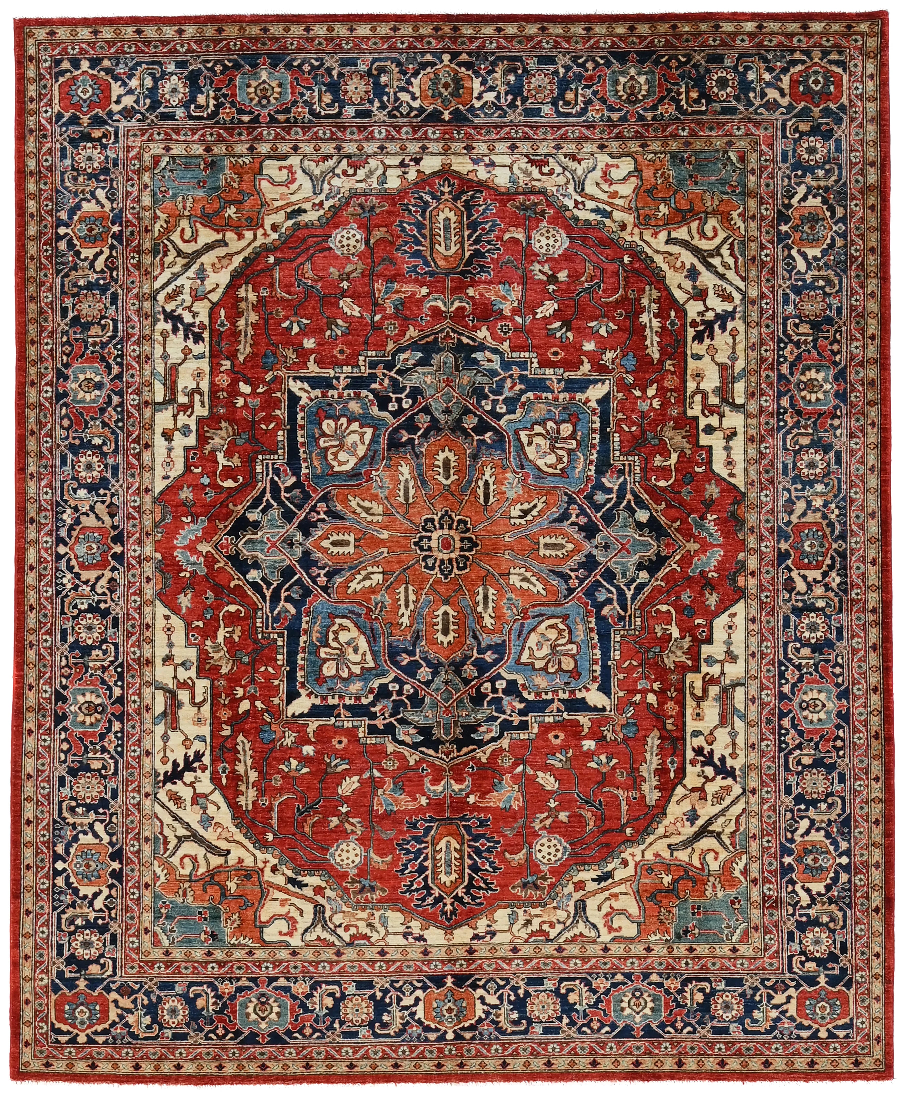 This exclusive rug is inspired by traditional Persian Heriz patterns, reinterpreted in a more modern, softer style with brighter and more uplifting colors. Each piece is hand-knotted in Afghanistan using hand-spun wool and 100% natural vegetable dyes, giving the rug outstanding durability and a beautiful organic sheen. While classic Heriz rugs are known for bold geometric shapes and strong medallion designs, this modern interpretation features a calmer, more contemporary layout that blends effortlessly into both classic and modern interiors. If you're looking for a hand-knotted Heriz rug, a luxury oriental rug, or a rug dyed with authentic vegetable colors, this Afghan-knotted Heriz design is an exceptional choice- a refined artwork that elevates any space.