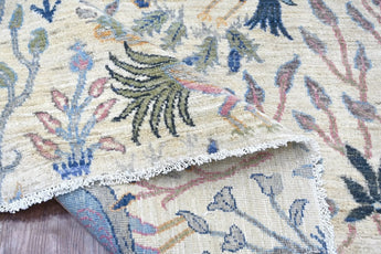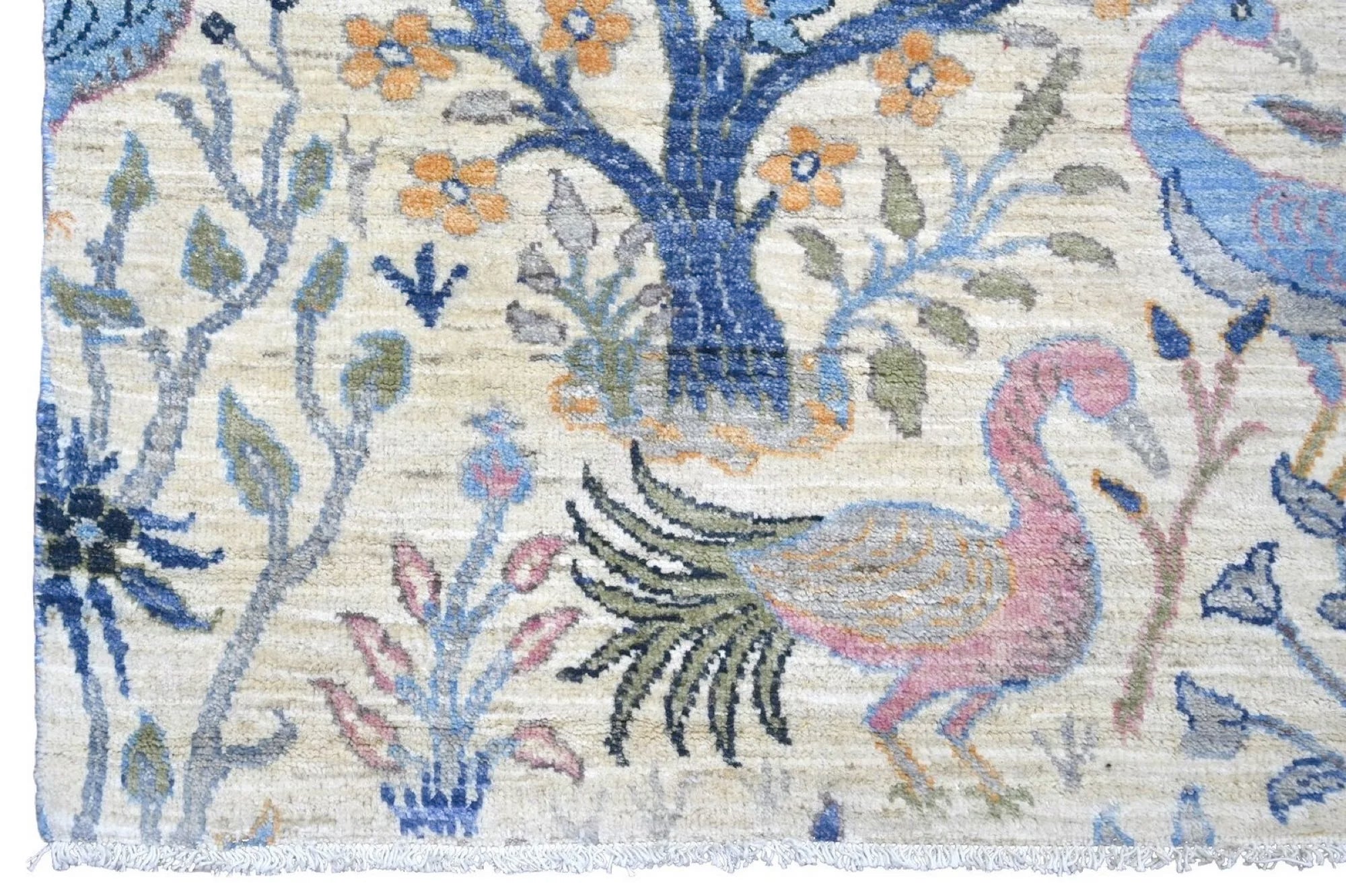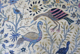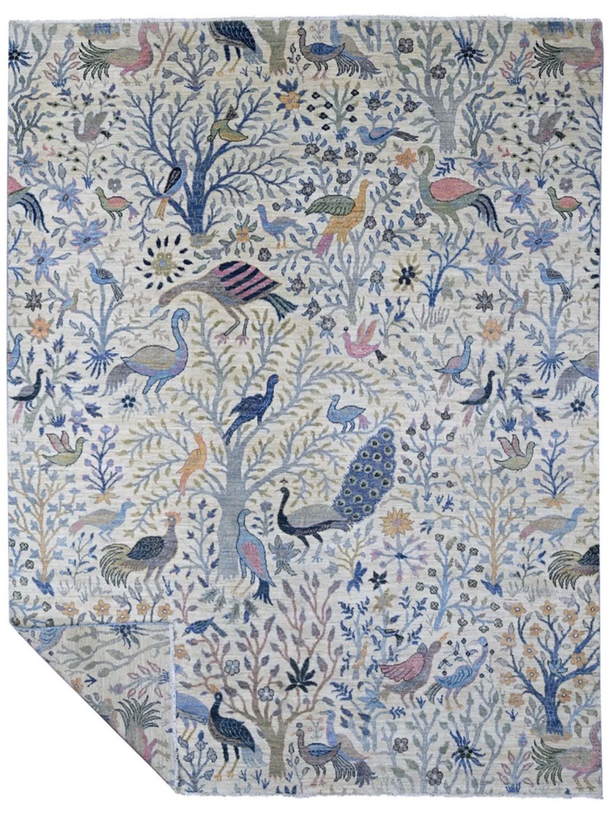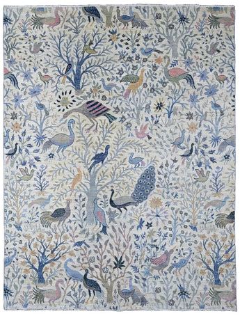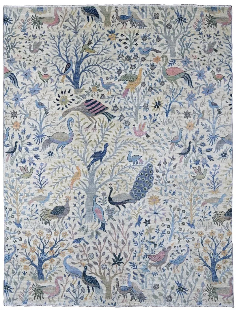 Nirvana is an extraordinary hand-knotted rug that blends traditional oriental weaving heritage with the poetic beauty of nature. Inspired by the classical Khorjin style, this masterpiece introduces a fresh interpretation where birds, foliage, and natural motifs create a harmonious, lively pattern across the entire rug. Every detail is crafted with artistic precision, giving the piece depth, rhythm, and movement. Woven from 100% hand-spun wool and dyed exclusively with natural vegetable dyes, Nirvana offers a rich, vibrant color palette that feels both joyful and timeless. The natural sheen of the wool enhances the colors beautifully under different lighting conditions, turning the rug into a true statement piece. This rug is not just décor -it is a textile artwork that brings warmth, character, and a sense of balance into any home. For those seeking a unique, soulful, and expressive rug with deep craftsmanship and artistic flair, Nirvana is the perfect choice.