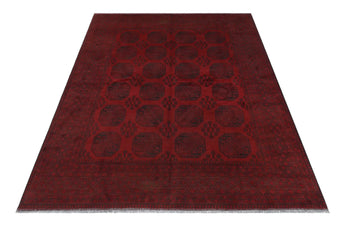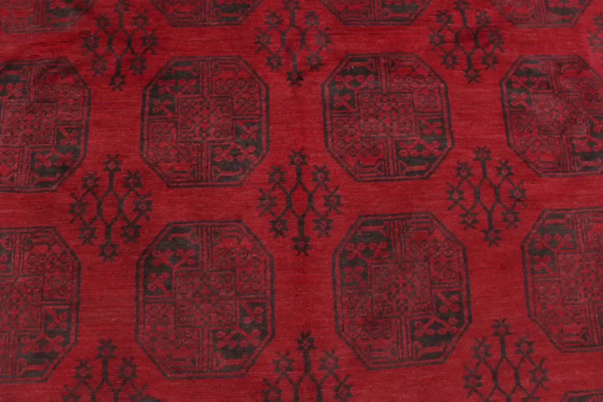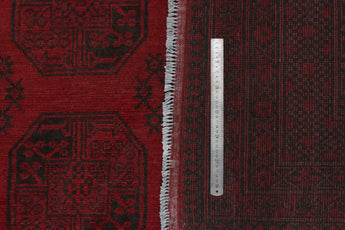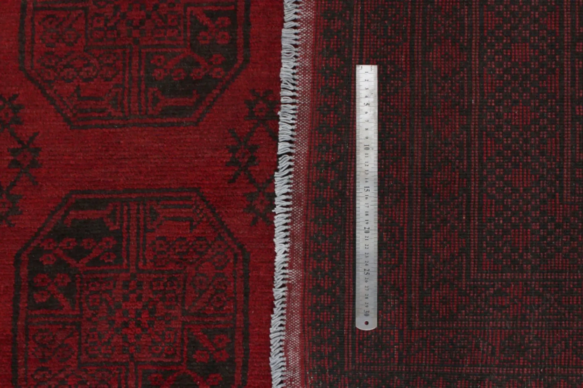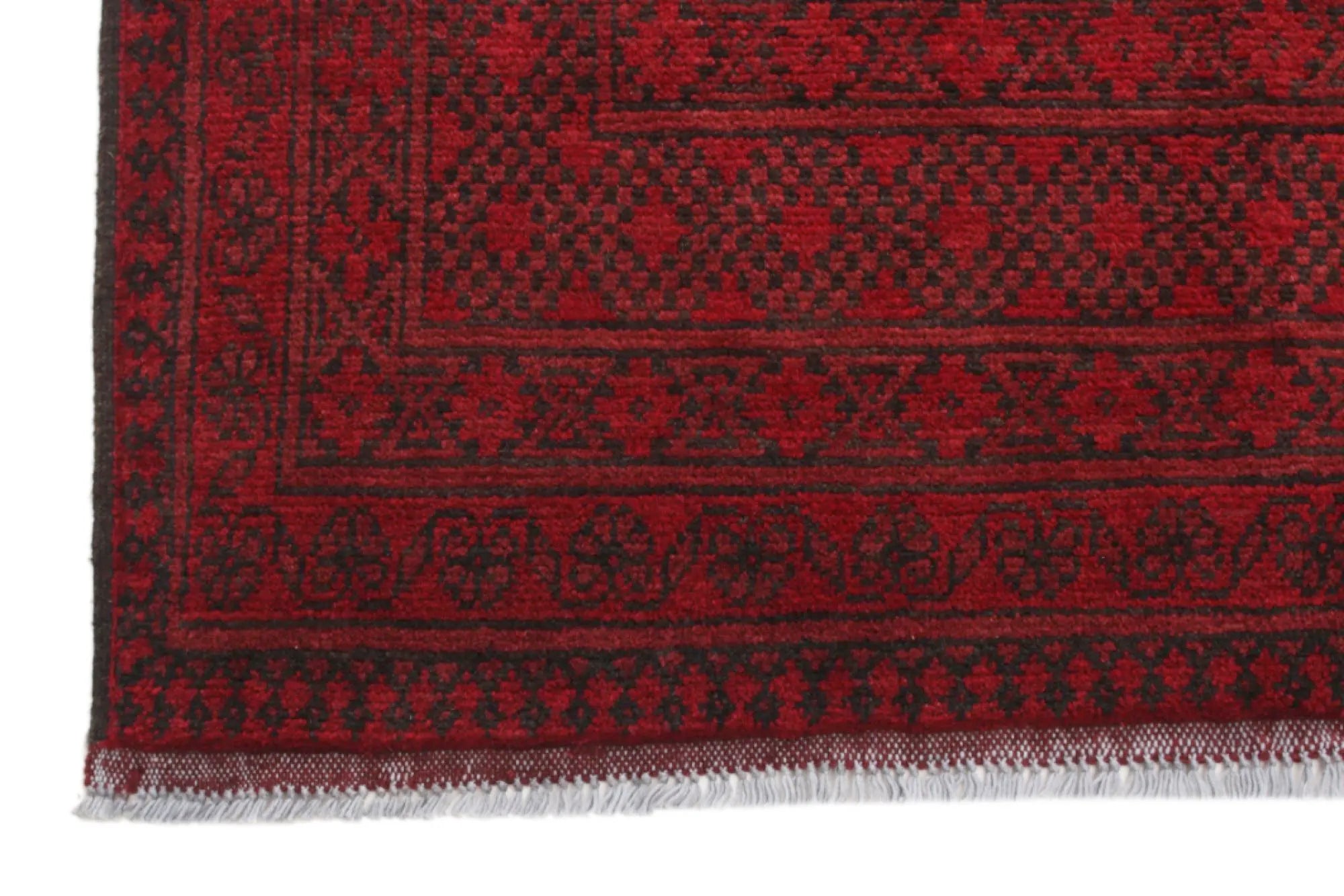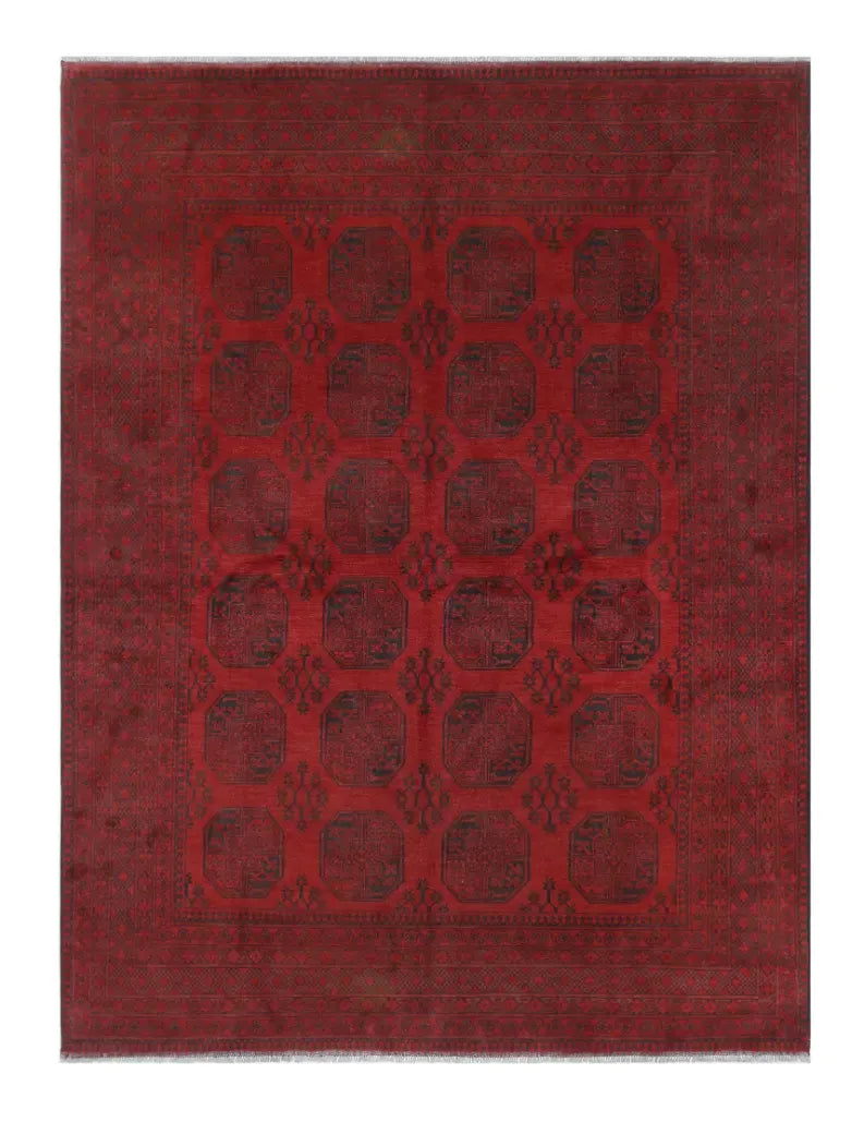 Discover this exquisite hand-knotted Akche rug from Afghanistan, crafted in rich, deep red and black tones that bring warmth and elegance to any interior. Made from 100% pure wool, including the fringes, it contains no synthetic materials, giving it a naturally soft, durable, and authentic feel. The traditional “elephant foot” motif, characteristic of Akche rugs, adds a timeless and culturally rich expression. A perfect choice for anyone seeking a rug that unites craftsmanship, character, and classic oriental beauty.