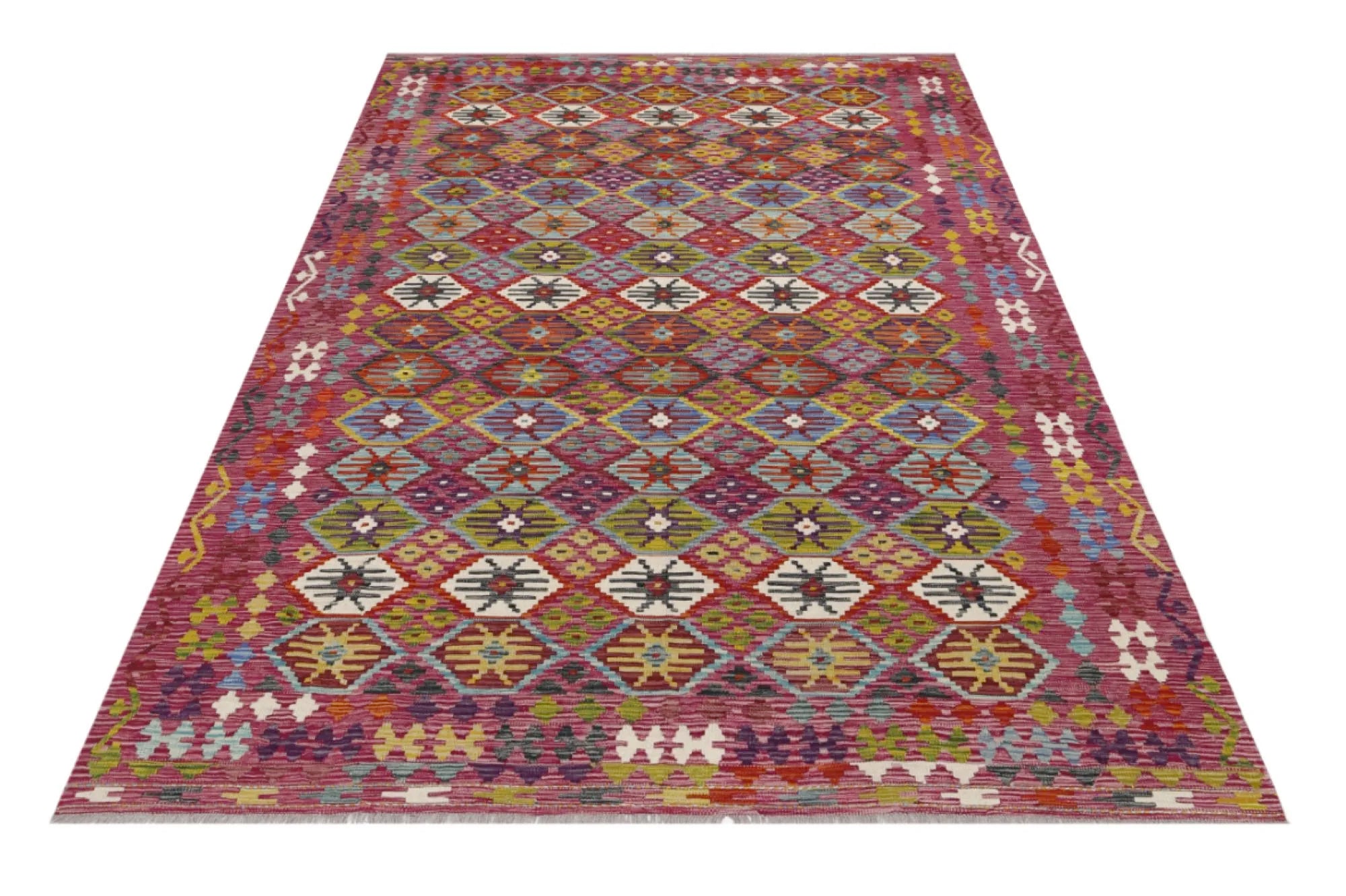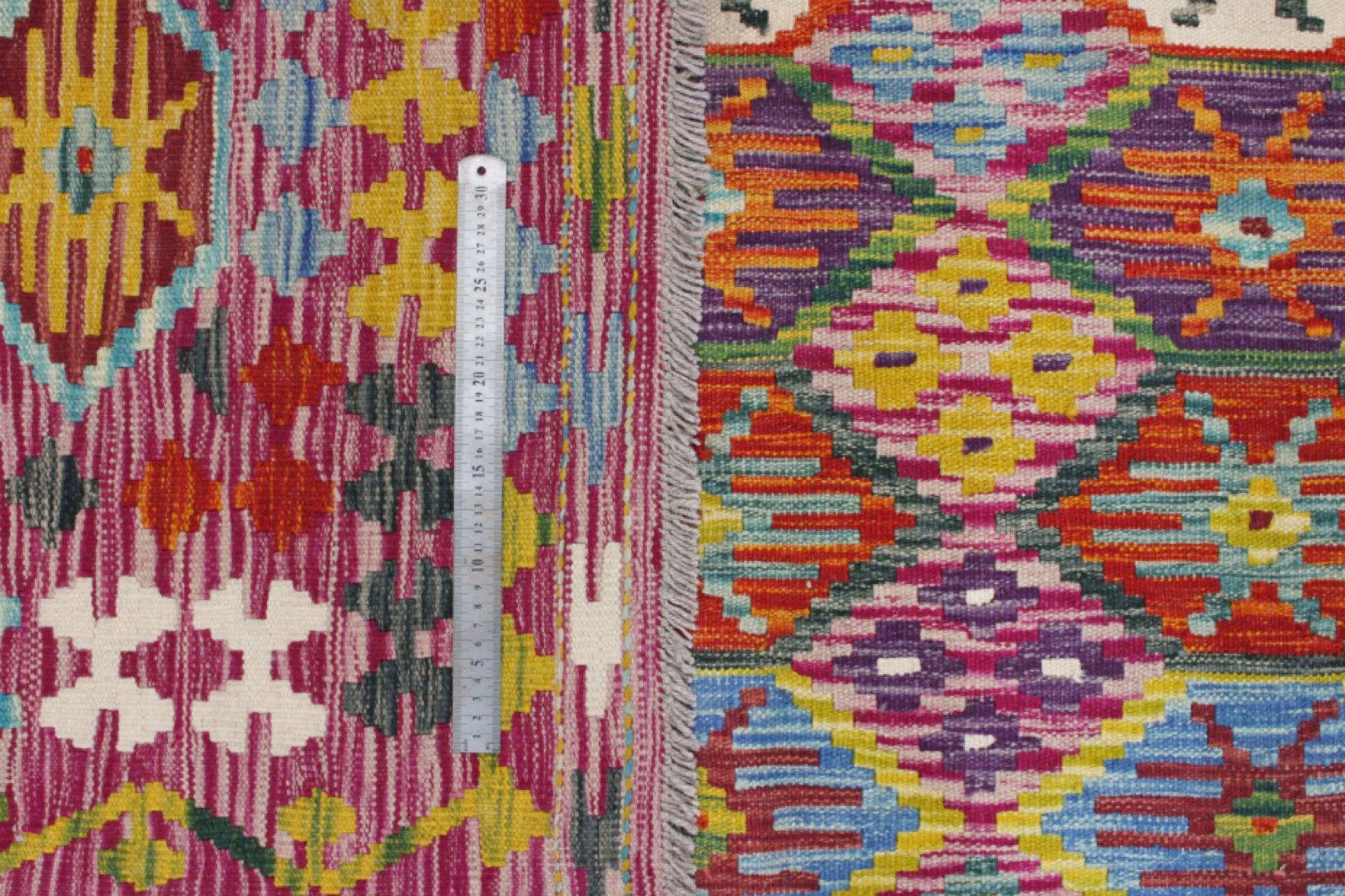 A Masterpiece of Afghan Craftsmanship with Caucasian Inspiration. Kelim Chobi rugs are a brilliant e x ample of traditional Afghan craftsmanship, combining both quality and aesthetic finesse. These rugs are uniquely handwoven in Afghanistan and carry a rich history of craftsmanship, where traditional techniques have been passed down through generations. What makes Kelim Chobi rugs particularly remarkable is their distinct design, heavily influenced by Caucasian patterns. The geometric shapes and symmetrical patterns, typical of Caucasian rugs, give Kelim Chobi rugs their unique and timeless character. The colors used in Kelim Chobi rugs are often subdued and natural, providing them with an elegant and sophisticated look. These colors are derived from natural dyes, which not only provide a durable and authentic color palette but also reflect a deep respect for nature and traditional methods. Each Kelim Chobi rug is handwoven with the utmost care and precision, ensuring high quality and durability. The rugs are flat-woven, giving them a smooth surface and making them both practical and easy to maintain. Thanks to their combination of Afghan craftsmanship and Caucasian design, Kelim Chobi rugs are a popular choice for those looking for a beautiful and timeless decorative element that can enhance any room. These rugs are not only practical floor coverings but also artworks that tell a story of tradition and culture. If you are looking for a rug that combines traditional craftsmanship with stylish design, Kelim Chobi rugs are an e x cellent choice. Their timeless beauty and durable quality make them a perfect investment for your home.