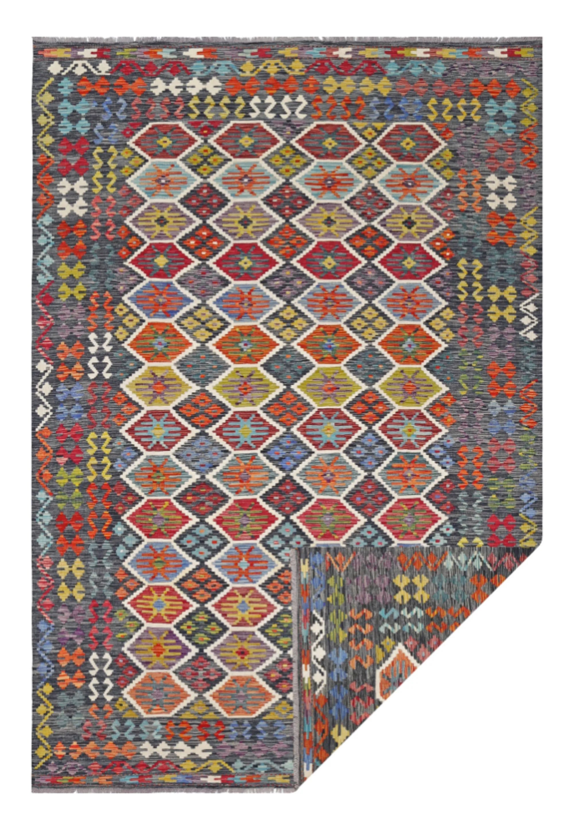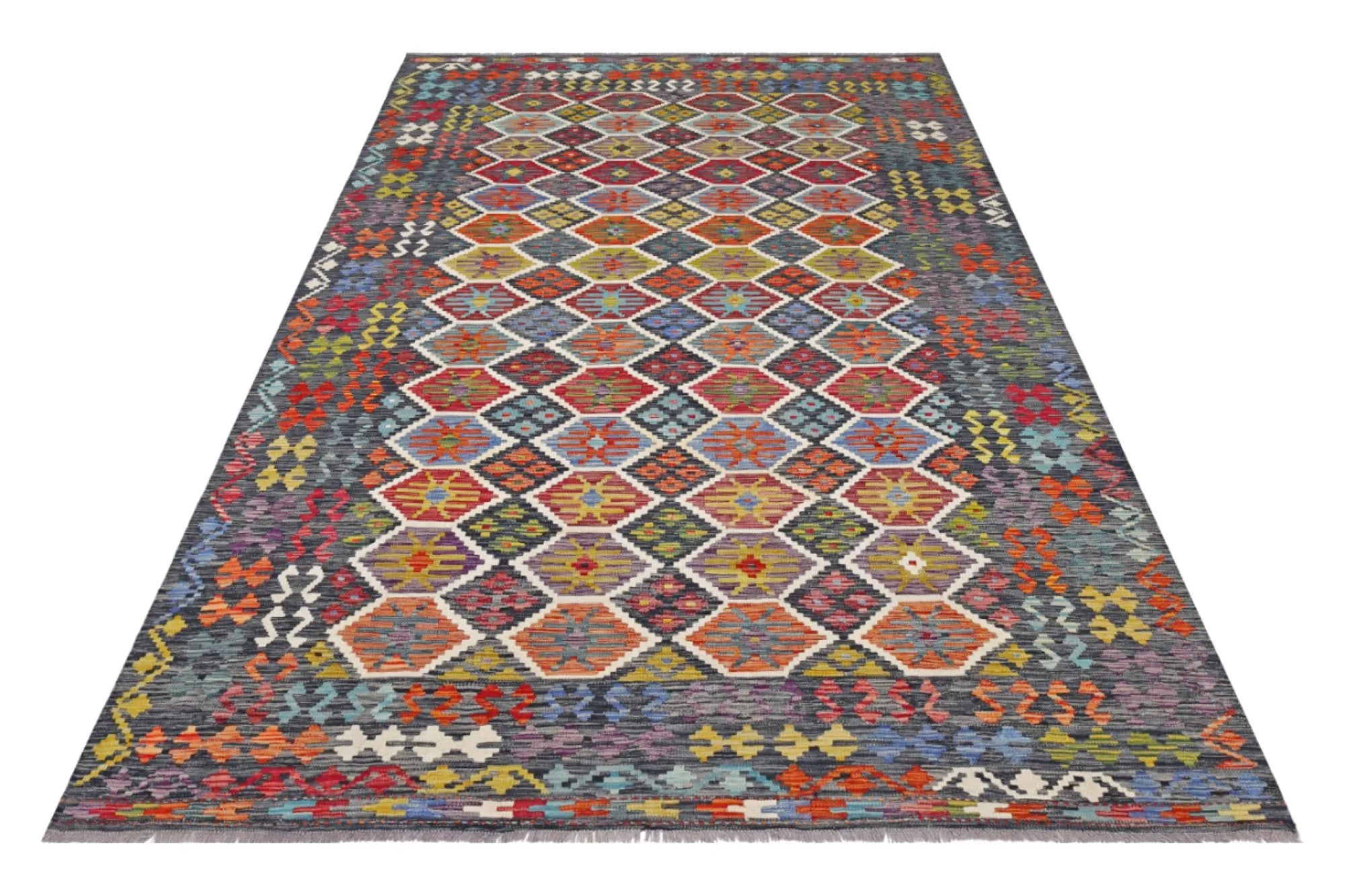 A Masterpiece of Afghan Craftsmanship with Caucasian Inspiration. Kelim Chobi rugs are a brilliant e x ample of traditional Afghan craftsmanship, combining both quality and aesthetic finesse. These rugs are uniquely handwoven in Afghanistan and carry a rich history of craftsmanship, where traditional techniques have been passed down through generations. What makes Kelim Chobi rugs particularly remarkable is their distinct design, heavily influenced by Caucasian patterns. The geometric shapes and symmetrical patterns, typical of Caucasian rugs, give Kelim Chobi rugs their unique and timeless character. The colors used in Kelim Chobi rugs are often subdued and natural, providing them with an elegant and sophisticated look. These colors are derived from natural dyes, which not only provide a durable and authentic color palette but also reflect a deep respect for nature and traditional methods. Each Kelim Chobi rug is handwoven with the utmost care and precision, ensuring high quality and durability. The rugs are flat-woven, giving them a smooth surface and making them both practical and easy to maintain. Thanks to their combination of Afghan craftsmanship and Caucasian design, Kelim Chobi rugs are a popular choice for those looking for a beautiful and timeless decorative element that can enhance any room. These rugs are not only practical floor coverings but also artworks that tell a story of tradition and culture. If you are looking for a rug that combines traditional craftsmanship with stylish design, Kelim Chobi rugs are an e x cellent choice. Their timeless beauty and durable quality make them a perfect investment for your home.