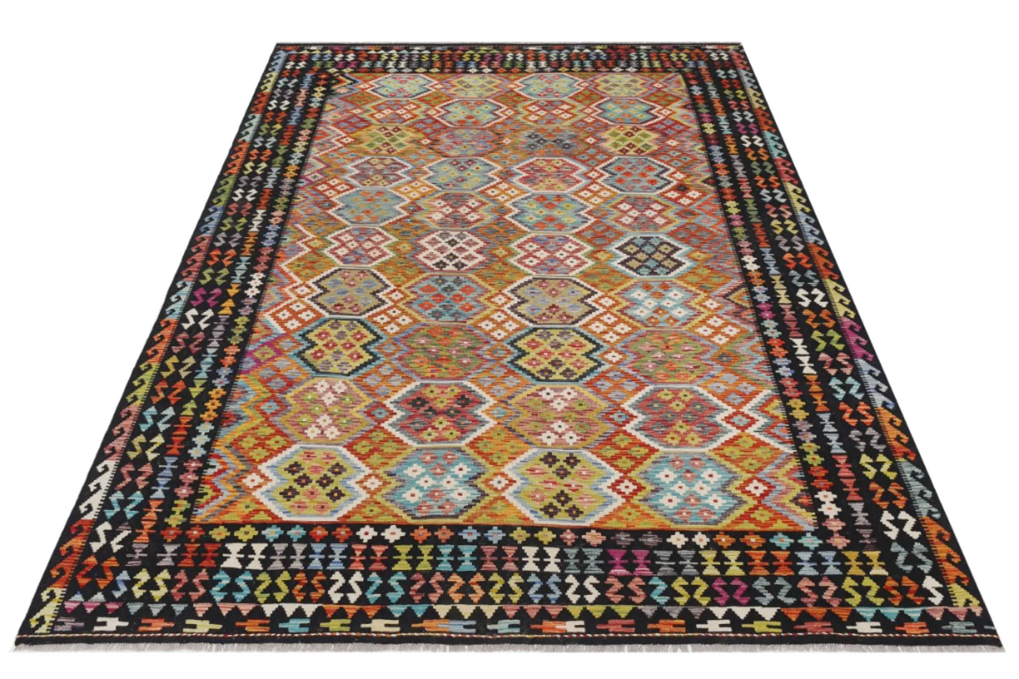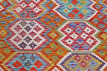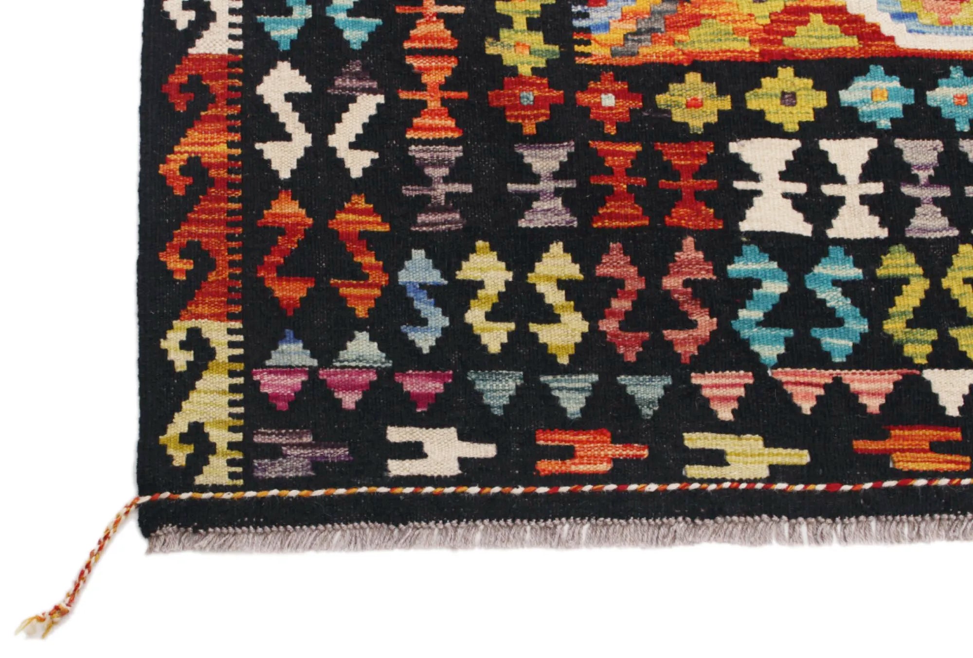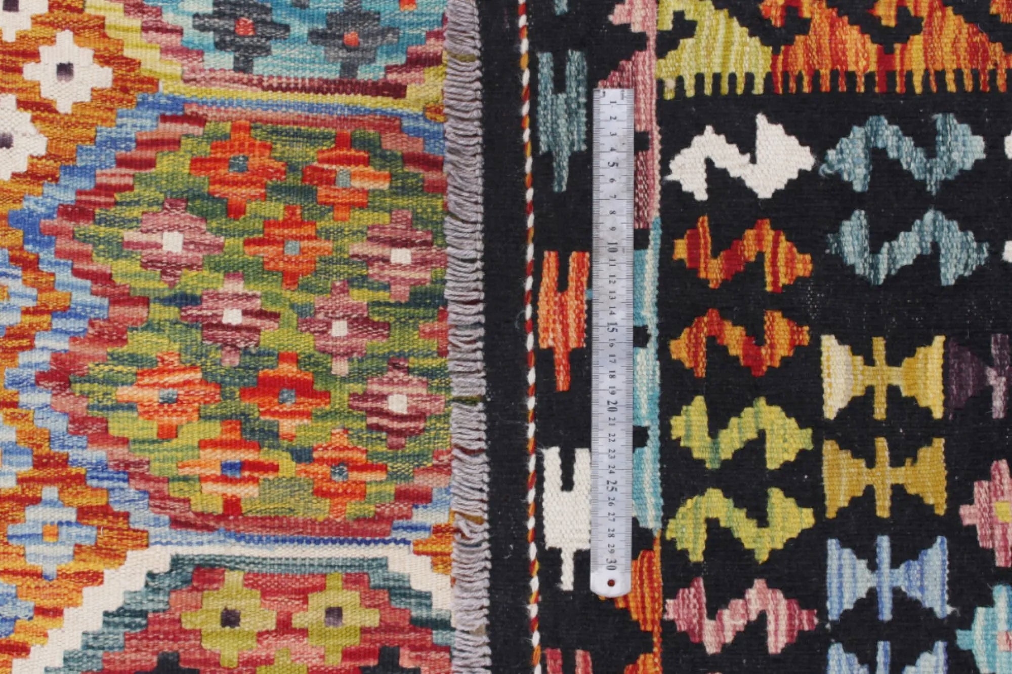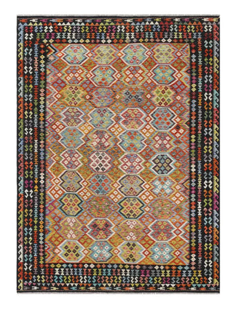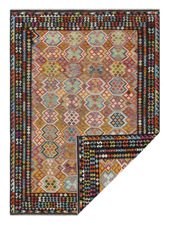 A Masterpiece of Afghan Craftsmanship with Caucasian Inspiration. Kelim Chobi rugs are a brilliant e x ample of traditional Afghan craftsmanship, combining both quality and aesthetic finesse. These rugs are uniquely handwoven in Afghanistan and carry a rich history of craftsmanship, where traditional techniques have been passed down through generations. What makes Kelim Chobi rugs particularly remarkable is their distinct design, heavily influenced by Caucasian patterns. The geometric shapes and symmetrical patterns, typical of Caucasian rugs, give Kelim Chobi rugs their unique and timeless character. The colors used in Kelim Chobi rugs are often subdued and natural, providing them with an elegant and sophisticated look. These colors are derived from natural dyes, which not only provide a durable and authentic color palette but also reflect a deep respect for nature and traditional methods. Each Kelim Chobi rug is handwoven with the utmost care and precision, ensuring high quality and durability. The rugs are flat-woven, giving them a smooth surface and making them both practical and easy to maintain. Thanks to their combination of Afghan craftsmanship and Caucasian design, Kelim Chobi rugs are a popular choice for those looking for a beautiful and timeless decorative element that can enhance any room. These rugs are not only practical floor coverings but also artworks that tell a story of tradition and culture. If you are looking for a rug that combines traditional craftsmanship with stylish design, Kelim Chobi rugs are an e x cellent choice. Their timeless beauty and durable quality make them a perfect investment for your home.