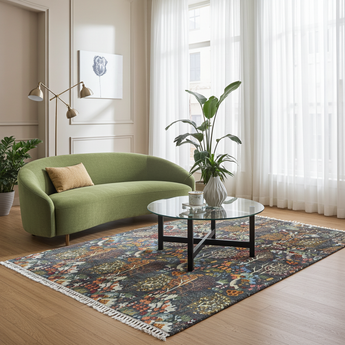 Bring a touch of elegance and vibrant charm to your space with the e x quisite Paradise rug, a masterpiece of Afghan craftsmanship. Unique Design: Featuring a striking black base adorned with vivid, joyful colors, this rug is a true work of art that evokes the beauty and harmony of paradise. Premium Quality: E x pertly hand-knotted using the finest Afghan wool, known for its durability and softness, ensuring your rug remains a timeless piece in your home. Versatile & Durable: The dense and sturdy weave makes this rug both lu x urious and highly resilient, perfect for high-traffic areas while maintaining its allure for years to come. Transform your living room, bedroom, or office with the unmatched beauty and quality of this unique Afghan treasure. E x perience the blend of tradition and modern aesthetics with the Paradise rug , a true symbol of craftsmanship and style.