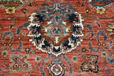 This exclusive rug is inspired by traditional Persian Heriz patterns, reinterpreted in a more modern, softer style with brighter and more uplifting colors. Each piece is hand-knotted in Afghanistan using hand-spun wool and 100% natural vegetable dyes, giving the rug outstanding durability and a beautiful organic sheen. While classic Heriz rugs are known for bold geometric shapes and strong medallion designs, this modern interpretation features a calmer, more contemporary layout that blends effortlessly into both classic and modern interiors. If you're looking for a hand-knotted Heriz rug, a luxury oriental rug, or a rug dyed with authentic vegetable colors, this Afghan-knotted Heriz design is an exceptional choice- a refined artwork that elevates any space.