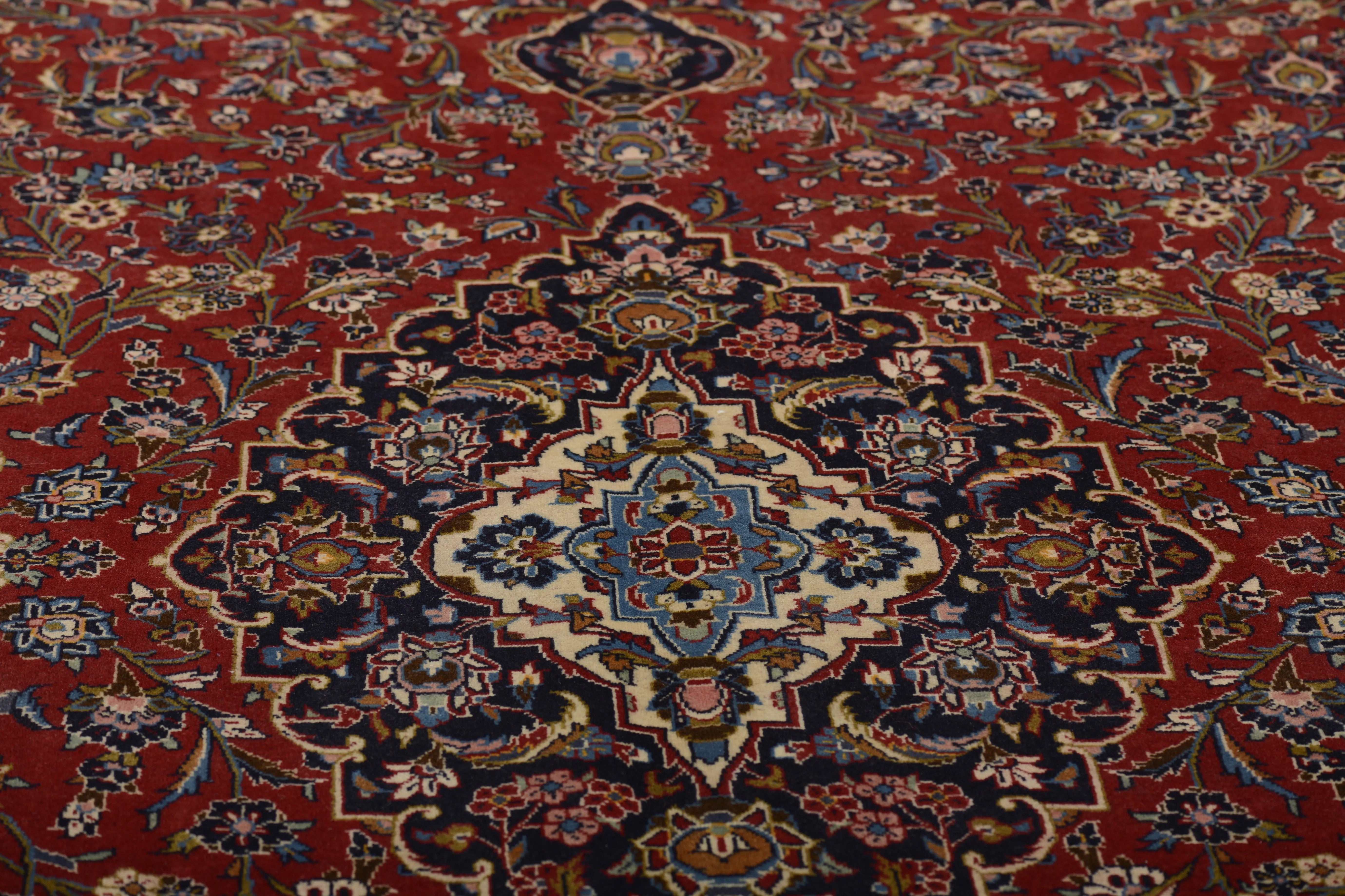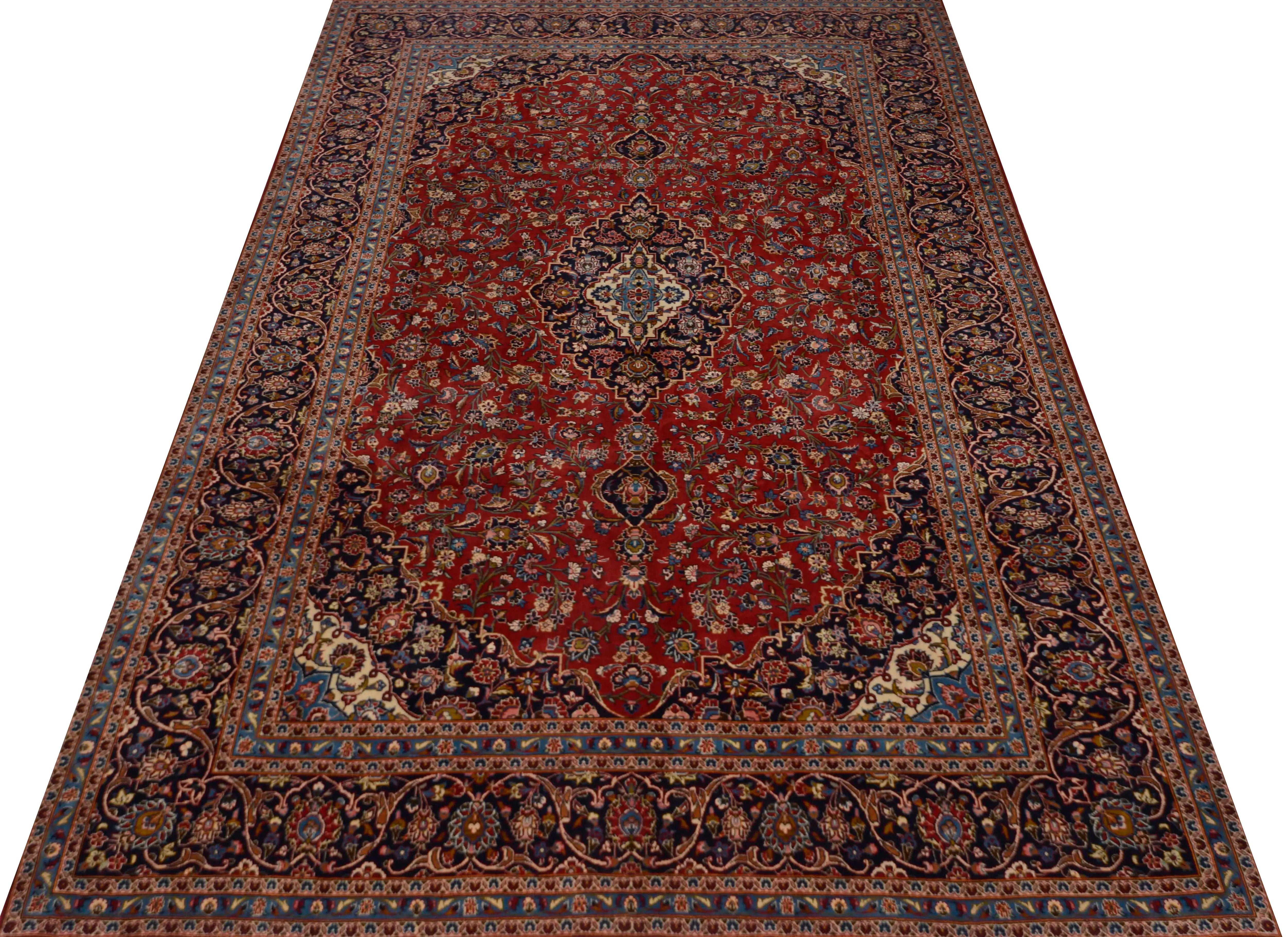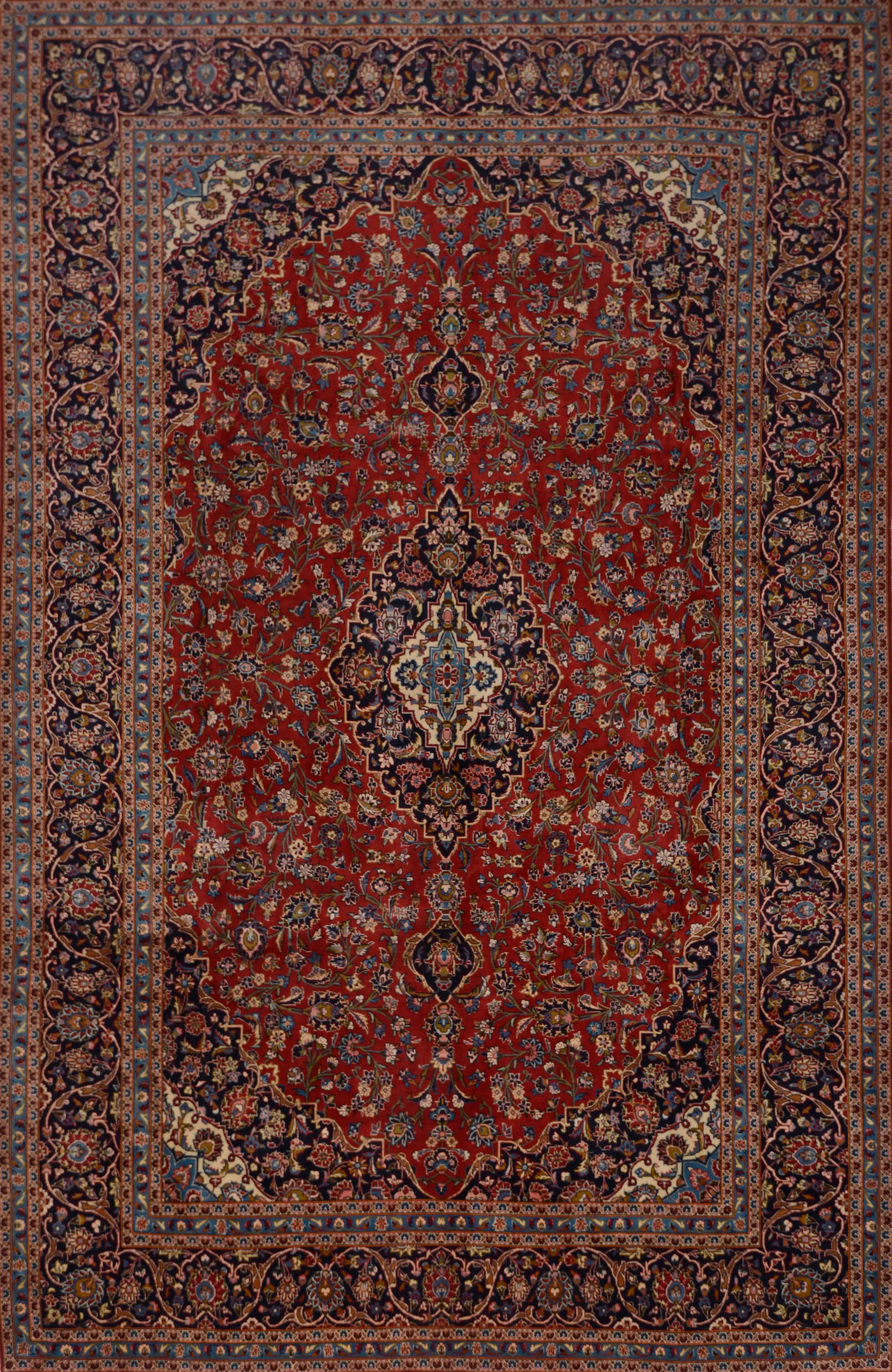 Kashan (or Keshan) rugs are truly an e x ample of the finest in Persian rug artistry. They offer a combination of beauty, durability, and cultural value. If you're considering purchasing a Kashan rug, you can be sure that you're investing in a piece of Iranian culture and history that will bring joy and beauty for many years to come. Kashan rugs are hand-knotted with great precision and adhere to traditional weaving techniques that have developed over centuries. The rugs are known for their high knot density and intricate details. Kashan rugs often feature comple x patterns including large central medallions, flowers, arabesques, and stylized plant motifs. The patterns are often symmetrical and have a harmonious design that reflects traditional Persian art. The most commonly used colors in Kashan rugs are red, blue, ivory, and beige. These colors are often combined to create a rich and contrasting palette. The colors are traditionally made with natural dyes, giving them their deep and lasting appearance. Most Kashan rugs are made from high-quality wool, which provides a soft and durable surface. Some of the more e x clusive ones may also contain silk to add e x tra luster and richness in detail. The base of the rugs is usually made of cotton, which provides stability and structure to the rug. Kashan rugs are known for their high knot density, which makes them dense and durable. This high knot density allows for the creation of very detailed patterns and contributes to the rug's longevity. Kashan rugs are available in a variety of sizes, from small prayer rugs to large room-sized rugs. They are popular both for home use and as decorative items in public spaces. Kashan rugs are an important part of Iran's cultural heritage and represent a long tradition of artistic e x pression and craftsmanship. They are often an e x pression of local culture and aesthetics and are considered a form of artwork. Many Kashan rugs have historically been made for royal courts and wealthy merchants, which marks them as symbols of lu x ury and status. They are still highly sought after both as collectibles and for decoration in e x clusive settings. Kashan rugs are often e x pensive due to their high quality and aesthetic value.