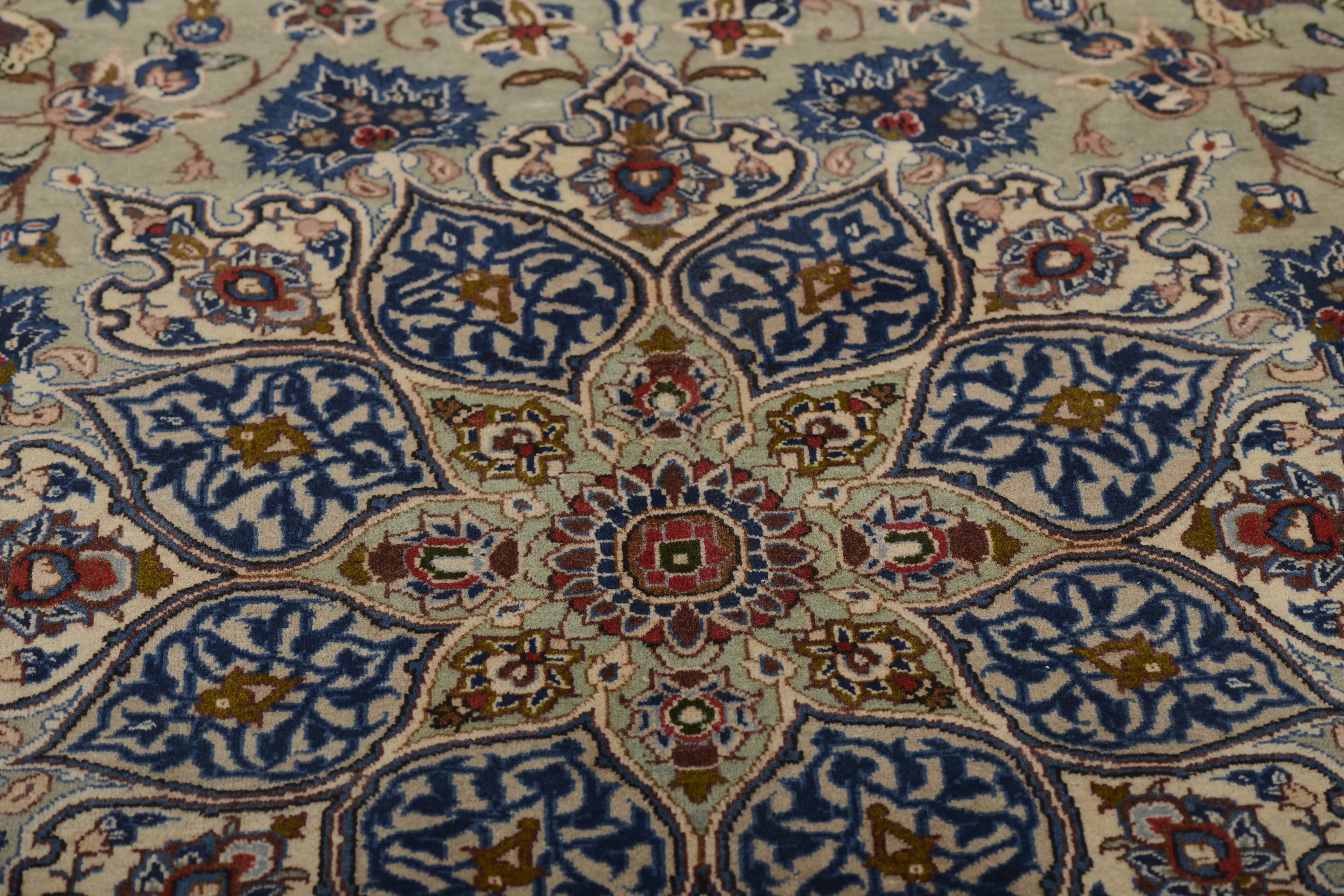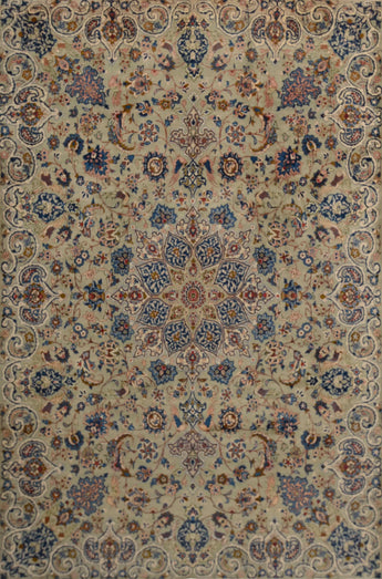 Kashan (or Keshan) rugs are truly an e x ample of the finest in Persian rug artistry. They offer a combination of beauty, durability, and cultural value. If you're considering purchasing a Kashan rug, you can be sure that you're investing in a piece of Iranian culture and history that will bring joy and beauty for many years to come. Kashan rugs are hand-knotted with great precision and adhere to traditional weaving techniques that have developed over centuries. The rugs are known for their high knot density and intricate details. Kashan rugs often feature comple x patterns including large central medallions, flowers, arabesques, and stylized plant motifs. The patterns are often symmetrical and have a harmonious design that reflects traditional Persian art. The most commonly used colors in Kashan rugs are red, blue, ivory, and beige. These colors are often combined to create a rich and contrasting palette. The colors are traditionally made with natural dyes, giving them their deep and lasting appearance. Most Kashan rugs are made from high-quality wool, which provides a soft and durable surface. Some of the more e x clusive ones may also contain silk to add e x tra luster and richness in detail. The base of the rugs is usually made of cotton, which provides stability and structure to the rug. Kashan rugs are known for their high knot density, which makes them dense and durable. This high knot density allows for the creation of very detailed patterns and contributes to the rug's longevity. Kashan rugs are available in a variety of sizes, from small prayer rugs to large room-sized rugs. They are popular both for home use and as decorative items in public spaces. Kashan rugs are an important part of Iran's cultural heritage and represent a long tradition of artistic e x pression and craftsmanship. They are often an e x pression of local culture and aesthetics and are considered a form of artwork. Many Kashan rugs have historically been made for royal courts and wealthy merchants, which marks them as symbols of lu x ury and status. They are still highly sought after both as collectibles and for decoration in e x clusive settings. Kashan rugs are often e x pensive due to their high quality and aesthetic value.