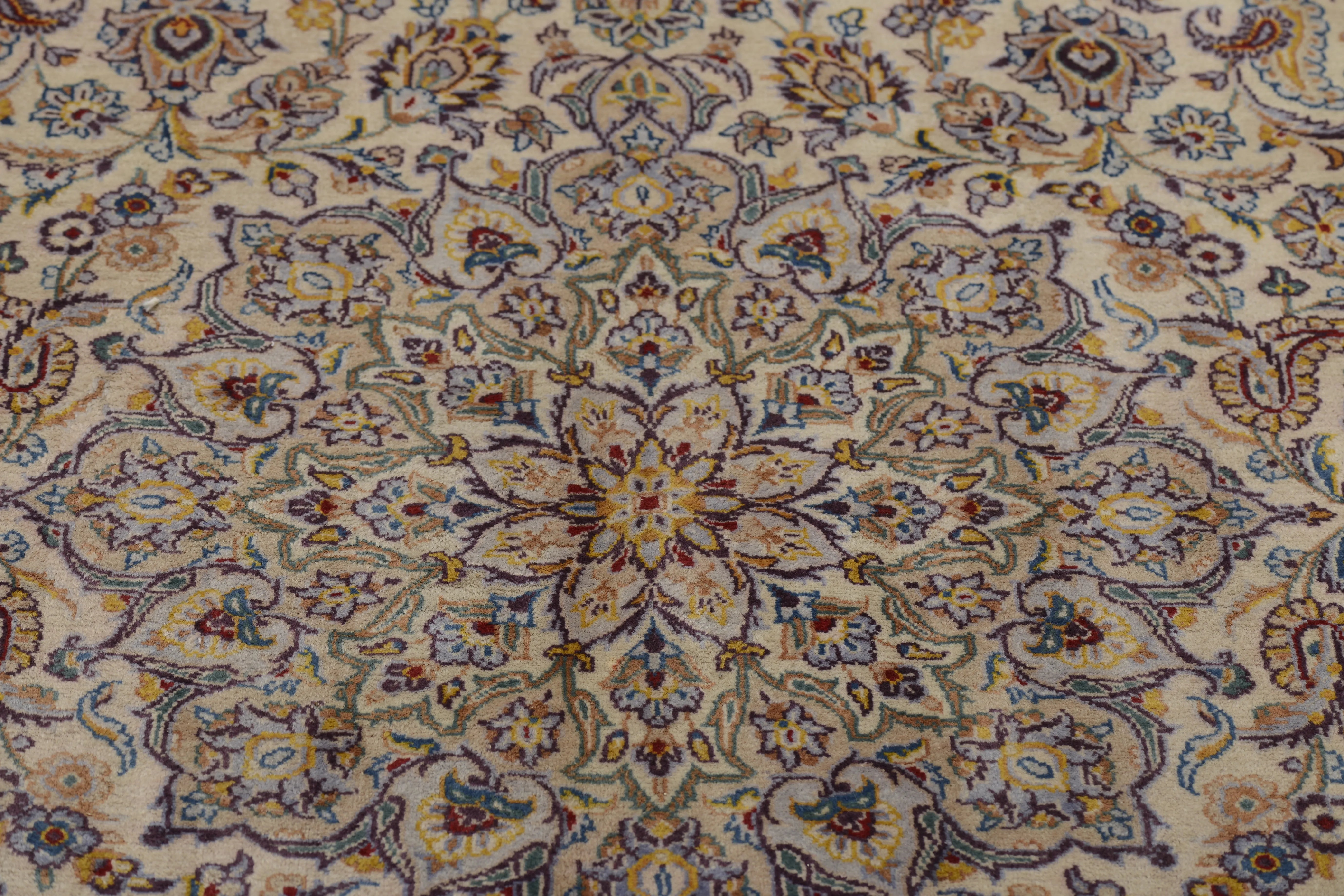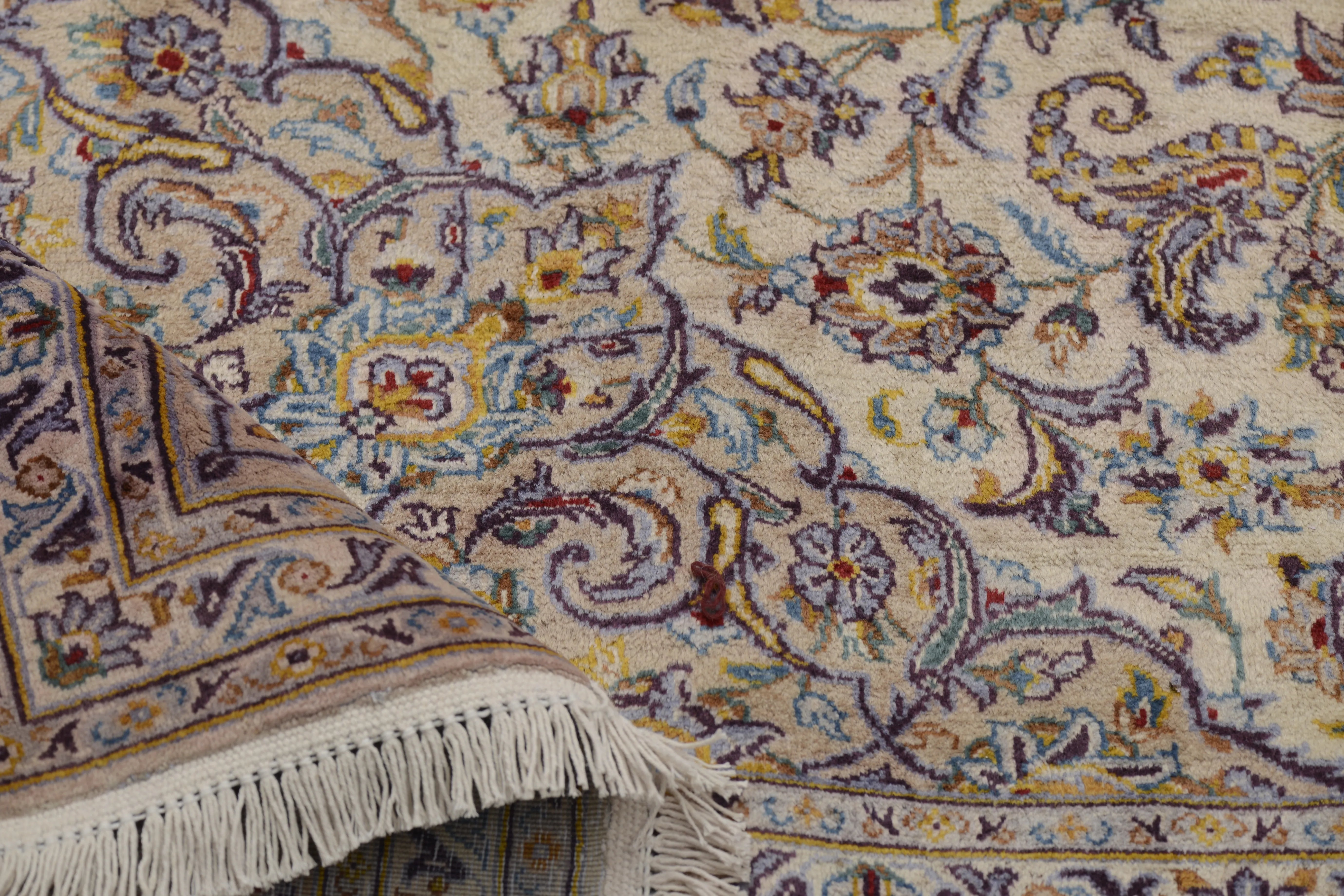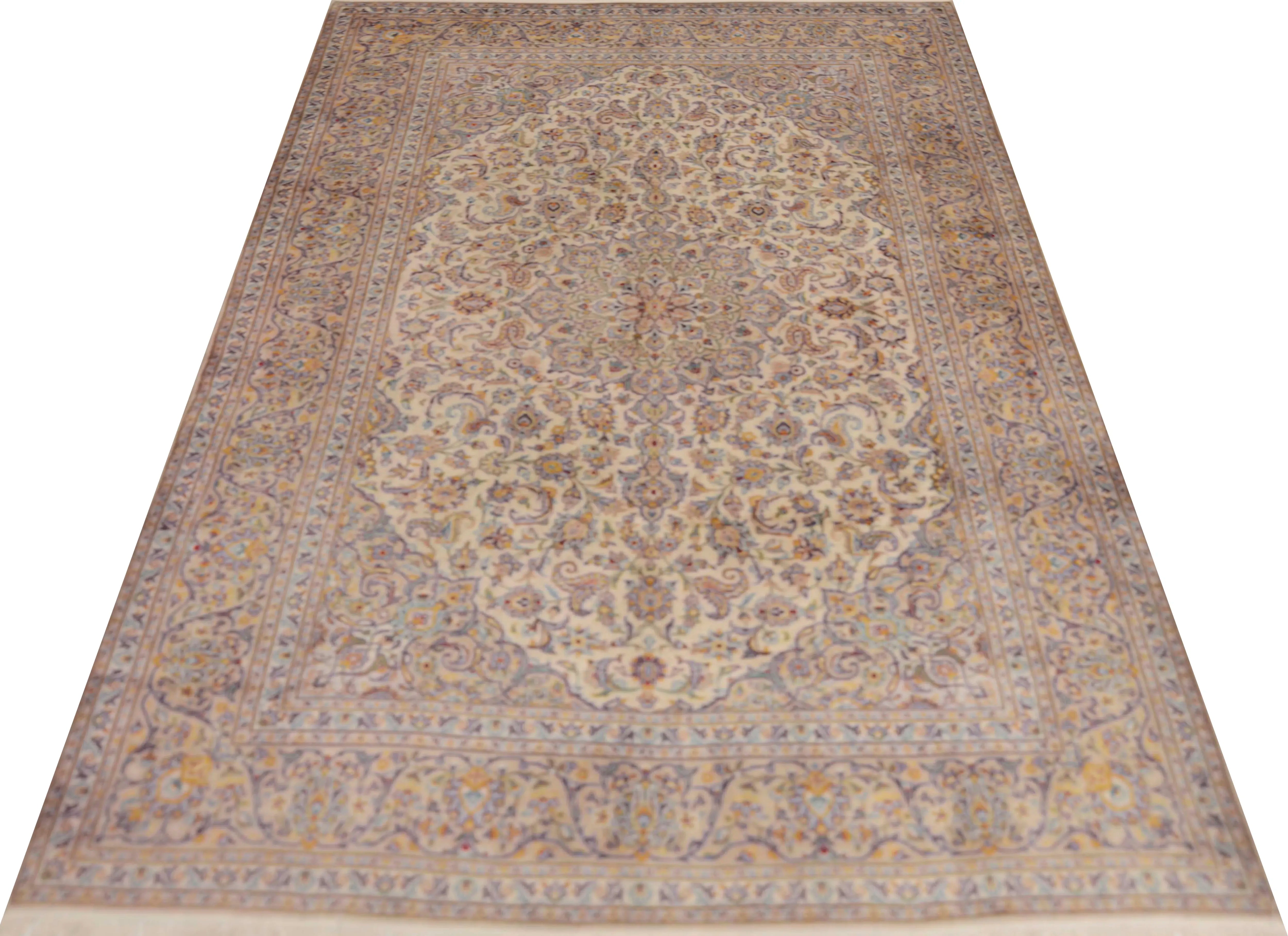 Kashan (or Keshan) rugs are truly an e x ample of the finest in Persian rug artistry. They offer a combination of beauty, durability, and cultural value. If you're considering purchasing a Kashan rug, you can be sure that you're investing in a piece of Iranian culture and history that will bring joy and beauty for many years to come. Kashan rugs are hand-knotted with great precision and adhere to traditional weaving techniques that have developed over centuries. The rugs are known for their high knot density and intricate details. Kashan rugs often feature comple x patterns including large central medallions, flowers, arabesques, and stylized plant motifs. The patterns are often symmetrical and have a harmonious design that reflects traditional Persian art. The most commonly used colors in Kashan rugs are red, blue, ivory, and beige. These colors are often combined to create a rich and contrasting palette. The colors are traditionally made with natural dyes, giving them their deep and lasting appearance. Most Kashan rugs are made from high-quality wool, which provides a soft and durable surface. Some of the more e x clusive ones may also contain silk to add e x tra luster and richness in detail. The base of the rugs is usually made of cotton, which provides stability and structure to the rug. Kashan rugs are known for their high knot density, which makes them dense and durable. This high knot density allows for the creation of very detailed patterns and contributes to the rug's longevity. Kashan rugs are available in a variety of sizes, from small prayer rugs to large room-sized rugs. They are popular both for home use and as decorative items in public spaces. Kashan rugs are an important part of Iran's cultural heritage and represent a long tradition of artistic e x pression and craftsmanship. They are often an e x pression of local culture and aesthetics and are considered a form of artwork. Many Kashan rugs have historically been made for royal courts and wealthy merchants, which marks them as symbols of lu x ury and status. They are still highly sought after both as collectibles and for decoration in e x clusive settings. Kashan rugs are often e x pensive due to their high quality and aesthetic value.