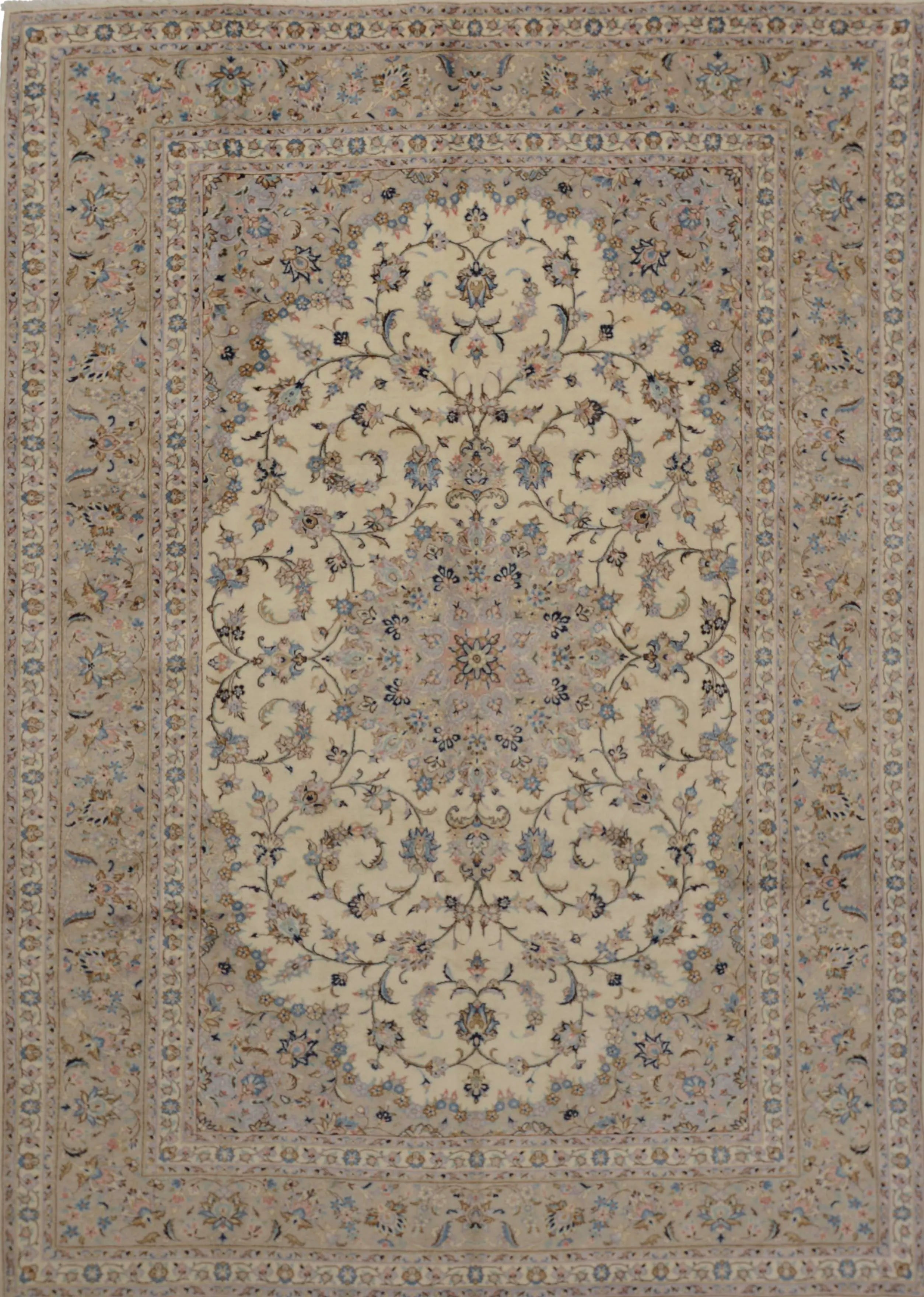 Kashan (or Keshan) rugs are truly an e x ample of the finest in Persian rug artistry. They offer a combination of beauty, durability, and cultural value. If you're considering purchasing a Kashan rug, you can be sure that you're investing in a piece of Iranian culture and history that will bring joy and beauty for many years to come. Kashan rugs are hand-knotted with great precision and adhere to traditional weaving techniques that have developed over centuries. The rugs are known for their high knot density and intricate details. Kashan rugs often feature comple x patterns including large central medallions, flowers, arabesques, and stylized plant motifs. The patterns are often symmetrical and have a harmonious design that reflects traditional Persian art. The most commonly used colors in Kashan rugs are red, blue, ivory, and beige. These colors are often combined to create a rich and contrasting palette. The colors are traditionally made with natural dyes, giving them their deep and lasting appearance. Most Kashan rugs are made from high-quality wool, which provides a soft and durable surface. Some of the more e x clusive ones may also contain silk to add e x tra luster and richness in detail. The base of the rugs is usually made of cotton, which provides stability and structure to the rug. Kashan rugs are known for their high knot density, which makes them dense and durable. This high knot density allows for the creation of very detailed patterns and contributes to the rug's longevity. Kashan rugs are available in a variety of sizes, from small prayer rugs to large room-sized rugs. They are popular both for home use and as decorative items in public spaces. Kashan rugs are an important part of Iran's cultural heritage and represent a long tradition of artistic e x pression and craftsmanship. They are often an e x pression of local culture and aesthetics and are considered a form of artwork. Many Kashan rugs have historically been made for royal courts and wealthy merchants, which marks them as symbols of lu x ury and status. They are still highly sought after both as collectibles and for decoration in e x clusive settings. Kashan rugs are often e x pensive due to their high quality and aesthetic value.