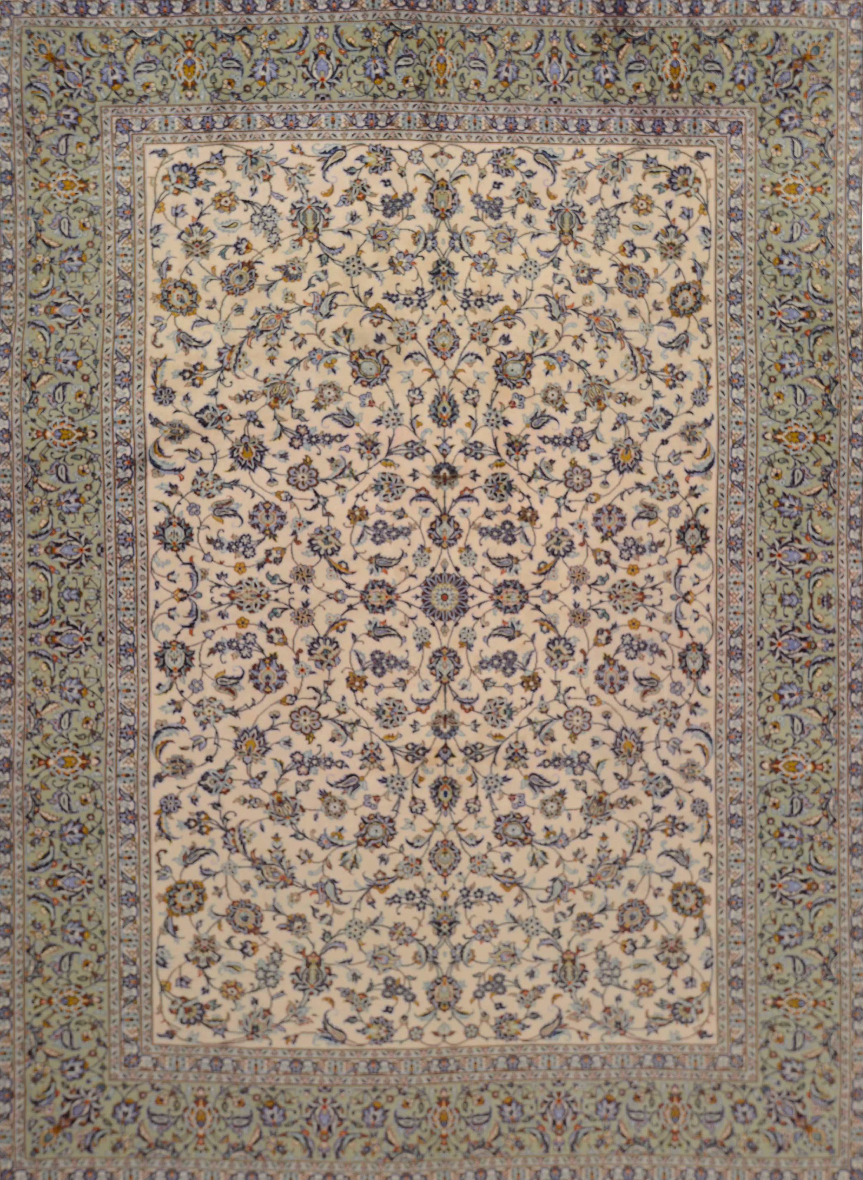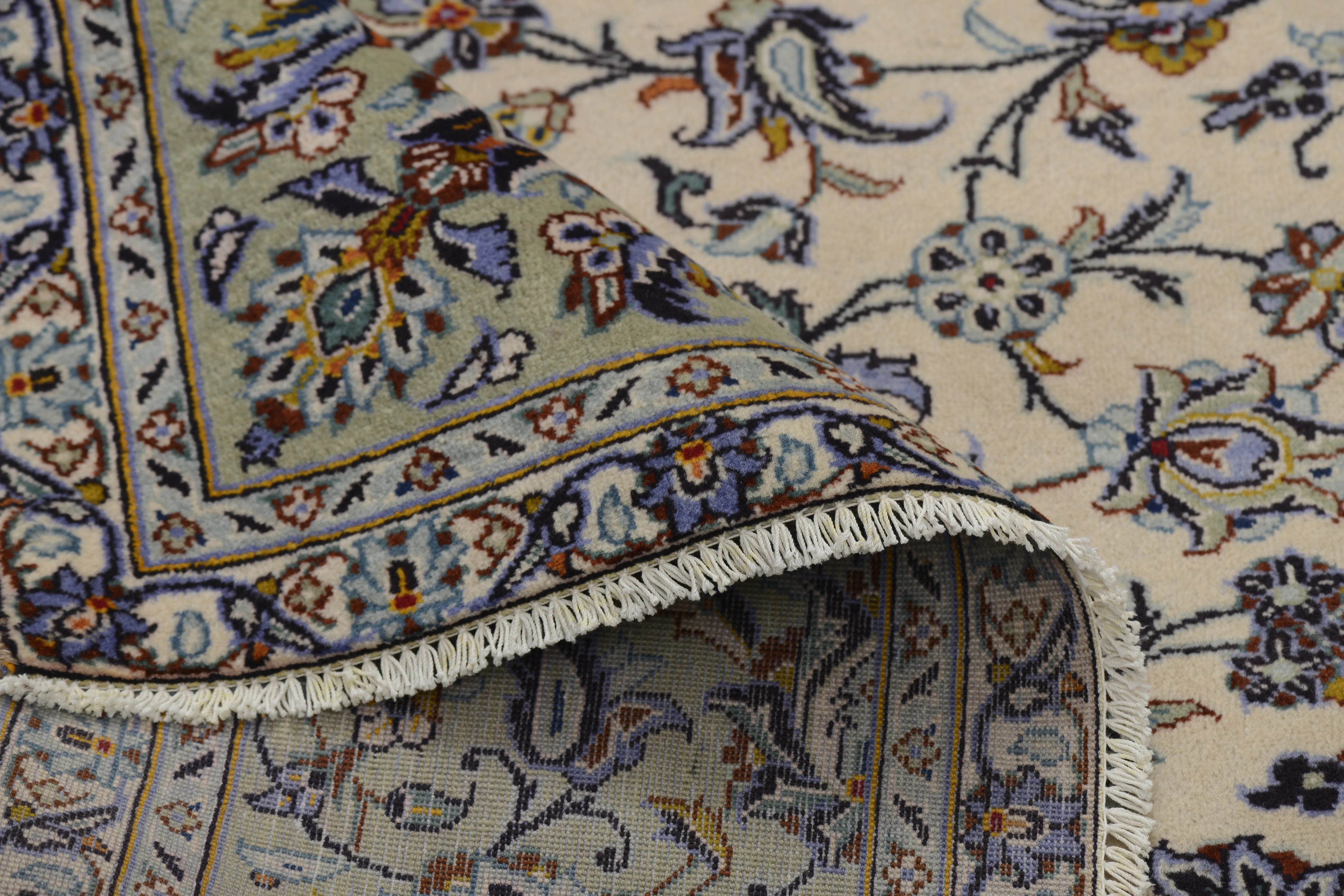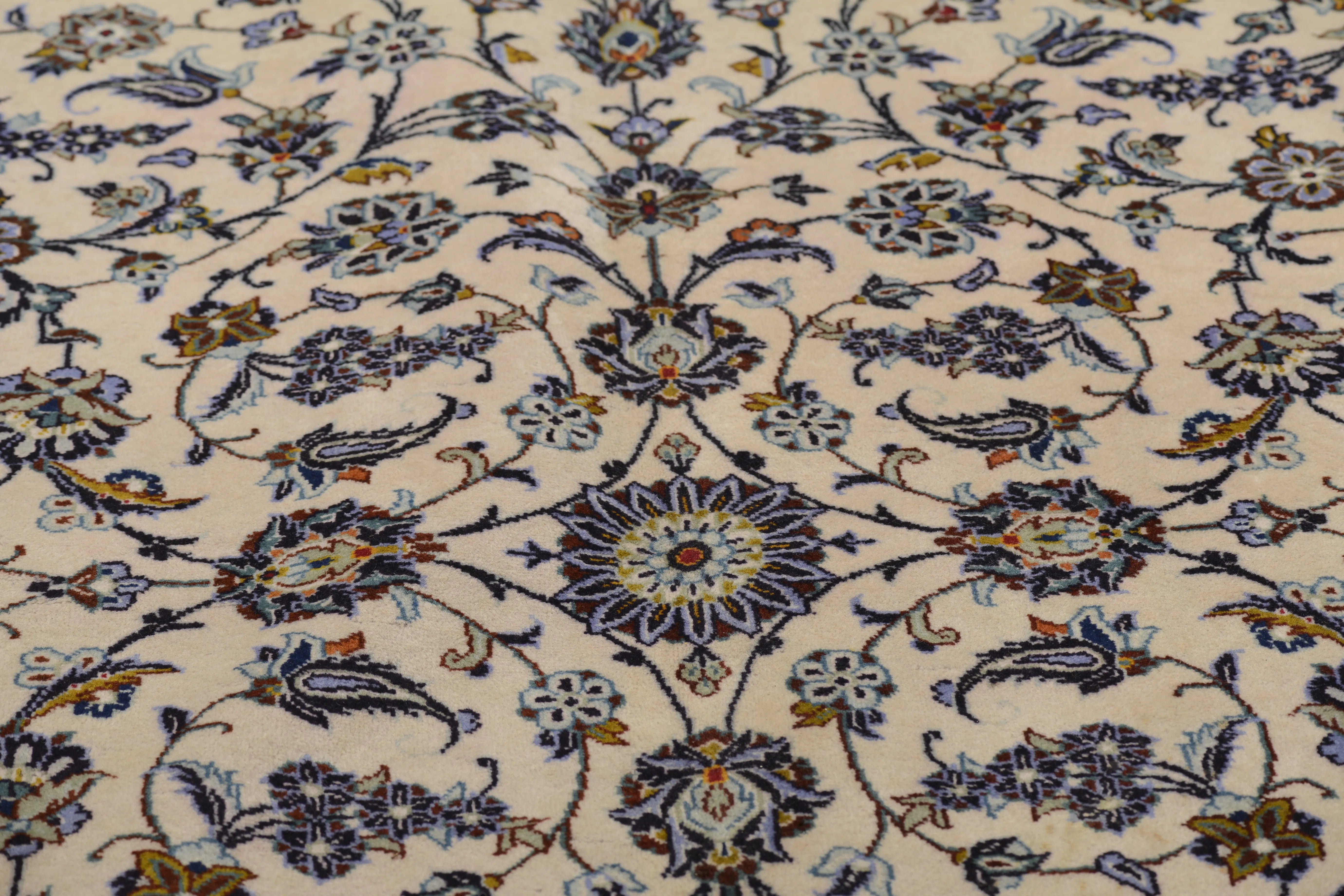 Kashan (or Keshan) rugs are truly an e x ample of the finest in Persian rug artistry. They offer a combination of beauty, durability, and cultural value. If you're considering purchasing a Kashan rug, you can be sure that you're investing in a piece of Iranian culture and history that will bring joy and beauty for many years to come. Kashan rugs are hand-knotted with great precision and adhere to traditional weaving techniques that have developed over centuries. The rugs are known for their high knot density and intricate details. Kashan rugs often feature comple x patterns including large central medallions, flowers, arabesques, and stylized plant motifs. The patterns are often symmetrical and have a harmonious design that reflects traditional Persian art. The most commonly used colors in Kashan rugs are red, blue, ivory, and beige. These colors are often combined to create a rich and contrasting palette. The colors are traditionally made with natural dyes, giving them their deep and lasting appearance. Most Kashan rugs are made from high-quality wool, which provides a soft and durable surface. Some of the more e x clusive ones may also contain silk to add e x tra luster and richness in detail. The base of the rugs is usually made of cotton, which provides stability and structure to the rug. Kashan rugs are known for their high knot density, which makes them dense and durable. This high knot density allows for the creation of very detailed patterns and contributes to the rug's longevity. Kashan rugs are available in a variety of sizes, from small prayer rugs to large room-sized rugs. They are popular both for home use and as decorative items in public spaces. Kashan rugs are an important part of Iran's cultural heritage and represent a long tradition of artistic e x pression and craftsmanship. They are often an e x pression of local culture and aesthetics and are considered a form of artwork. Many Kashan rugs have historically been made for royal courts and wealthy merchants, which marks them as symbols of lu x ury and status. They are still highly sought after both as collectibles and for decoration in e x clusive settings. Kashan rugs are often e x pensive due to their high quality and aesthetic value.