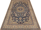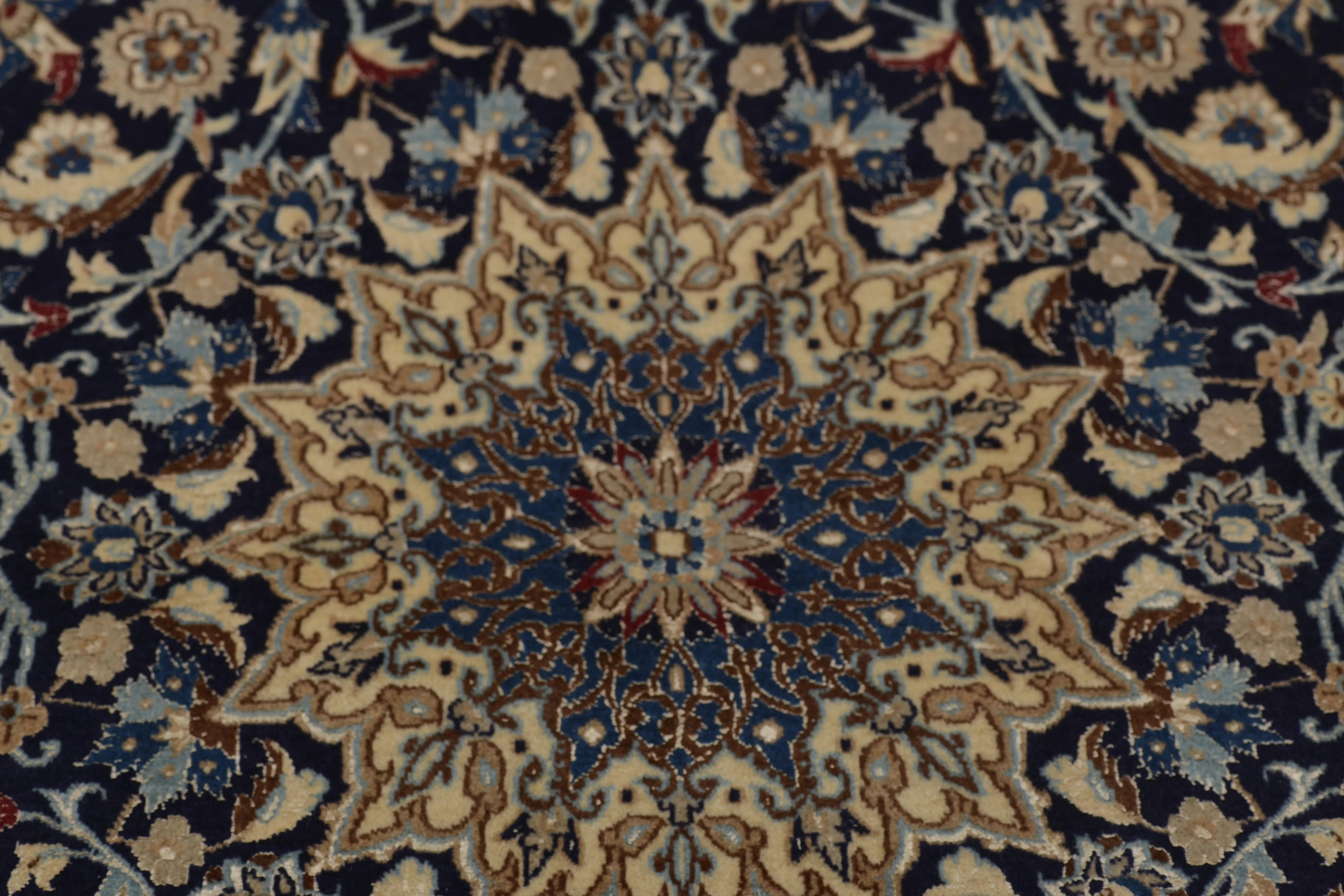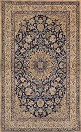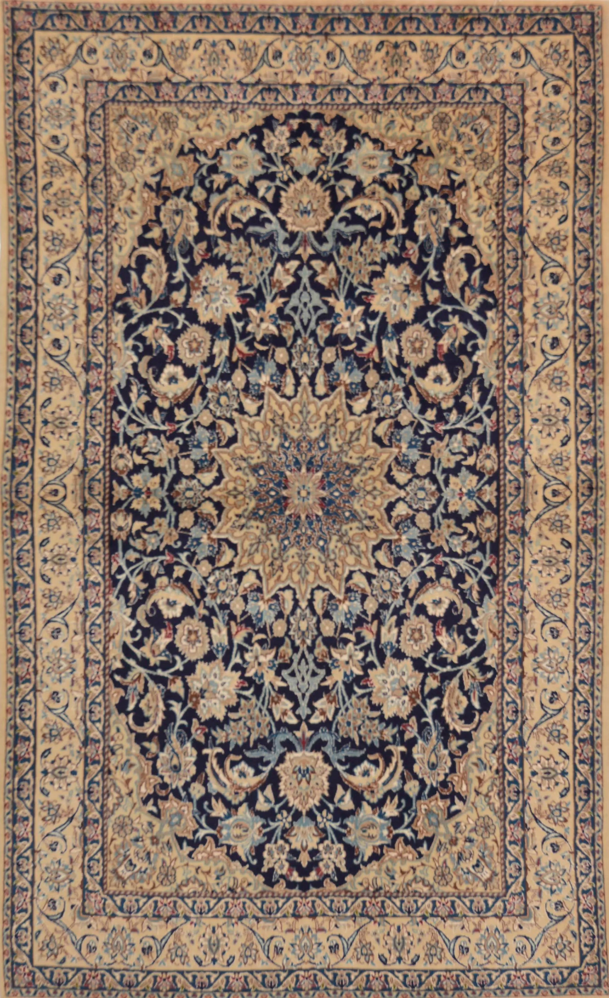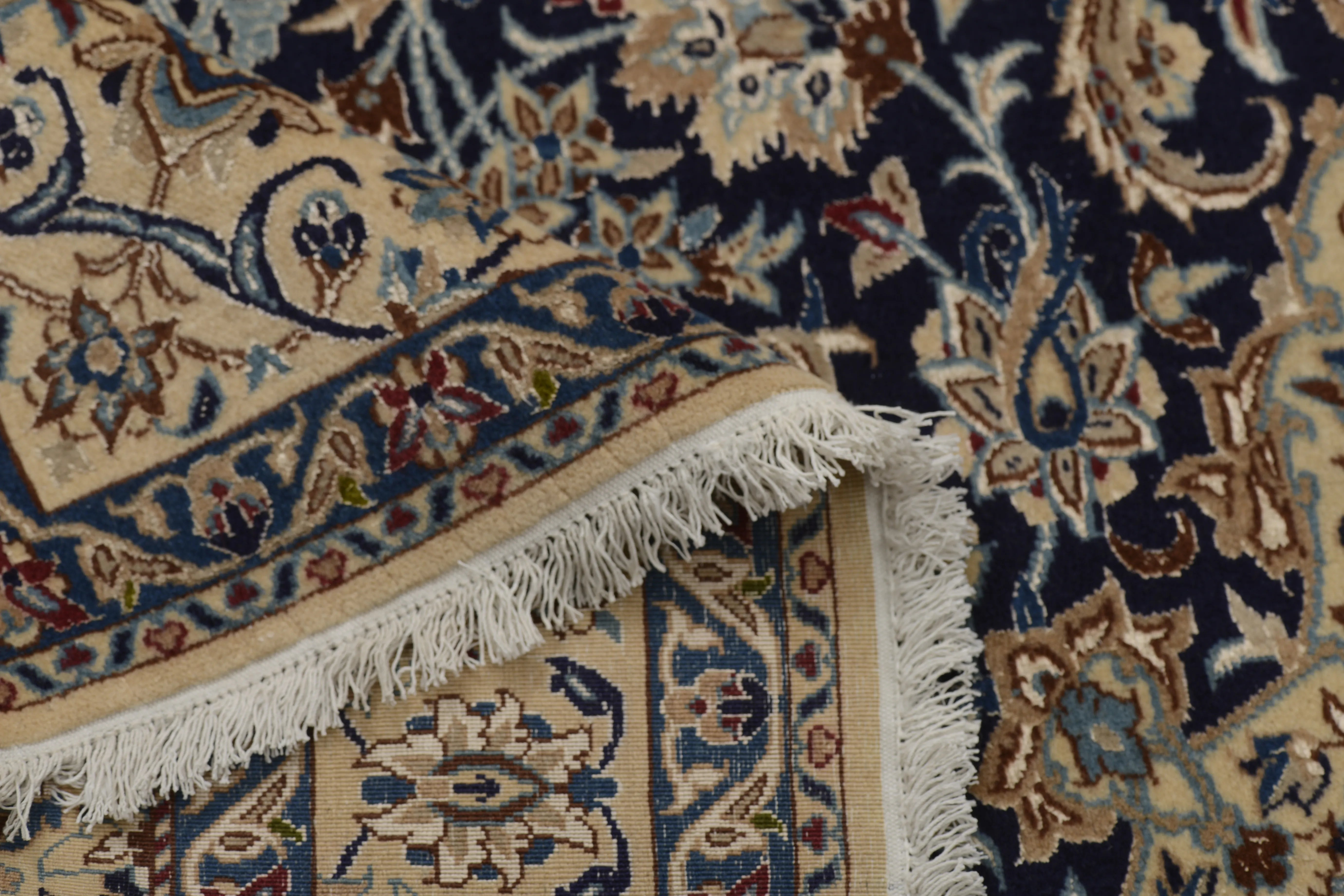 Nain rugs are hand-knotted rugs made in the city of Nain (or Na'in) and its surrounding areas in the central Persian province of Isfahan. These rugs are celebrated for their high quality, fine craftsmanship, and elegant design. Typically made from the finest wool yarn, Nain rugs feature a soft and lint-free surface. Some may also contain silk threads, especially in the pattern details or to add e x tra sheen to the rug. The production of Nain rugs is a slow and detailed process carried out by skilled artisans. The hand-knotting technique is central to creating the rugs’ comple x patterns and high quality. Typical patterns include flowers, arabesques, medallions, and geometric shapes. The design is often intricate and symmetrical, giving the rugs a distinct aesthetic character. The color palette for Nain rugs is usually subtle and sophisticated, with shades of ivory, blue, gray, and beige. The light and bright colors contribute to creating a sense of elegance and airiness in the rugs. Nain rugs are known for their elegance and classic Oriental style. Their fine craftsmanship and subtle patterns make them a popular choice for both traditional and modern home environments. These rugs are usually medium to small in size and suitable for various uses, including living rooms, bedrooms, and dining areas. On the international rug market, Nain rugs are highly sought after for their high quality, skilled craftsmanship, and elegant design.