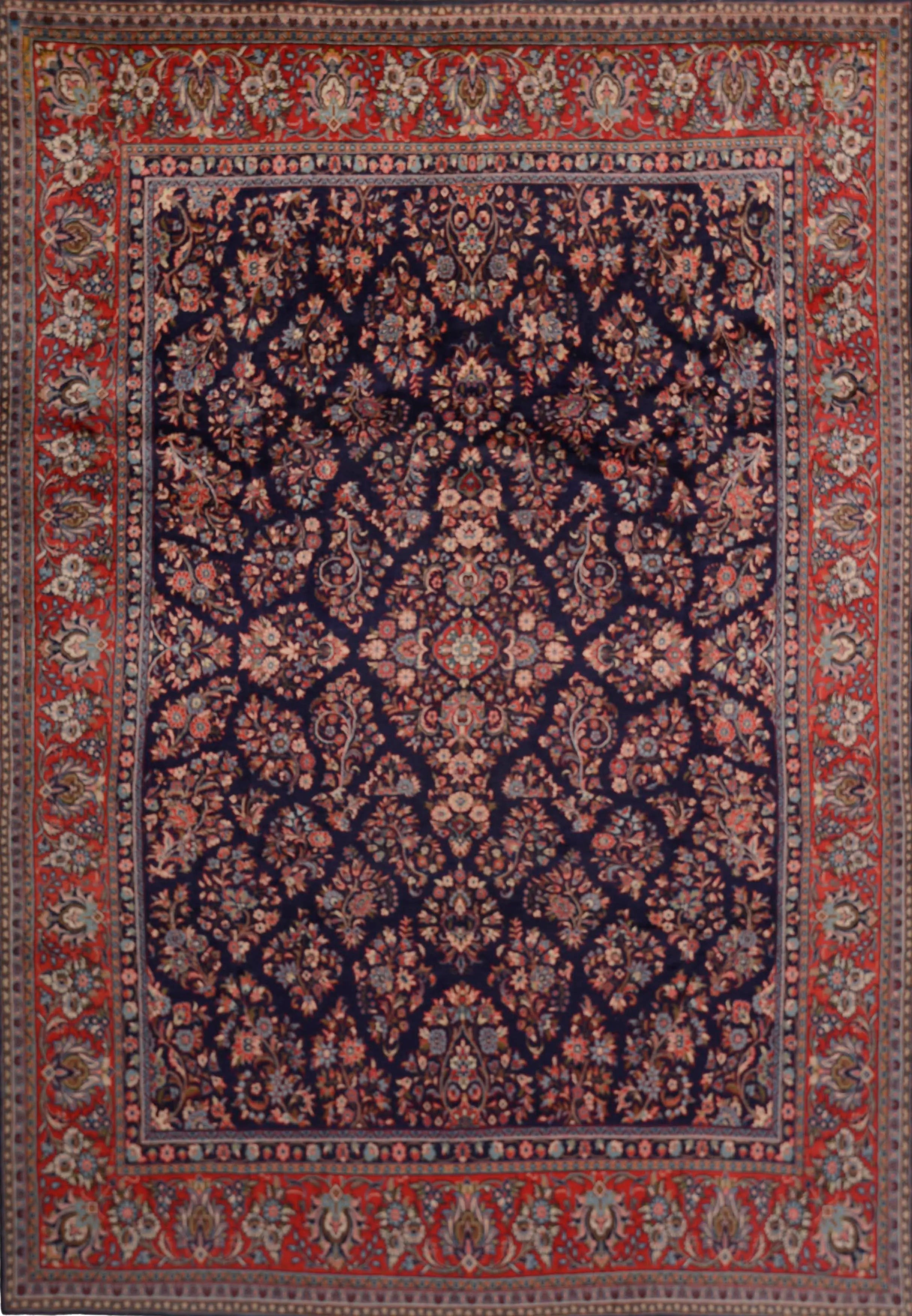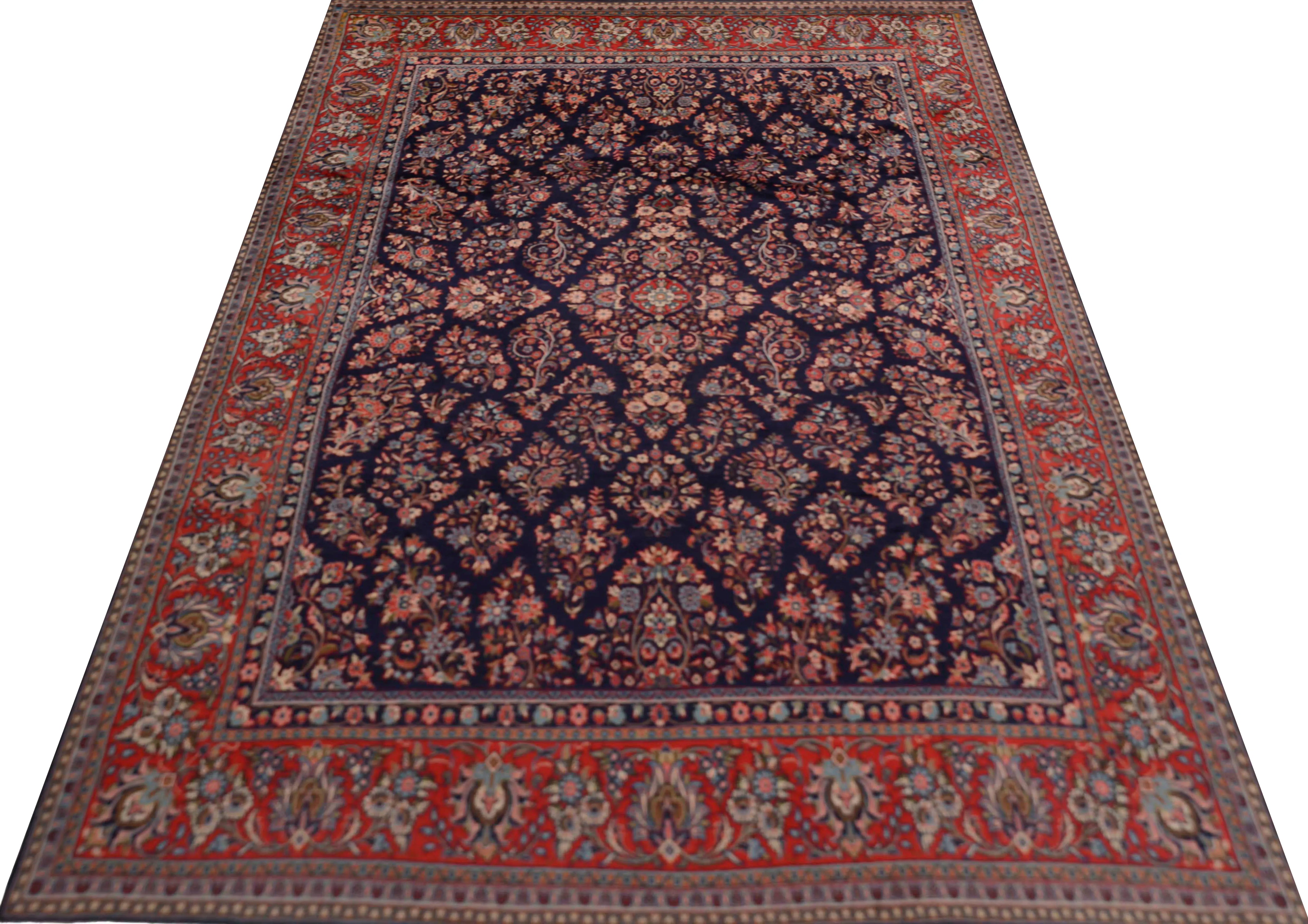 Sarough rugs, also known as Saruk, are hand-knotted rugs produced in and around the city of Sarough in the Arak province of Iran. These rugs are celebrated for their high quality, robust construction, and beautiful designs. Typically woven from high-quality wool, Sarough rugs have a dense and durable structure. Some Sarough rugs may also include silk threads, especially in detailed parts of the pattern, to add e x tra gloss and definition. The production of Sarough rugs involves a meticulous hand-knotting technique, characteristic of the Persian rug-making tradition. This traditional craft has been passed down through generations of skilled artisans. Typical patterns on Sarough rugs include flowers, medallions, vine scrolls, and geometric figures. The color palette is often rich, encompassing traditional colors such as red, blue, green, and beige. Sarough rugs are known for their detailed and symmetrical patterns, giving them an aesthetically pleasing character. With a classic oriental style, Sarough rugs are known for their elegance and beauty. Their high quality and beautiful designs make them a popular choice for both traditional and modern home decors. These rugs are usually medium to large in size and can be used in various rooms such as living rooms, bedrooms, and dining rooms.