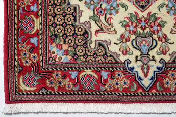 Ghom (ibland stavat Qom) är en stad i centrala Iran känd för att producera några av de finaste och mest exklusiva persiska mattorna. Här är en detaljerad översikt över Ghom-mattor: Ghom ligger cirka 150 km söder om Teheran och är en viktig religiös och kulturell stad i Persien. Staden har en lång tradition av mattvävning. Ghom-mattor är kända för sin exceptionella kvalitet och är oftast handknutna med mycket hög knuttäthet, vilket ger dem en mjuk och tät yta. Ghom-mattor är kända för sina komplexa och vackra mönster som ofta inkluderar blomsterarrangemang, medaljonger och ibland även figurativa motiv som djur och människor. De är ofta inspirerade av klassiska persiska mönster och har en symmetri som är både estetiskt tilltalande och harmonisk. Dessa mattor använder ett brett utbud av färger, inklusive livfulla röda, blåa, gröna och guldtoner. Färgningen görs traditionellt med naturliga färgämnen, vilket ger djup och lyster till mattorna. En av de mest utmärkande egenskaperna hos Ghom-mattor är att de ofta är gjorda av siden eller en blandning av siden och ull. Sidenmattor från Ghom är särskilt kända för sin mjuka, glansiga yta och sina detaljerade mönster. Det finns också mattor som helt är gjorda av finull eller en kombination av ull och bomull. Dessa mattor är också av mycket hög kvalitet och hållbara. Ghom-mattor finns i olika storlekar, från små bönemattor till större rumsmattor, och de kan vara rektangulära, kvadratiska eller runda. Tack vare sin höga kvalitet och hantverk har Ghom-mattor ett högt marknadsvärde. De är populära bland samlare och kan vara dyra, särskilt de som är gjorda av rent siden. Många betraktar Ghom-mattor som investeringsobjekt på grund av deras hållbarhet och estetiska värde.
