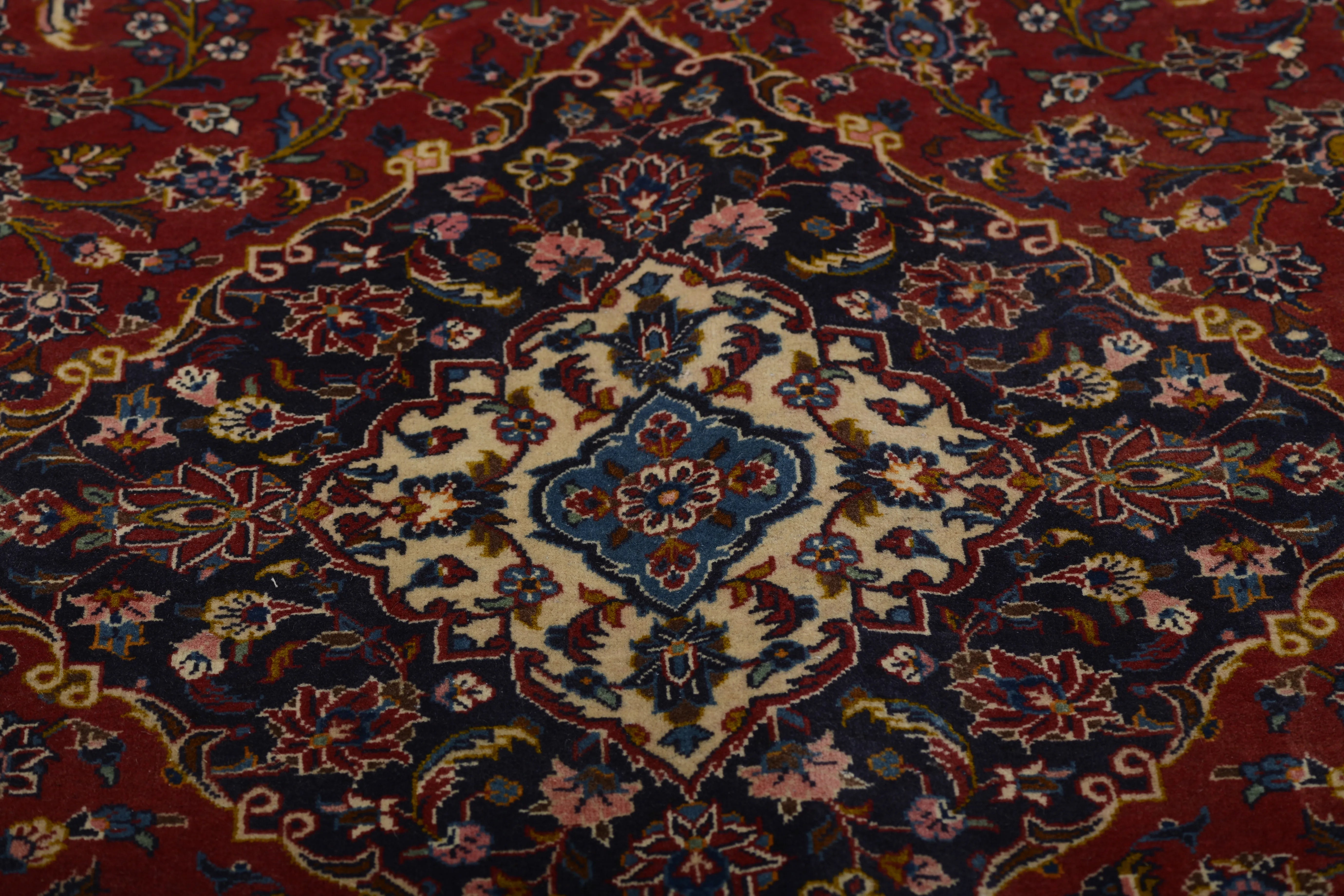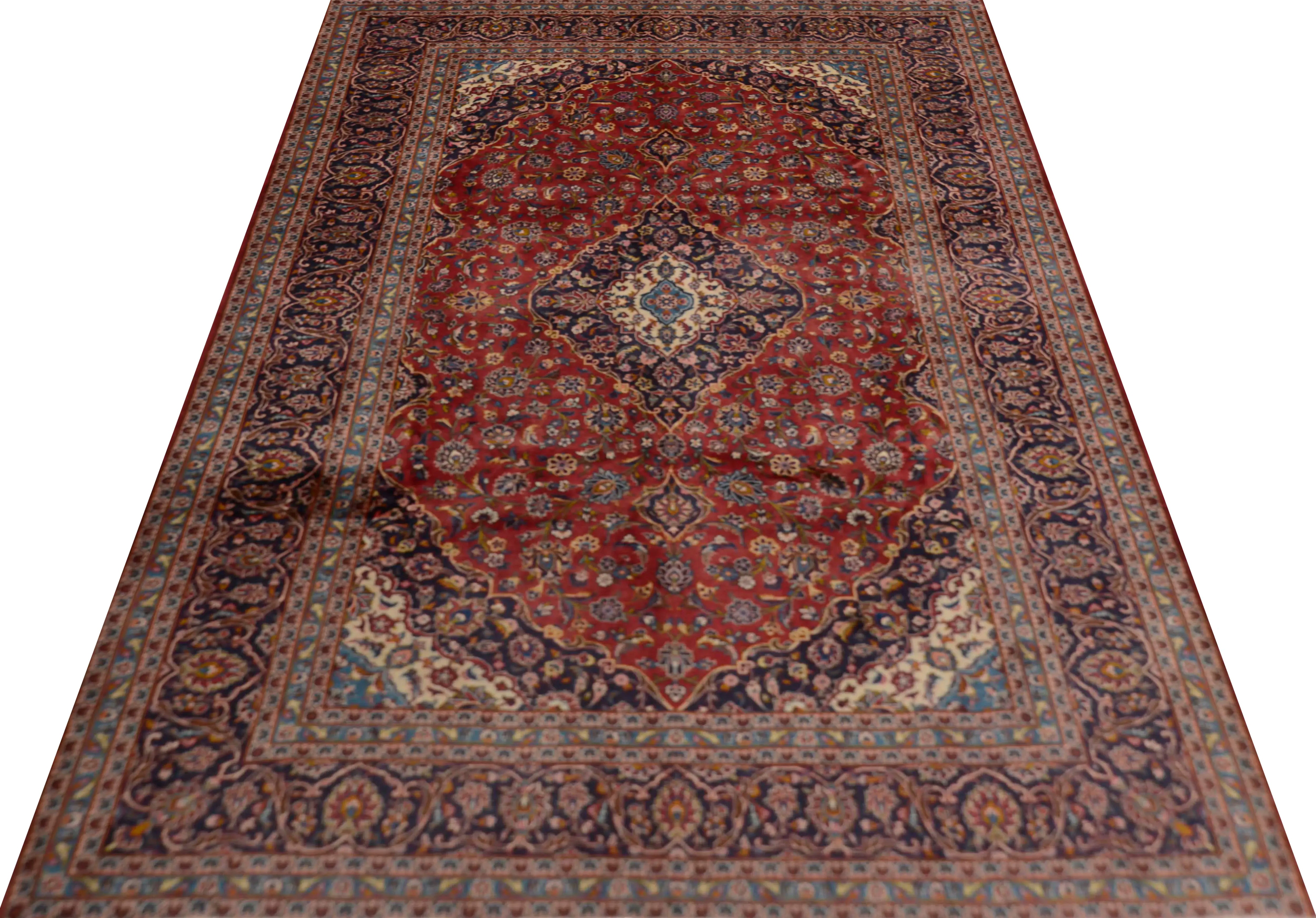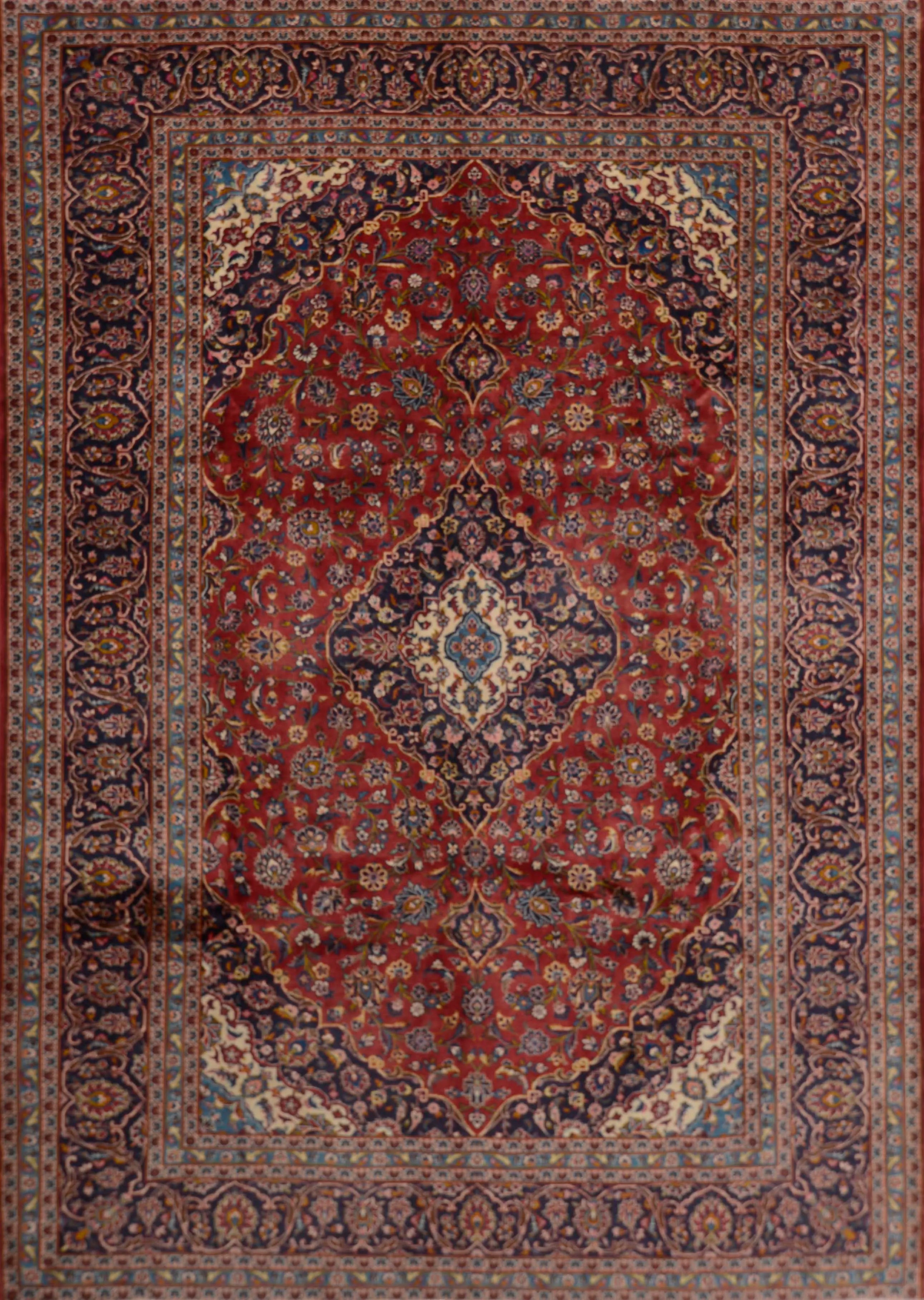 Kashan (or Keshan) rugs are truly an e x ample of the finest in Persian rug artistry. They offer a combination of beauty, durability, and cultural value. If you're considering purchasing a Kashan rug, you can be sure that you're investing in a piece of Iranian culture and history that will bring joy and beauty for many years to come. Kashan rugs are hand-knotted with great precision and adhere to traditional weaving techniques that have developed over centuries. The rugs are known for their high knot density and intricate details. Kashan rugs often feature comple x patterns including large central medallions, flowers, arabesques, and stylized plant motifs. The patterns are often symmetrical and have a harmonious design that reflects traditional Persian art. The most commonly used colors in Kashan rugs are red, blue, ivory, and beige. These colors are often combined to create a rich and contrasting palette. The colors are traditionally made with natural dyes, giving them their deep and lasting appearance. Most Kashan rugs are made from high-quality wool, which provides a soft and durable surface. Some of the more e x clusive ones may also contain silk to add e x tra luster and richness in detail. The base of the rugs is usually made of cotton, which provides stability and structure to the rug. Kashan rugs are known for their high knot density, which makes them dense and durable. This high knot density allows for the creation of very detailed patterns and contributes to the rug's longevity. Kashan rugs are available in a variety of sizes, from small prayer rugs to large room-sized rugs. They are popular both for home use and as decorative items in public spaces. Kashan rugs are an important part of Iran's cultural heritage and represent a long tradition of artistic e x pression and craftsmanship. They are often an e x pression of local culture and aesthetics and are considered a form of artwork. Many Kashan rugs have historically been made for royal courts and wealthy merchants, which marks them as symbols of lu x ury and status. They are still highly sought after both as collectibles and for decoration in e x clusive settings. Kashan rugs are often e x pensive due to their high quality and aesthetic value.