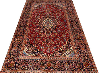 Kashan (eller Keshan) mattor är verkligen ett exempel på det finaste inom persisk mattkonstnär. De erbjuder en kombination av skönhet, hållbarhet och kulturellt värde. Om du funderar på att köpa en Kashan-matta kan du vara säker på att du investerar i ett stycke iransk kultur och historia som kommer att ge glädje och skönhet i många år framöver. Kashan-mattor är handknutna med stor precision och följer traditionella vävtekniker som har utvecklats under århundraden. Mattorna är kända för sin höga knuttäthet och intrikata detaljer. Kashan-mattor har ofta komplexa mönster inklusive stora centrala medaljonger, blommor, arabesker och stiliserade växtmotiv. Mönstren är ofta symmetriska och har en harmonisk design som speglar traditionell persisk konst. De vanligaste färgerna i Kashan-mattor är röd, blå, elfenben och beige. Dessa färger kombineras ofta för att skapa en rik och kontrasterande palett. Färgerna är traditionellt gjorda med naturliga färgämnen, vilket ger dem ett djupt och hållbart utseende. De flesta Kashan-mattor är gjorda av högkvalitativ ull, vilket ger en mjuk och hållbar yta. Några av de mer exklusiva kan även innehålla siden för att ge extra lyster och rikedom i detaljer. Mattornas bas är oftast gjord av bomull, vilket ger stabilitet och struktur till mattan. Kashan-mattor är kända för sin höga knuttäthet, vilket gör dem täta och hållbara. Denna höga knuttäthet möjliggör skapandet av mycket detaljerade mönster och bidrar till mattans livslängd. Kashan-mattor finns i en mängd olika storlekar, från små bönemattor till stora rumsstora mattor. De är populära både för hemmabruk och som prydnadsföremål i offentliga utrymmen. Kashanmattor är en viktig del av Irans kulturarv och representerar en lång tradition av konstnärligt uttryck och hantverk. De är ofta ett uttryck för lokal kultur och estetik och anses vara en form av konstverk. Många Kashan-mattor har historiskt gjorts för kungliga hov och rika köpmän, vilket markerar dem som symboler för lyx och status. De är fortfarande mycket eftertraktade både som samlarobjekt och för dekoration i exklusiva miljöer. Kashan-mattor är ofta dyra på grund av deras höga kvalitet och estetiska värde.