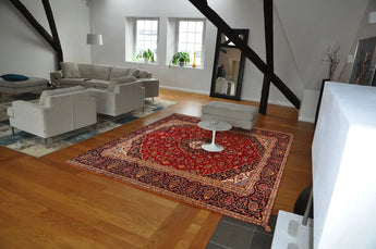 Kashan (eller Keshan) mattor är verkligen ett exempel på det finaste inom persisk mattkonstnär. De erbjuder en kombination av skönhet, hållbarhet och kulturellt värde. Om du funderar på att köpa en Kashan-matta kan du vara säker på att du investerar i ett stycke iransk kultur och historia som kommer att ge glädje och skönhet i många år framöver. Kashan-mattor är handknutna med stor precision och följer traditionella vävtekniker som har utvecklats under århundraden. Mattorna är kända för sin höga knuttäthet och intrikata detaljer. Kashan-mattor har ofta komplexa mönster inklusive stora centrala medaljonger, blommor, arabesker och stiliserade växtmotiv. Mönstren är ofta symmetriska och har en harmonisk design som speglar traditionell persisk konst. De vanligaste färgerna i Kashan-mattor är röd, blå, elfenben och beige. Dessa färger kombineras ofta för att skapa en rik och kontrasterande palett. Färgerna är traditionellt gjorda med naturliga färgämnen, vilket ger dem ett djupt och hållbart utseende. De flesta Kashan-mattor är gjorda av högkvalitativ ull, vilket ger en mjuk och hållbar yta. Några av de mer exklusiva kan även innehålla siden för att ge extra lyster och rikedom i detaljer. Mattornas bas är oftast gjord av bomull, vilket ger stabilitet och struktur till mattan. Kashan-mattor är kända för sin höga knuttäthet, vilket gör dem täta och hållbara. Denna höga knuttäthet möjliggör skapandet av mycket detaljerade mönster och bidrar till mattans livslängd. Kashan-mattor finns i en mängd olika storlekar, från små bönemattor till stora rumsstora mattor. De är populära både för hemmabruk och som prydnadsföremål i offentliga utrymmen. Kashanmattor är en viktig del av Irans kulturarv och representerar en lång tradition av konstnärligt uttryck och hantverk. De är ofta ett uttryck för lokal kultur och estetik och anses vara en form av konstverk. Många Kashan-mattor har historiskt gjorts för kungliga hov och rika köpmän, vilket markerar dem som symboler för lyx och status. De är fortfarande mycket eftertraktade både som samlarobjekt och för dekoration i exklusiva miljöer. Kashan-mattor är ofta dyra på grund av deras höga kvalitet och estetiska värde.