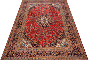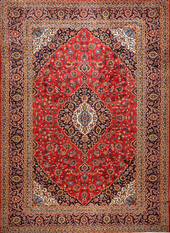Kashan (eller Keshan) mattor är verkligen ett exempel på det finaste inom persisk mattkonstnär. De erbjuder en kombination av skönhet, hållbarhet och kulturellt värde. Om du funderar på att köpa en Kashan-matta kan du vara säker på att du investerar i ett stycke iransk kultur och historia som kommer att ge glädje och skönhet i många år framöver. Kashan-mattor är handknutna med stor precision och följer traditionella vävtekniker som har utvecklats under århundraden. Mattorna är kända för sin höga knuttäthet och intrikata detaljer. Kashan-mattor har ofta komplexa mönster inklusive stora centrala medaljonger, blommor, arabesker och stiliserade växtmotiv. Mönstren är ofta symmetriska och har en harmonisk design som speglar traditionell persisk konst. De vanligaste färgerna i Kashan-mattor är röd, blå, elfenben och beige. Dessa färger kombineras ofta för att skapa en rik och kontrasterande palett. Färgerna är traditionellt gjorda med naturliga färgämnen, vilket ger dem ett djupt och hållbart utseende. De flesta Kashan-mattor är gjorda av högkvalitativ ull, vilket ger en mjuk och hållbar yta. Några av de mer exklusiva kan även innehålla siden för att ge extra lyster och rikedom i detaljer. Mattornas bas är oftast gjord av bomull, vilket ger stabilitet och struktur till mattan. Kashan-mattor är kända för sin höga knuttäthet, vilket gör dem täta och hållbara. Denna höga knuttäthet möjliggör skapandet av mycket detaljerade mönster och bidrar till mattans livslängd. Kashan-mattor finns i en mängd olika storlekar, från små bönemattor till stora rumsstora mattor. De är populära både för hemmabruk och som prydnadsföremål i offentliga utrymmen. Kashanmattor är en viktig del av Irans kulturarv och representerar en lång tradition av konstnärligt uttryck och hantverk. De är ofta ett uttryck för lokal kultur och estetik och anses vara en form av konstverk. Många Kashan-mattor har historiskt gjorts för kungliga hov och rika köpmän, vilket markerar dem som symboler för lyx och status. De är fortfarande mycket eftertraktade både som samlarobjekt och för dekoration i exklusiva miljöer. Kashan-mattor är ofta dyra på grund av deras höga kvalitet och estetiska värde.