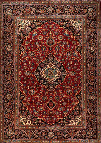Kashan (eller Keshan) mattor är verkligen ett exempel på det finaste inom persisk mattkonstnär. De erbjuder en kombination av skönhet, hållbarhet och kulturellt värde. Om du funderar på att köpa en Kashan-matta kan du vara säker på att du investerar i ett stycke iransk kultur och historia som kommer att ge glädje och skönhet i många år framöver. Kashan-mattor är handknutna med stor precision och följer traditionella vävtekniker som har utvecklats under århundraden. Mattorna är kända för sin höga knuttäthet och intrikata detaljer. Kashan-mattor har ofta komplexa mönster inklusive stora centrala medaljonger, blommor, arabesker och stiliserade växtmotiv. Mönstren är ofta symmetriska och har en harmonisk design som speglar traditionell persisk konst. De vanligaste färgerna i Kashan-mattor är röd, blå, elfenben och beige. Dessa färger kombineras ofta för att skapa en rik och kontrasterande palett. Färgerna är traditionellt gjorda med naturliga färgämnen, vilket ger dem ett djupt och hållbart utseende. De flesta Kashan-mattor är gjorda av högkvalitativ ull, vilket ger en mjuk och hållbar yta. Några av de mer exklusiva kan även innehålla siden för att ge extra lyster och rikedom i detaljer. Mattornas bas är oftast gjord av bomull, vilket ger stabilitet och struktur till mattan. Kashan-mattor är kända för sin höga knuttäthet, vilket gör dem täta och hållbara. Denna höga knuttäthet möjliggör skapandet av mycket detaljerade mönster och bidrar till mattans livslängd. Kashan-mattor finns i en mängd olika storlekar, från små bönemattor till stora rumsstora mattor. De är populära både för hemmabruk och som prydnadsföremål i offentliga utrymmen. Kashanmattor är en viktig del av Irans kulturarv och representerar en lång tradition av konstnärligt uttryck och hantverk. De är ofta ett uttryck för lokal kultur och estetik och anses vara en form av konstverk. Många Kashan-mattor har historiskt gjorts för kungliga hov och rika köpmän, vilket markerar dem som symboler för lyx och status. De är fortfarande mycket eftertraktade både som samlarobjekt och för dekoration i exklusiva miljöer. Kashan-mattor är ofta dyra på grund av deras höga kvalitet och estetiska värde.