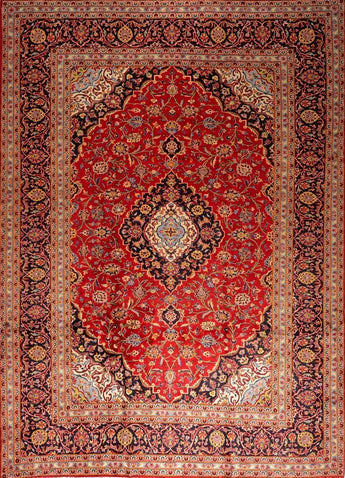 Kashan (eller Keshan) mattor är verkligen ett exempel på det finaste inom persisk mattkonstnär. De erbjuder en kombination av skönhet, hållbarhet och kulturellt värde. Om du funderar på att köpa en Kashan-matta kan du vara säker på att du investerar i ett stycke iransk kultur och historia som kommer att ge glädje och skönhet i många år framöver. Kashan-mattor är handknutna med stor precision och följer traditionella vävtekniker som har utvecklats under århundraden. Mattorna är kända för sin höga knuttäthet och intrikata detaljer. Kashan-mattor har ofta komplexa mönster inklusive stora centrala medaljonger, blommor, arabesker och stiliserade växtmotiv. Mönstren är ofta symmetriska och har en harmonisk design som speglar traditionell persisk konst. De vanligaste färgerna i Kashan-mattor är röd, blå, elfenben och beige. Dessa färger kombineras ofta för att skapa en rik och kontrasterande palett. Färgerna är traditionellt gjorda med naturliga färgämnen, vilket ger dem ett djupt och hållbart utseende. De flesta Kashan-mattor är gjorda av högkvalitativ ull, vilket ger en mjuk och hållbar yta. Några av de mer exklusiva kan även innehålla siden för att ge extra lyster och rikedom i detaljer. Mattornas bas är oftast gjord av bomull, vilket ger stabilitet och struktur till mattan. Kashan-mattor är kända för sin höga knuttäthet, vilket gör dem täta och hållbara. Denna höga knuttäthet möjliggör skapandet av mycket detaljerade mönster och bidrar till mattans livslängd. Kashan-mattor finns i en mängd olika storlekar, från små bönemattor till stora rumsstora mattor. De är populära både för hemmabruk och som prydnadsföremål i offentliga utrymmen. Kashanmattor är en viktig del av Irans kulturarv och representerar en lång tradition av konstnärligt uttryck och hantverk. De är ofta ett uttryck för lokal kultur och estetik och anses vara en form av konstverk. Många Kashan-mattor har historiskt gjorts för kungliga hov och rika köpmän, vilket markerar dem som symboler för lyx och status. De är fortfarande mycket eftertraktade både som samlarobjekt och för dekoration i exklusiva miljöer. Kashan-mattor är ofta dyra på grund av deras höga kvalitet och estetiska värde.
