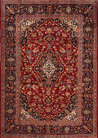 Kashan (eller Keshan) mattor är verkligen ett exempel på det finaste inom persisk mattkonstnär. De erbjuder en kombination av skönhet, hållbarhet och kulturellt värde. Om du funderar på att köpa en Kashan-matta kan du vara säker på att du investerar i ett stycke iransk kultur och historia som kommer att ge glädje och skönhet i många år framöver. Kashan-mattor är handknutna med stor precision och följer traditionella vävtekniker som har utvecklats under århundraden. Mattorna är kända för sin höga knuttäthet och intrikata detaljer. Kashan-mattor har ofta komplexa mönster inklusive stora centrala medaljonger, blommor, arabesker och stiliserade växtmotiv. Mönstren är ofta symmetriska och har en harmonisk design som speglar traditionell persisk konst. De vanligaste färgerna i Kashan-mattor är röd, blå, elfenben och beige. Dessa färger kombineras ofta för att skapa en rik och kontrasterande palett. Färgerna är traditionellt gjorda med naturliga färgämnen, vilket ger dem ett djupt och hållbart utseende. De flesta Kashan-mattor är gjorda av högkvalitativ ull, vilket ger en mjuk och hållbar yta. Några av de mer exklusiva kan även innehålla siden för att ge extra lyster och rikedom i detaljer. Mattornas bas är oftast gjord av bomull, vilket ger stabilitet och struktur till mattan. Kashan-mattor är kända för sin höga knuttäthet, vilket gör dem täta och hållbara. Denna höga knuttäthet möjliggör skapandet av mycket detaljerade mönster och bidrar till mattans livslängd. Kashan-mattor finns i en mängd olika storlekar, från små bönemattor till stora rumsstora mattor. De är populära både för hemmabruk och som prydnadsföremål i offentliga utrymmen. Kashanmattor är en viktig del av Irans kulturarv och representerar en lång tradition av konstnärligt uttryck och hantverk. De är ofta ett uttryck för lokal kultur och estetik och anses vara en form av konstverk. Många Kashan-mattor har historiskt gjorts för kungliga hov och rika köpmän, vilket markerar dem som symboler för lyx och status. De är fortfarande mycket eftertraktade både som samlarobjekt och för dekoration i exklusiva miljöer. Kashan-mattor är ofta dyra på grund av deras höga kvalitet och estetiska värde.
