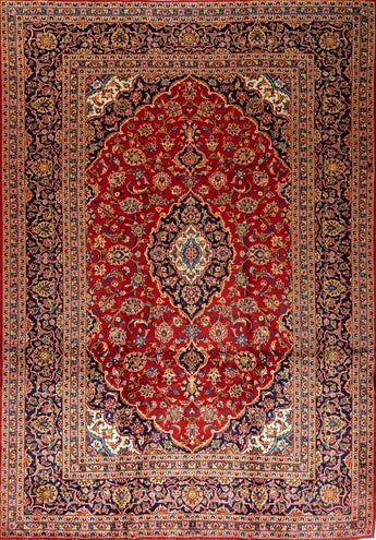 Kashan (eller Keshan) mattor är verkligen ett exempel på det finaste inom persisk mattkonstnär. De erbjuder en kombination av skönhet, hållbarhet och kulturellt värde. Om du funderar på att köpa en Kashan-matta kan du vara säker på att du investerar i ett stycke iransk kultur och historia som kommer att ge glädje och skönhet i många år framöver. Kashan-mattor är handknutna med stor precision och följer traditionella vävtekniker som har utvecklats under århundraden. Mattorna är kända för sin höga knuttäthet och intrikata detaljer. Kashan-mattor har ofta komplexa mönster inklusive stora centrala medaljonger, blommor, arabesker och stiliserade växtmotiv. Mönstren är ofta symmetriska och har en harmonisk design som speglar traditionell persisk konst. De vanligaste färgerna i Kashan-mattor är röd, blå, elfenben och beige. Dessa färger kombineras ofta för att skapa en rik och kontrasterande palett. Färgerna är traditionellt gjorda med naturliga färgämnen, vilket ger dem ett djupt och hållbart utseende. De flesta Kashan-mattor är gjorda av högkvalitativ ull, vilket ger en mjuk och hållbar yta. Några av de mer exklusiva kan även innehålla siden för att ge extra lyster och rikedom i detaljer. Mattornas bas är oftast gjord av bomull, vilket ger stabilitet och struktur till mattan. Kashan-mattor är kända för sin höga knuttäthet, vilket gör dem täta och hållbara. Denna höga knuttäthet möjliggör skapandet av mycket detaljerade mönster och bidrar till mattans livslängd. Kashan-mattor finns i en mängd olika storlekar, från små bönemattor till stora rumsstora mattor. De är populära både för hemmabruk och som prydnadsföremål i offentliga utrymmen. Kashanmattor är en viktig del av Irans kulturarv och representerar en lång tradition av konstnärligt uttryck och hantverk. De är ofta ett uttryck för lokal kultur och estetik och anses vara en form av konstverk. Många Kashan-mattor har historiskt gjorts för kungliga hov och rika köpmän, vilket markerar dem som symboler för lyx och status. De är fortfarande mycket eftertraktade både som samlarobjekt och för dekoration i exklusiva miljöer. Kashan-mattor är ofta dyra på grund av deras höga kvalitet och estetiska värde.