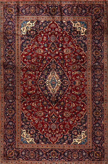 Kashan (eller Keshan) mattor är verkligen ett exempel på det finaste inom persisk mattkonstnär. De erbjuder en kombination av skönhet, hållbarhet och kulturellt värde. Om du funderar på att köpa en Kashan-matta kan du vara säker på att du investerar i ett stycke iransk kultur och historia som kommer att ge glädje och skönhet i många år framöver. Kashan-mattor är handknutna med stor precision och följer traditionella vävtekniker som har utvecklats under århundraden. Mattorna är kända för sin höga knuttäthet och intrikata detaljer. Kashan-mattor har ofta komplexa mönster inklusive stora centrala medaljonger, blommor, arabesker och stiliserade växtmotiv. Mönstren är ofta symmetriska och har en harmonisk design som speglar traditionell persisk konst. De vanligaste färgerna i Kashan-mattor är röd, blå, elfenben och beige. Dessa färger kombineras ofta för att skapa en rik och kontrasterande palett. Färgerna är traditionellt gjorda med naturliga färgämnen, vilket ger dem ett djupt och hållbart utseende. De flesta Kashan-mattor är gjorda av högkvalitativ ull, vilket ger en mjuk och hållbar yta. Några av de mer exklusiva kan även innehålla siden för att ge extra lyster och rikedom i detaljer. Mattornas bas är oftast gjord av bomull, vilket ger stabilitet och struktur till mattan. Kashan-mattor är kända för sin höga knuttäthet, vilket gör dem täta och hållbara. Denna höga knuttäthet möjliggör skapandet av mycket detaljerade mönster och bidrar till mattans livslängd. Kashan-mattor finns i en mängd olika storlekar, från små bönemattor till stora rumsstora mattor. De är populära både för hemmabruk och som prydnadsföremål i offentliga utrymmen. Kashanmattor är en viktig del av Irans kulturarv och representerar en lång tradition av konstnärligt uttryck och hantverk. De är ofta ett uttryck för lokal kultur och estetik och anses vara en form av konstverk. Många Kashan-mattor har historiskt gjorts för kungliga hov och rika köpmän, vilket markerar dem som symboler för lyx och status. De är fortfarande mycket eftertraktade både som samlarobjekt och för dekoration i exklusiva miljöer. Kashan-mattor är ofta dyra på grund av deras höga kvalitet och estetiska värde.